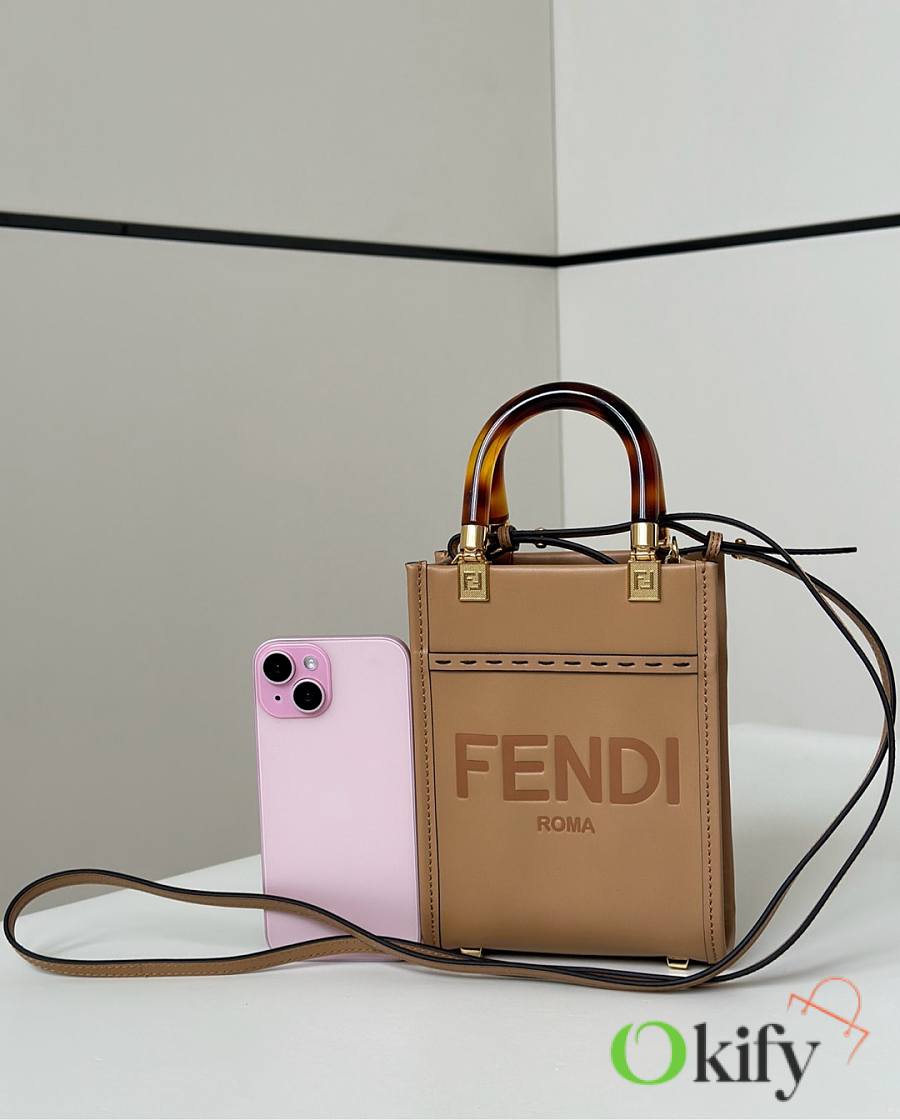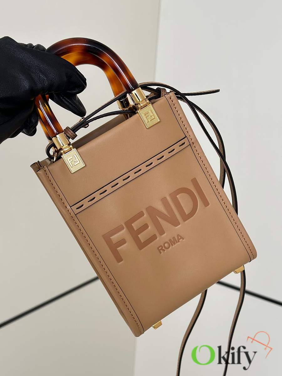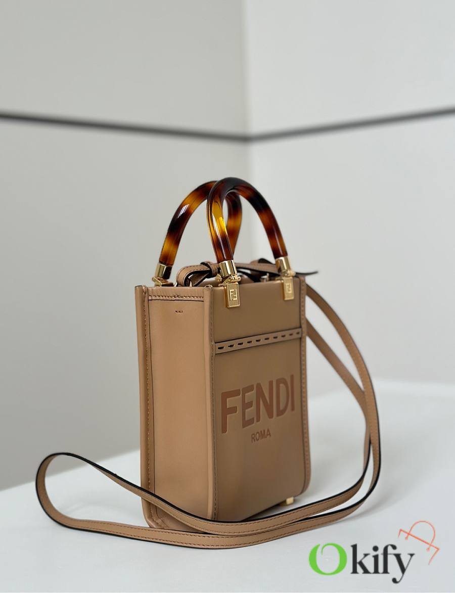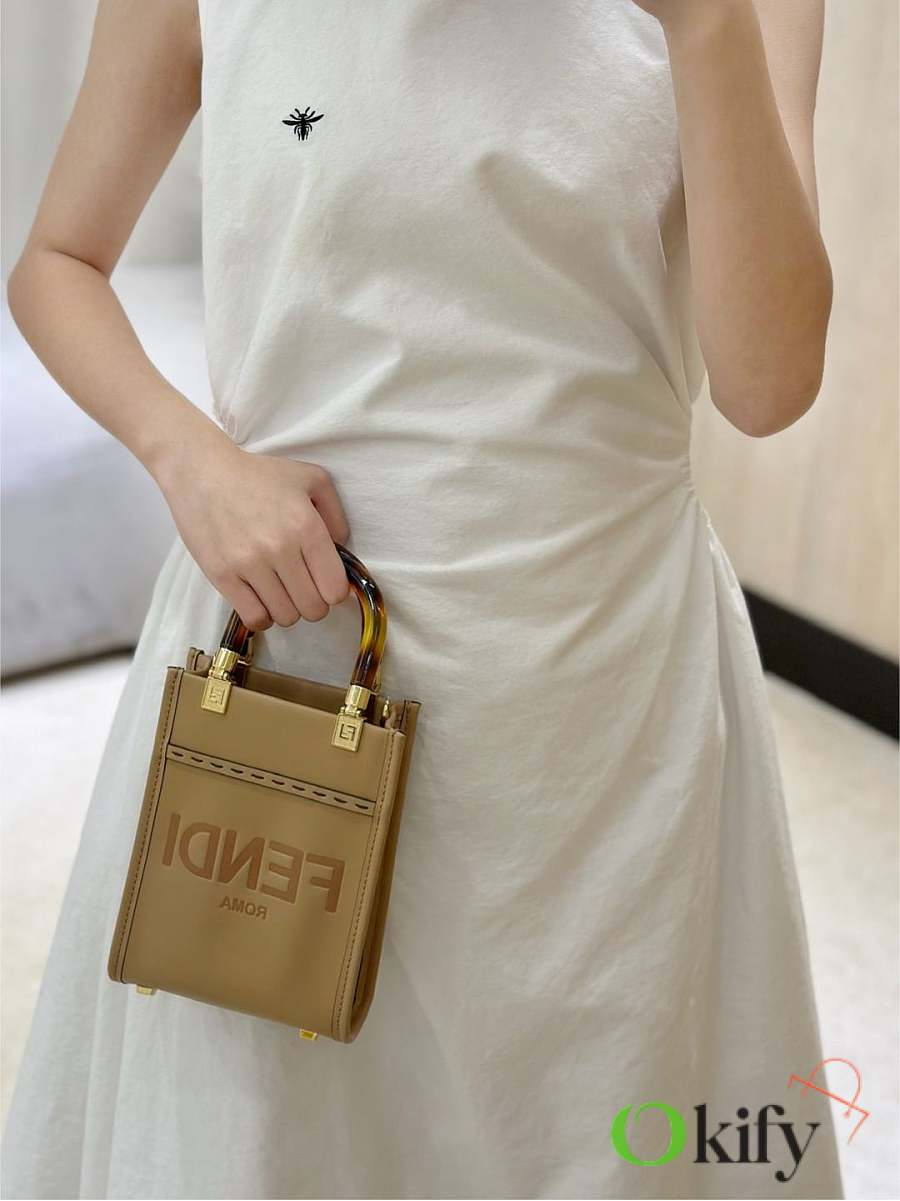Okify Fendi Sunshine Mini Tote Bag Light Brown 18x13x6cm
