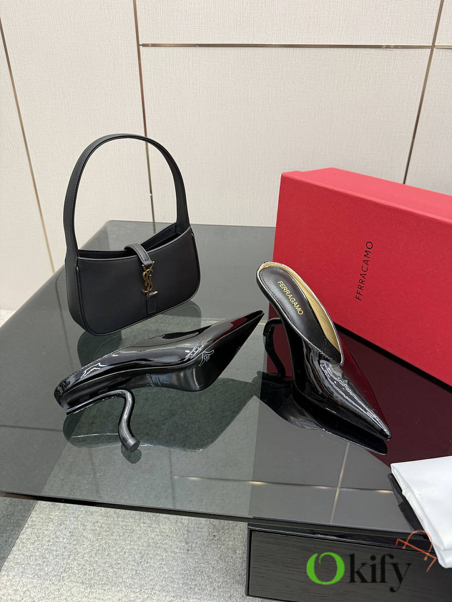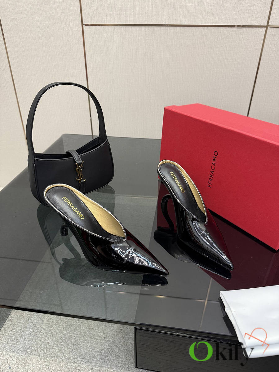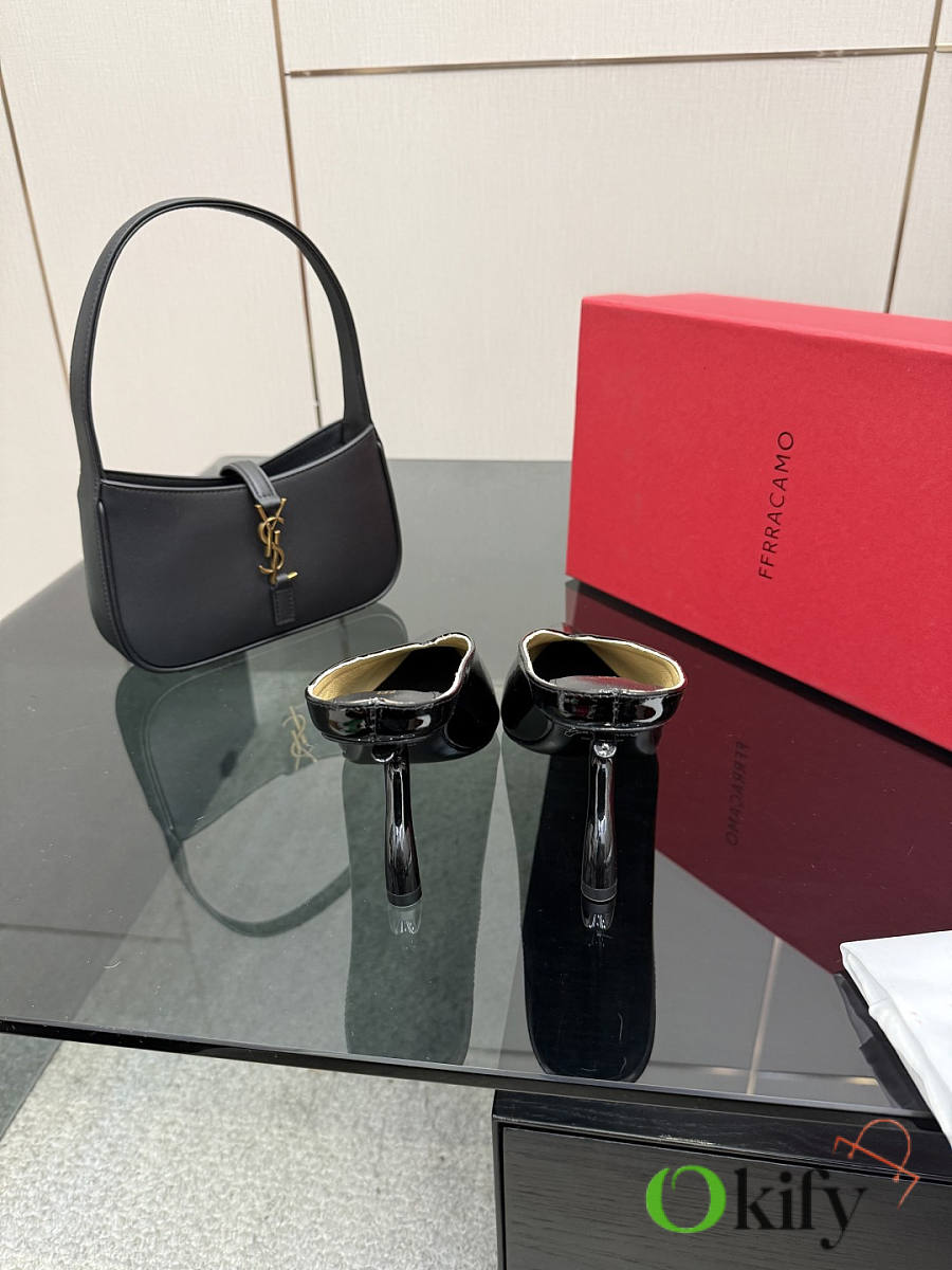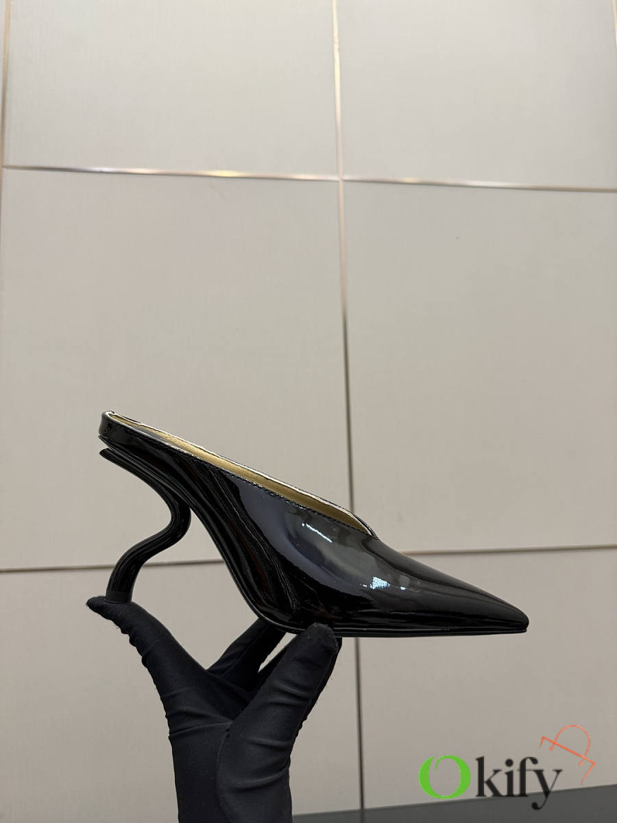 Partially crafted from exceptionally soft Nappa leather, this reinterpretation transforms it into a sculpted, chic heel with a tonal finish, adorned with dipped details, and outstanding grip. Upper: Patent leather Lining: Sheepskin Outsole: Genuine leather Heel height: 9.5cm