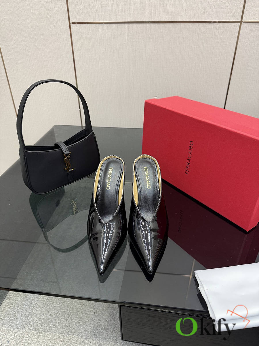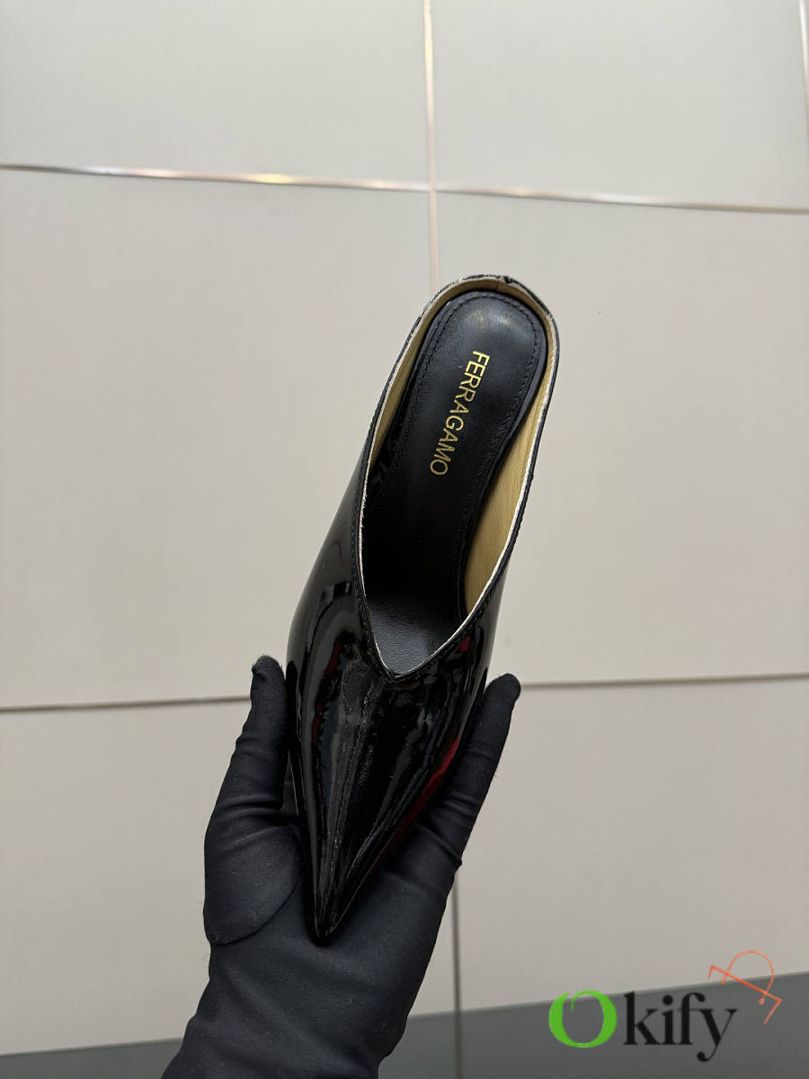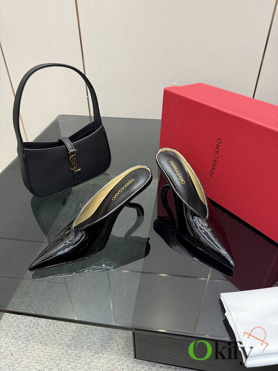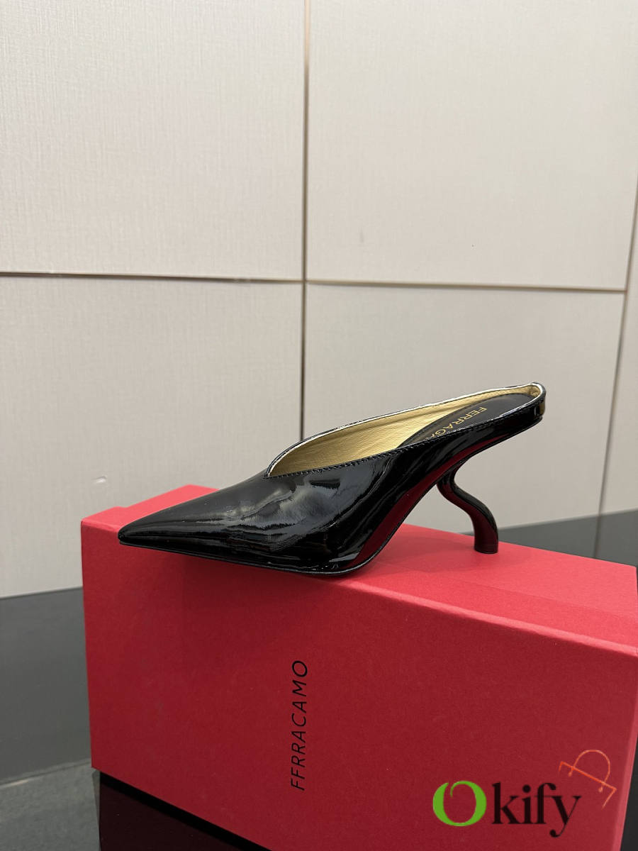Partially crafted from exceptionally soft Nappa leather, this reinterpretation transforms it into a sculpted, chic heel with a tonal finish, adorned with dipped details, and outstanding grip. Upper: Patent leather Lining: Sheepskin Outsole: Genuine leather Heel height: 9.5cm