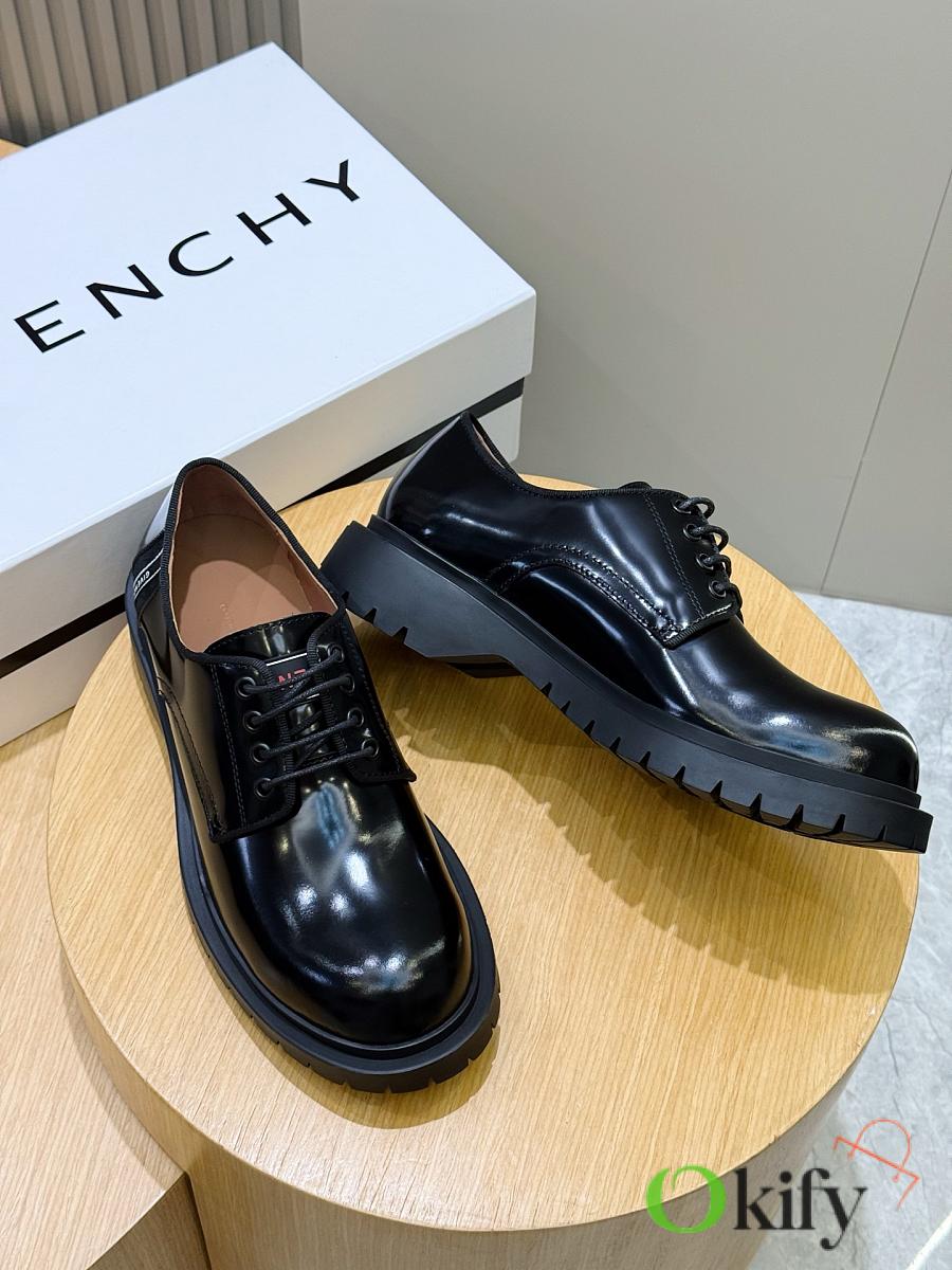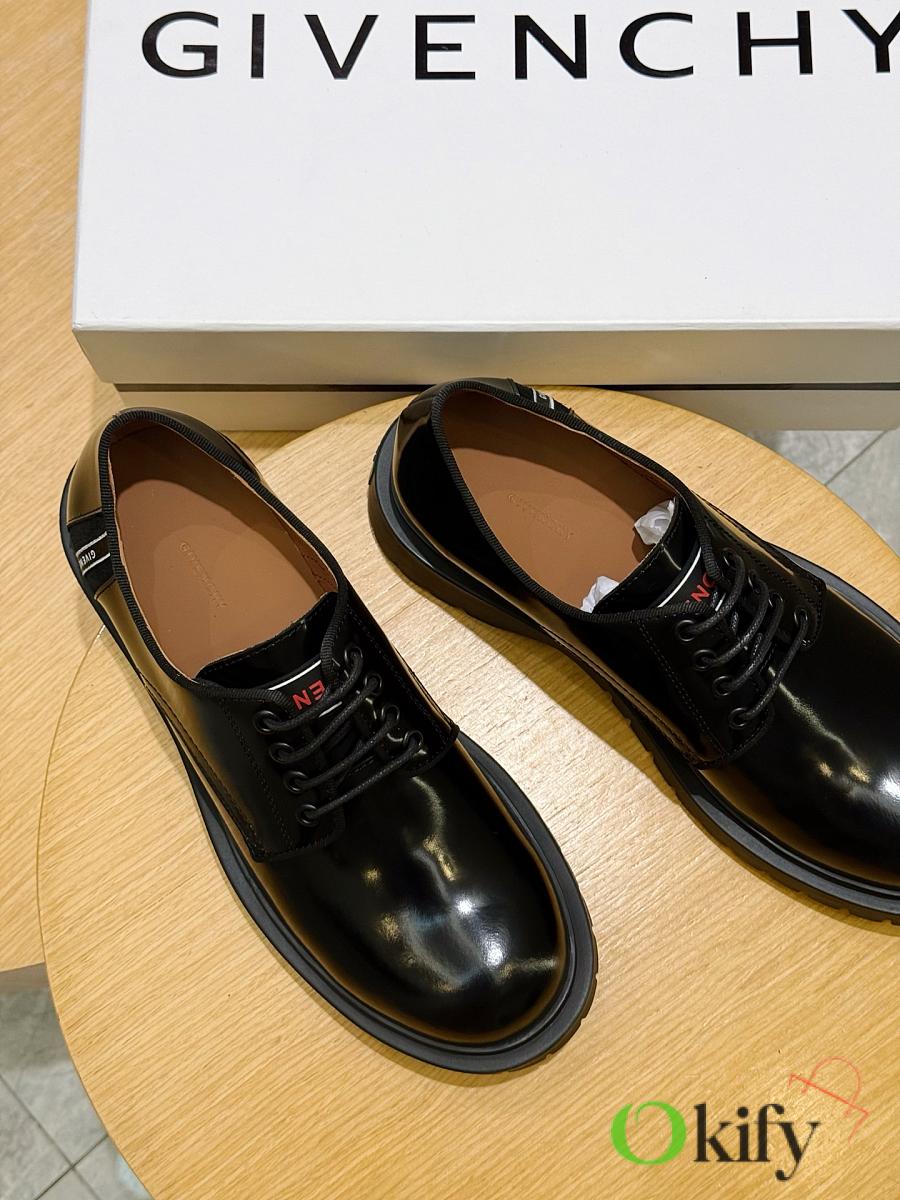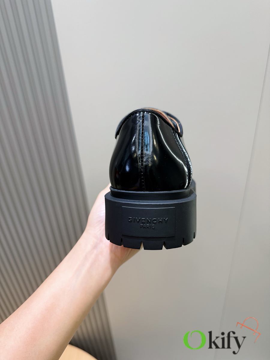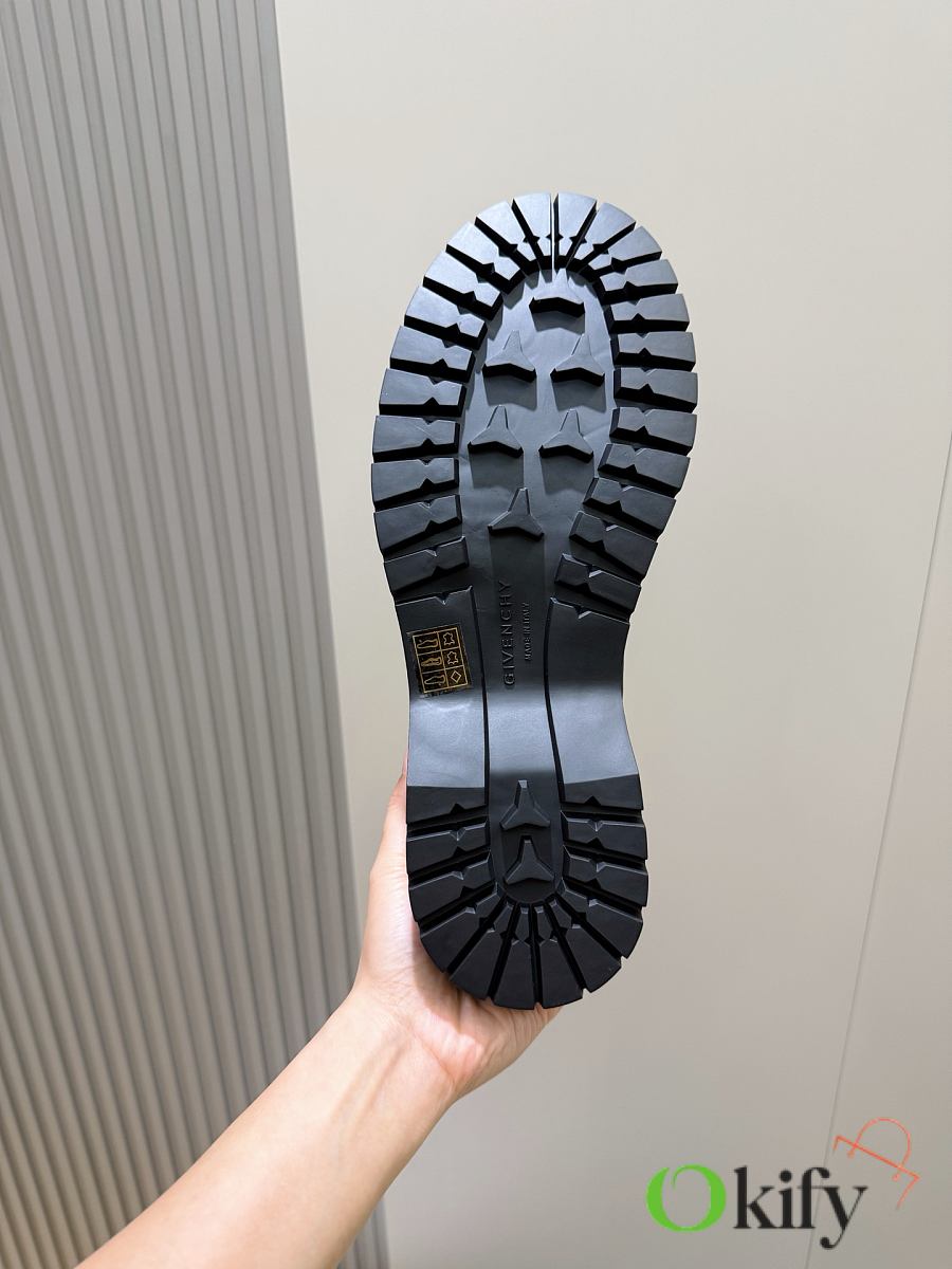 • Cowhide split-edge patent leather ankle boots Show series • Comfortable padded shoe opening • Gold-plated metal hook-and-eye clasp • The tongue features an embossed GIVENCHY logo, and the heel of the sole is adorned with GIVENCHY branding. LOGO embossing 4G logo embossed on the heel • Thick rubber sole • Leather insole with embossed GIVENCHY 4G logo