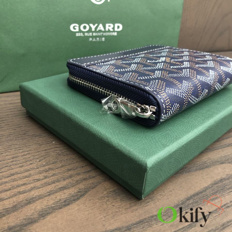 Okify Goyard Dark Blue Zipper Small Wallet 11.5x9.5cm