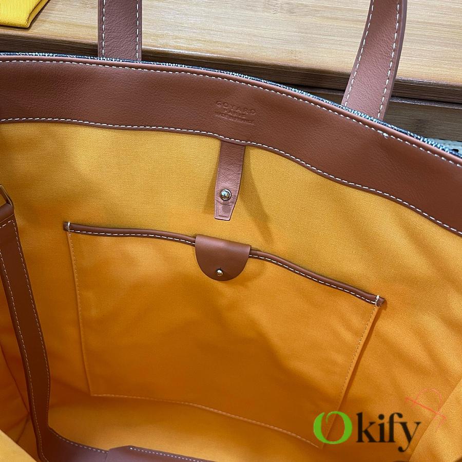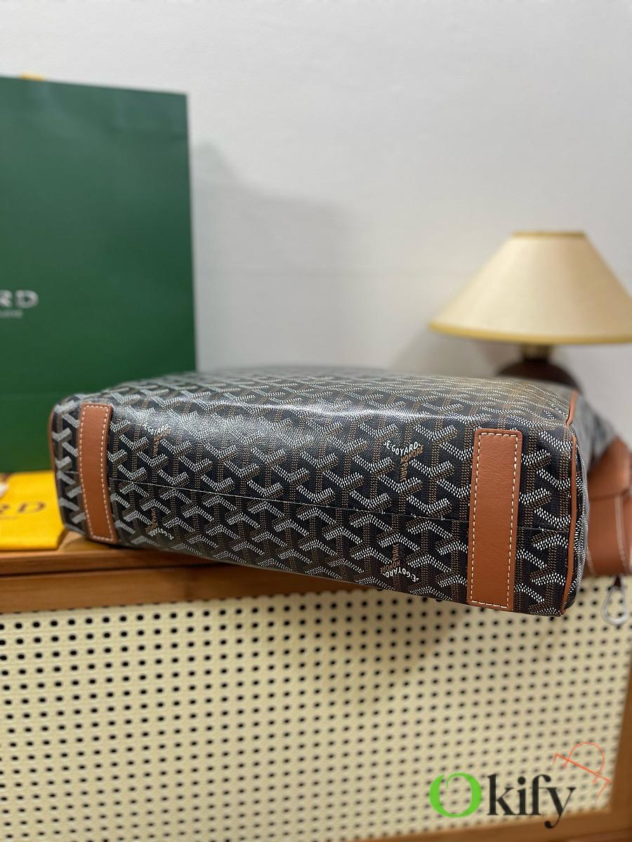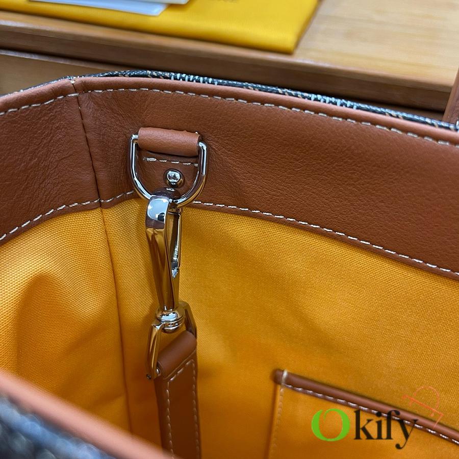 The fabric is a blend of linen, cotton, and hemp fibers, coated with a glossy resin aldehyde, making it waterproof, sturdy, and durable. The lining is the brand's signature bright yellow cotton. From the hardware to every corner and detail, it's identical to those in boutiques! This product is unisex and can be used by both men and women. The Voltaire can hold all your daily essentials and is perfect for both formal and casual occasions, showcasing Goyard's enduring style and charm.