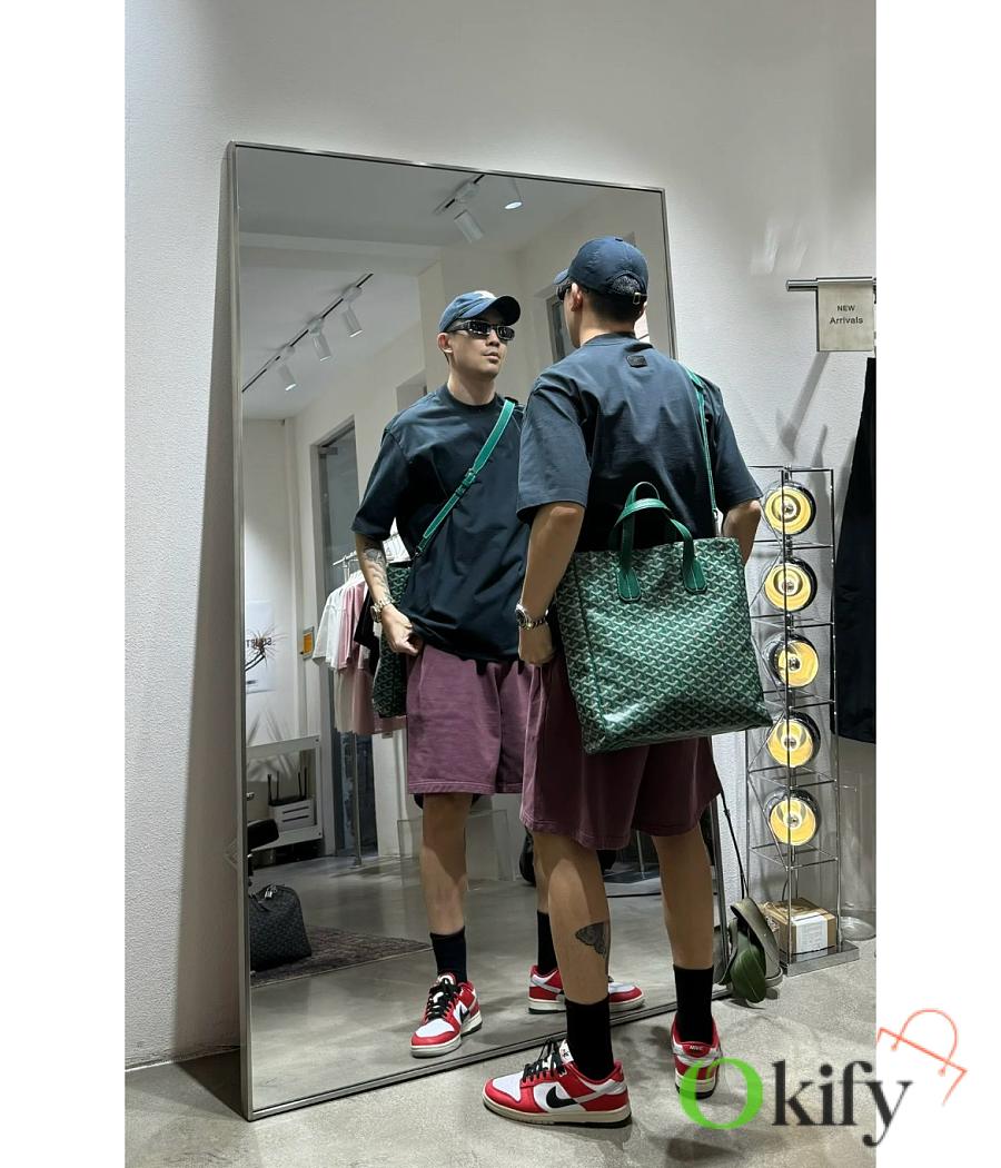 The fabric is a blend of linen, cotton, and hemp fibers, coated with a glossy resin aldehyde, making it waterproof, sturdy, and durable. The lining is the brand's signature bright yellow cotton. From the hardware to every corner and detail, it's identical to those in boutiques! This product is unisex and can be used by both men and women. The Voltaire can hold all your daily essentials and is perfect for both formal and casual occasions, showcasing Goyard's enduring style and charm.