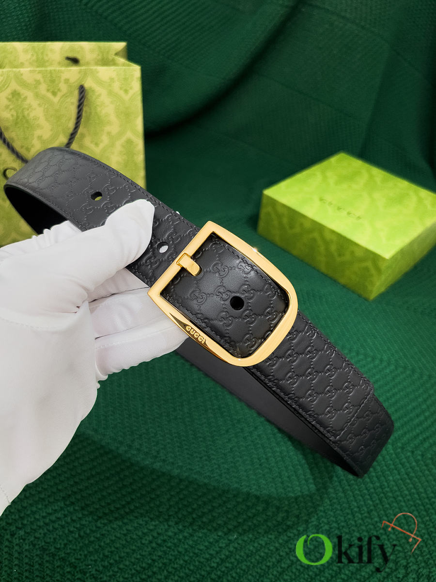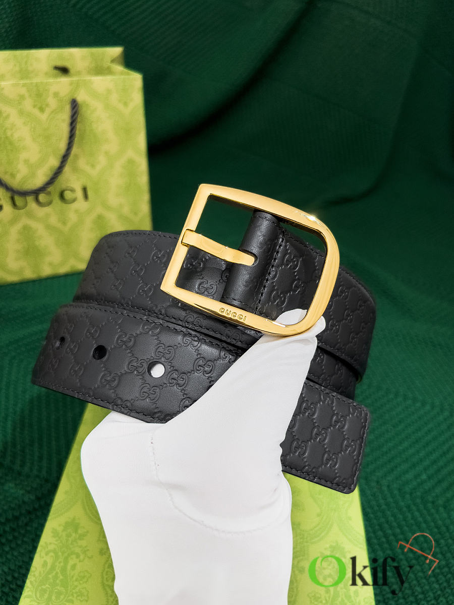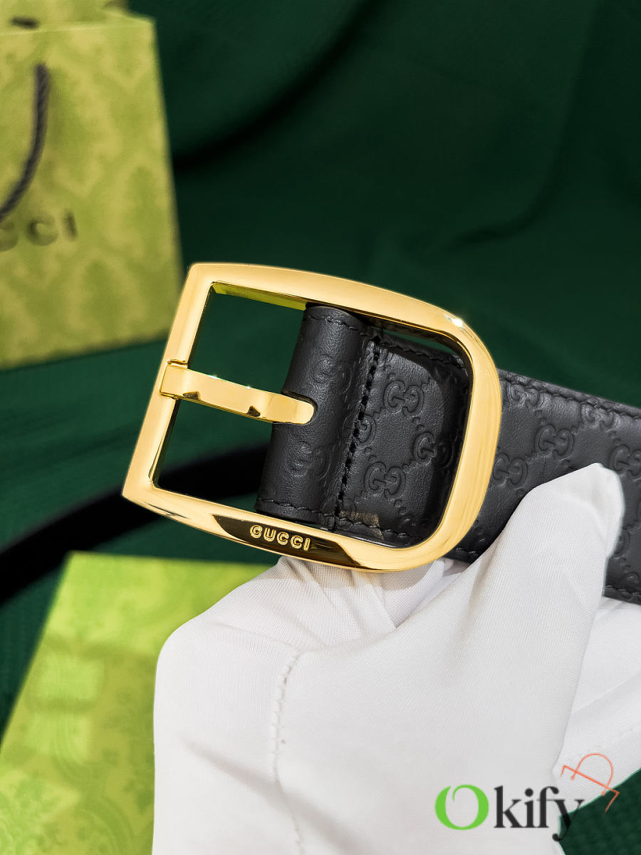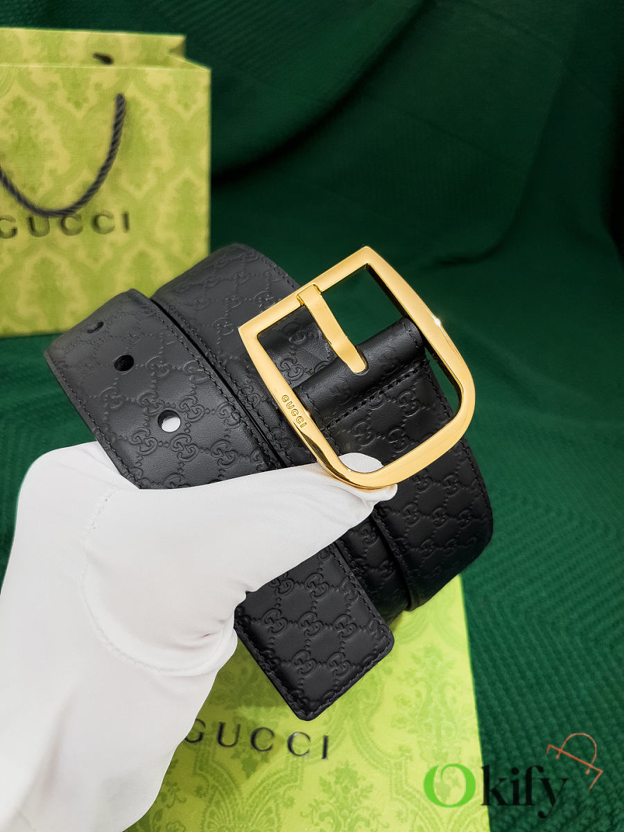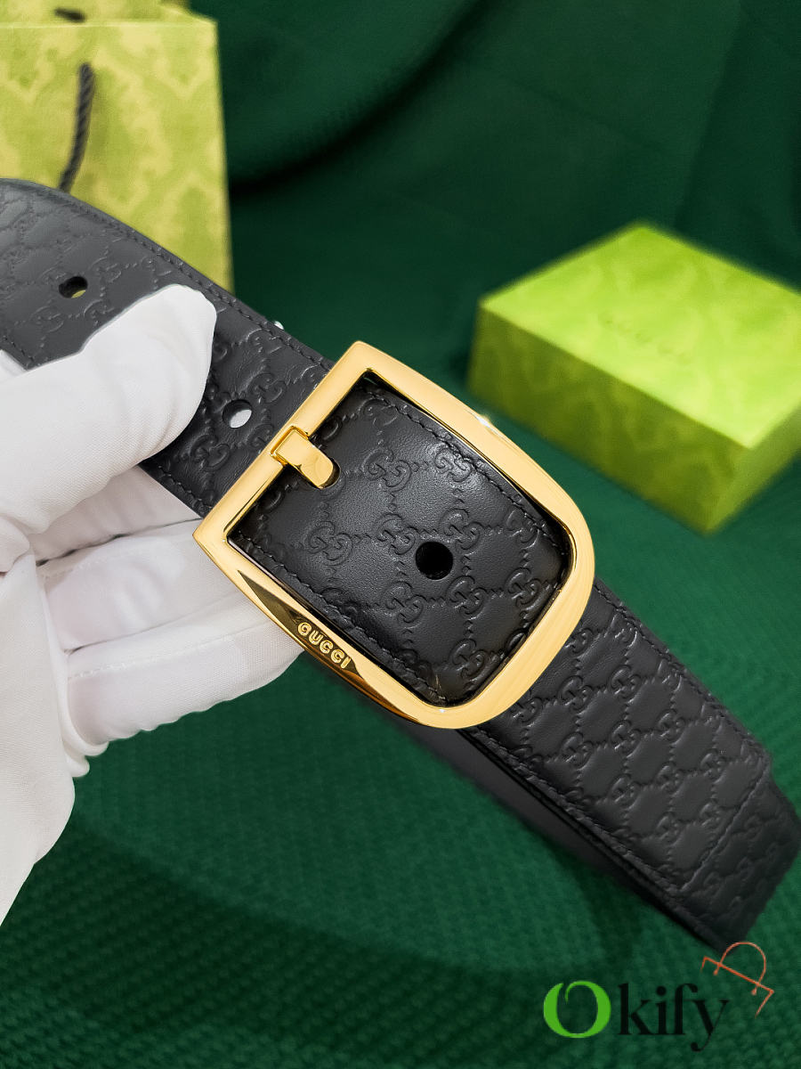 Okify Gucci Black Belt Gold Hardware 4cm