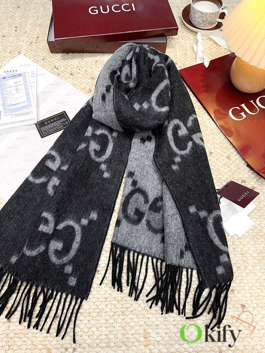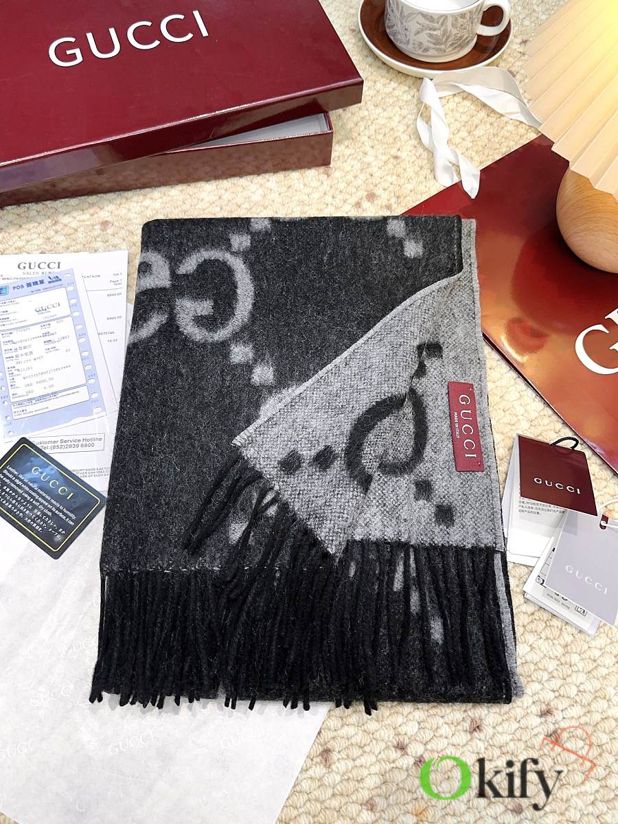 Okify Gucci Black Cashmere Scarf 200x45cm