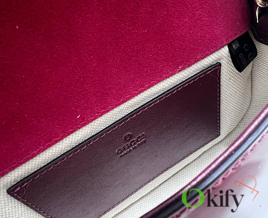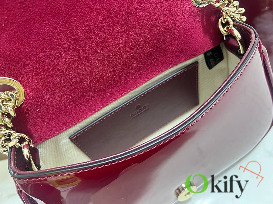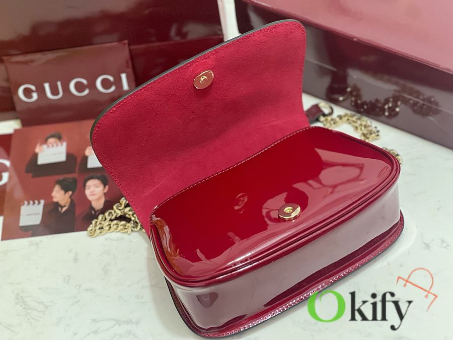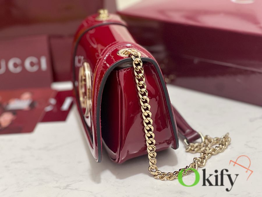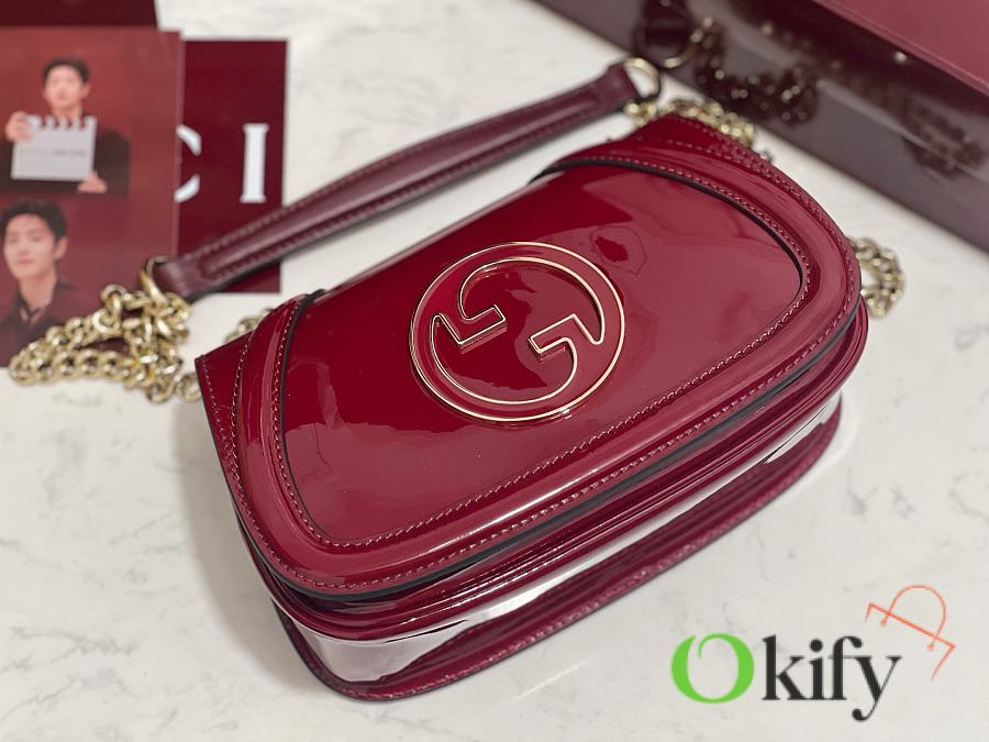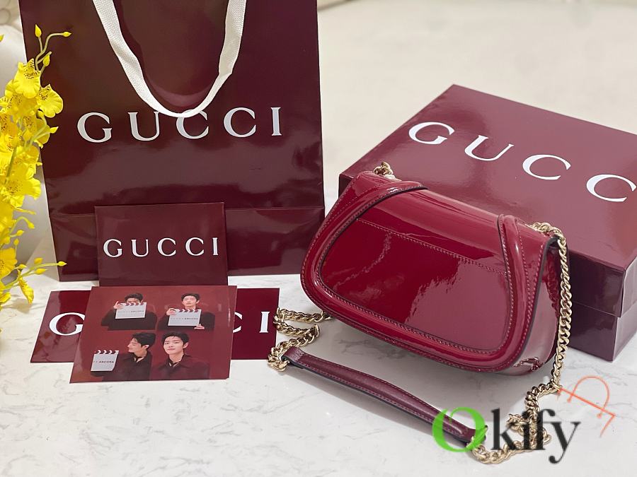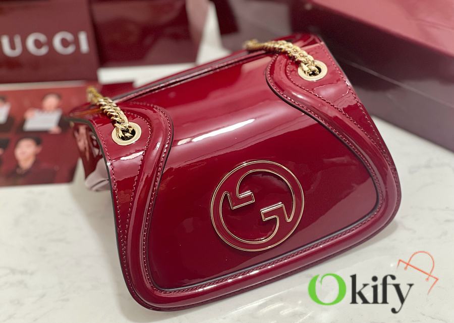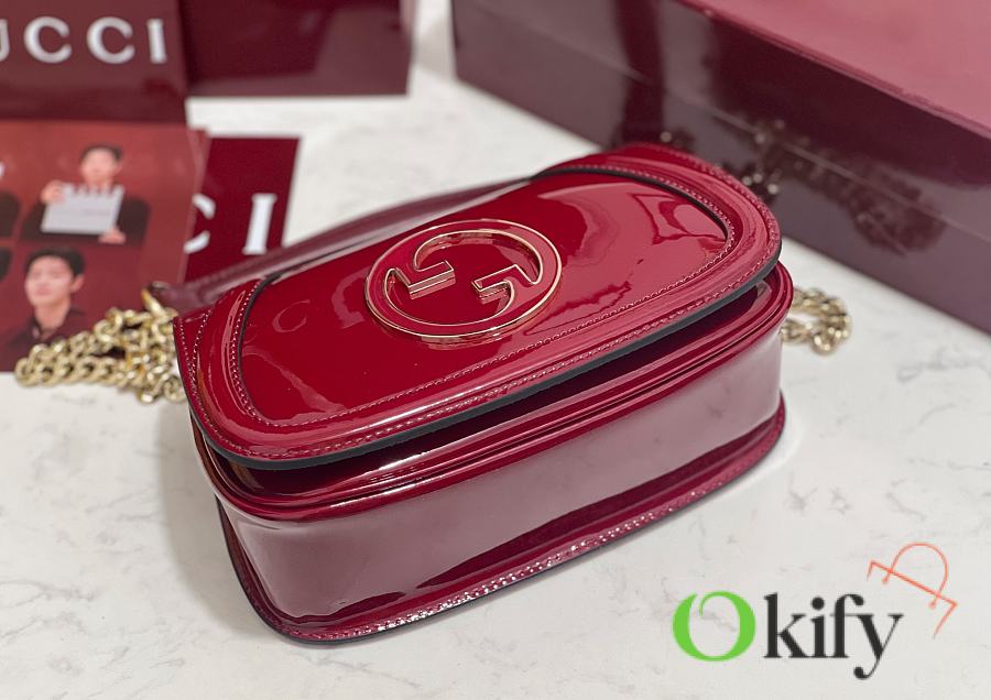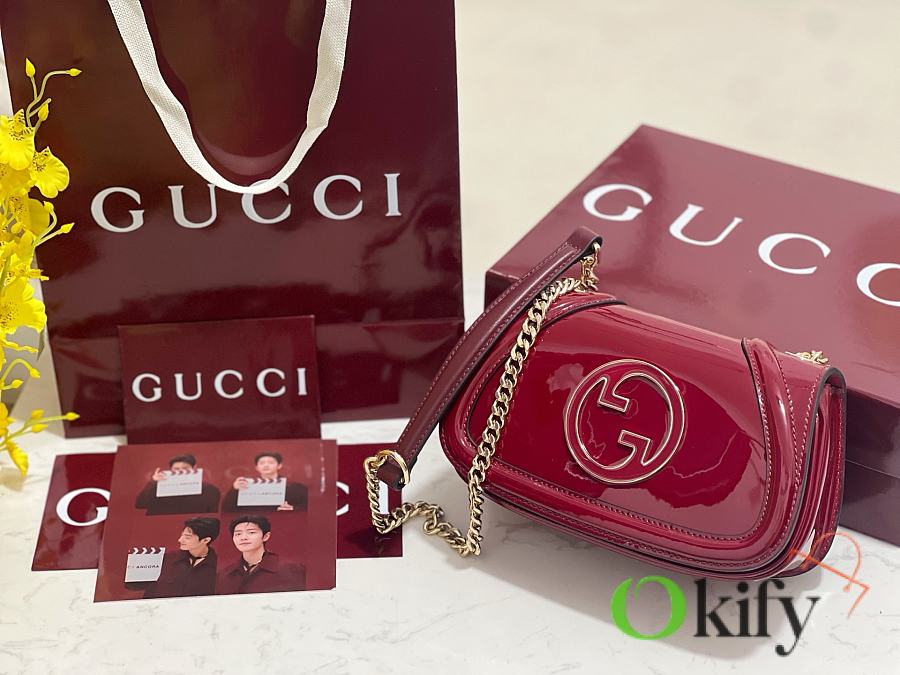 [New Arrival] Gucci Blondie Mini Handbag - Selected for Chinese New Year The new Gucci Blondie handbag collection features the iconic logo of the brand's collection, which first debuted in the early 1970s. It cleverly combines heritage charm with contemporary style, brilliantly interpreting the brand's classic design and modern essence. This mini shoulder bag is crafted from Gucci Encore red patent leather, adorned with an enamel circular logo, and features a gold-tone chain shoulder strap. Model: 815711