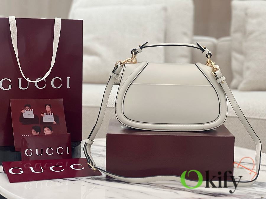 Gucci Blondie Small Handbag The new Gucci Blondie handbag collection features the iconic logo of the brand's collection, which first debuted in the early 1970s. It cleverly combines heritage charm with contemporary style, brilliantly interpreting the brand's classic design and modern essence. This small tote bag is crafted from black glossy leather and comes with a detachable and adjustable leather shoulder strap. Model: 815714