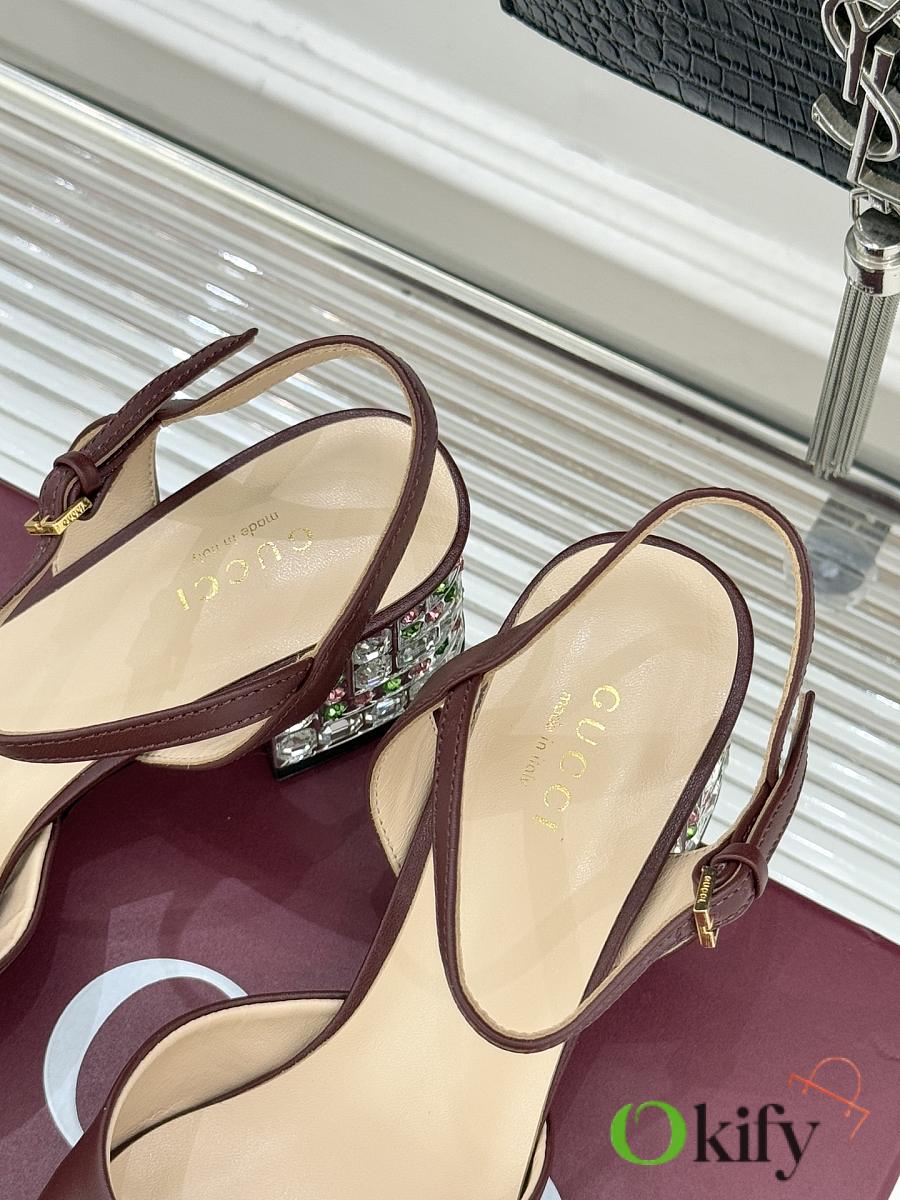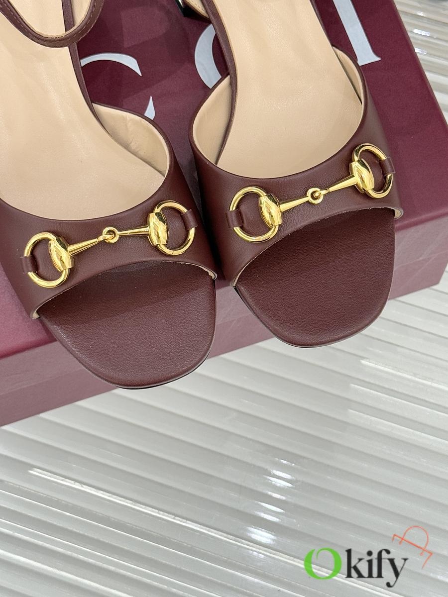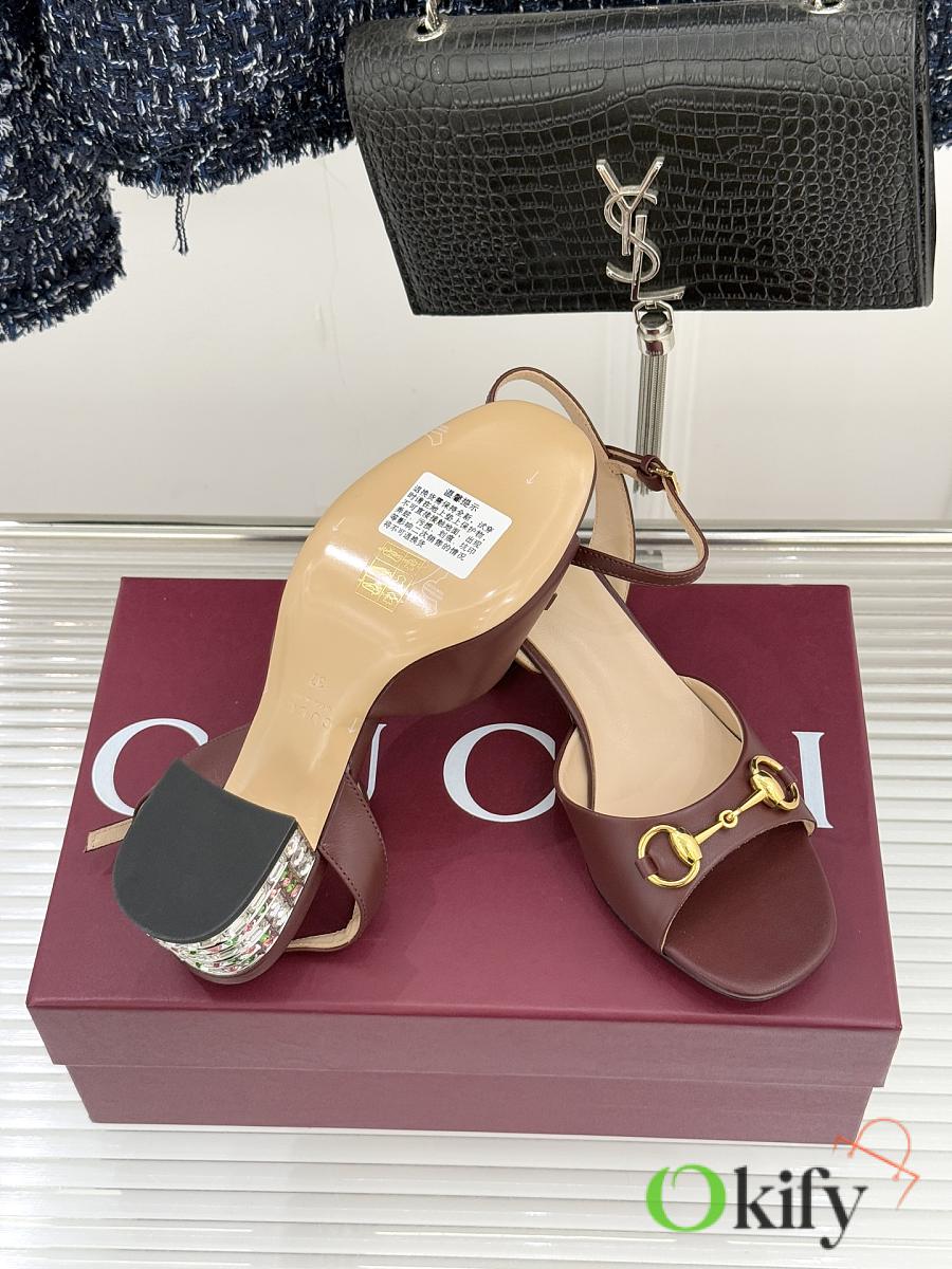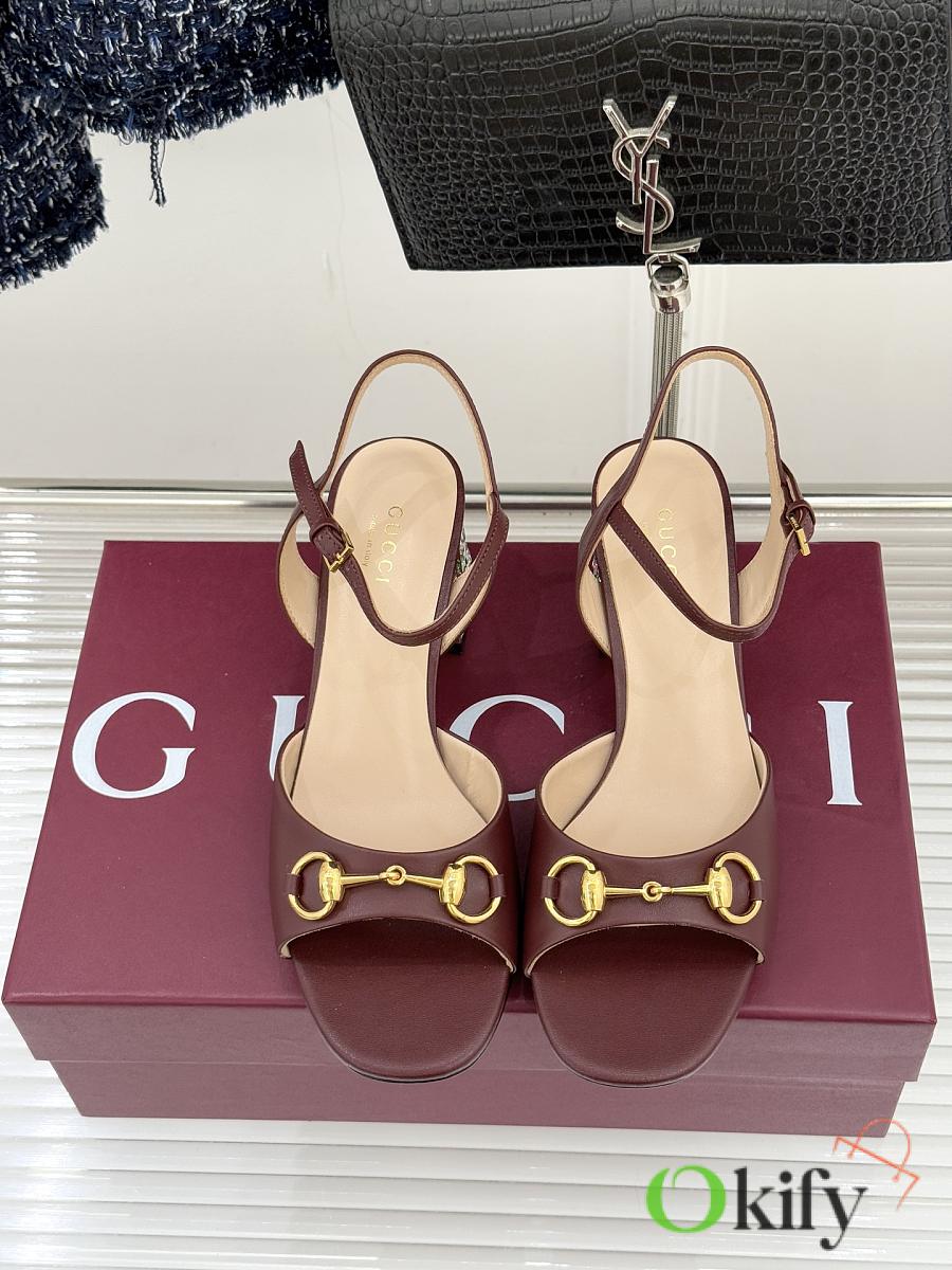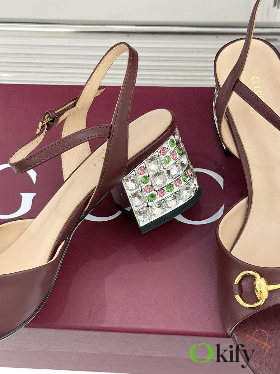 Okify Gucci Dark Brown Horsbit Crystal Block Heel Sandals 5.5cm