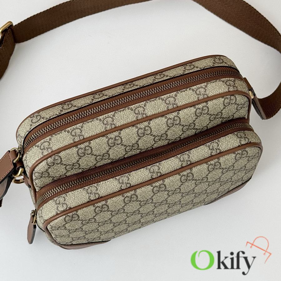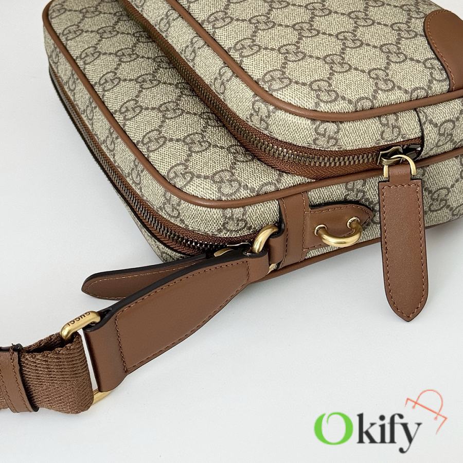 Okify Gucci Emblem Crossbody Bag Brown 23.5x18x8cm 821160