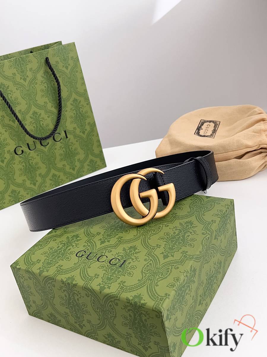 Okify Gucci GG Black Belt Gold Hardware 4cm