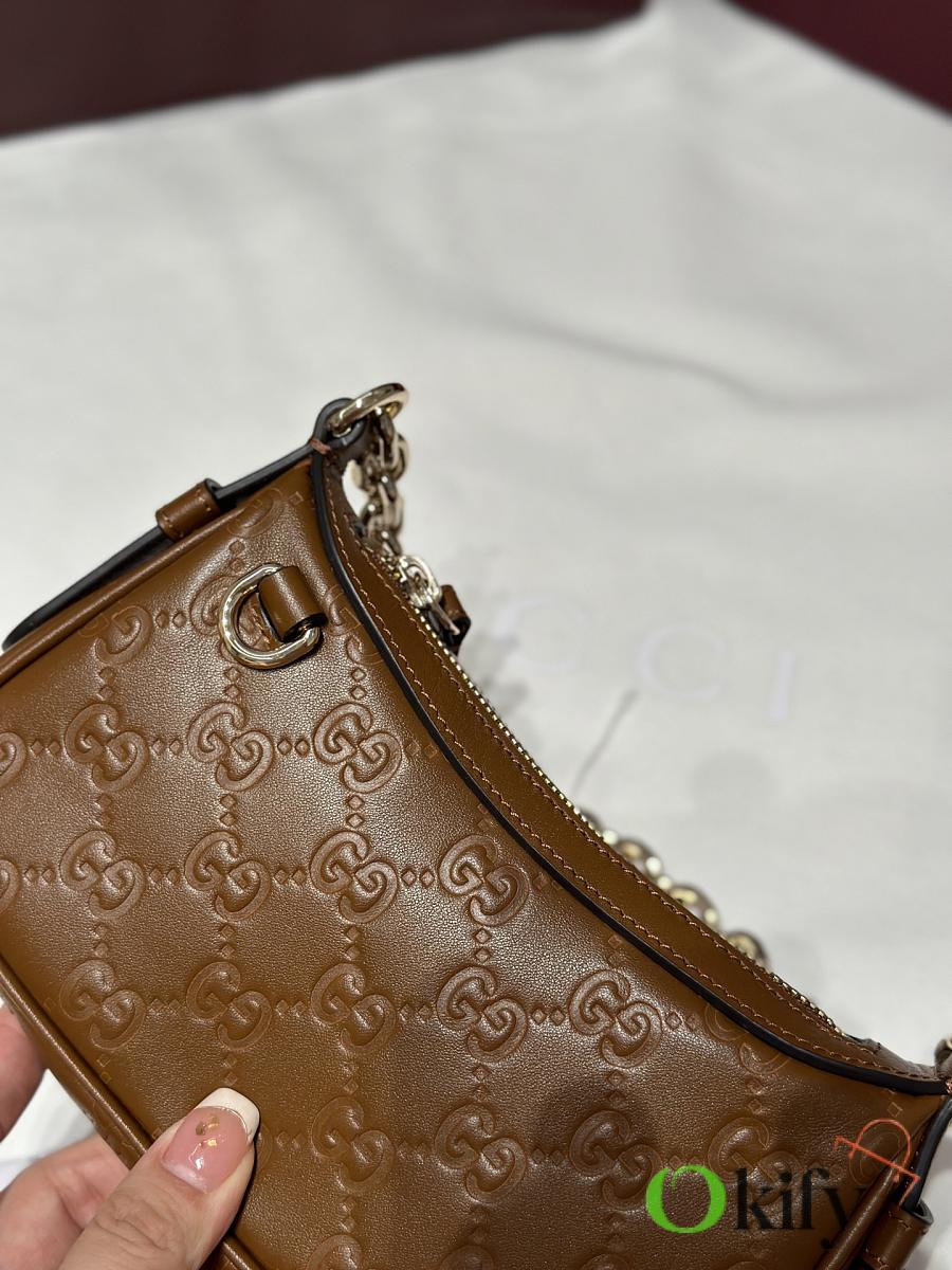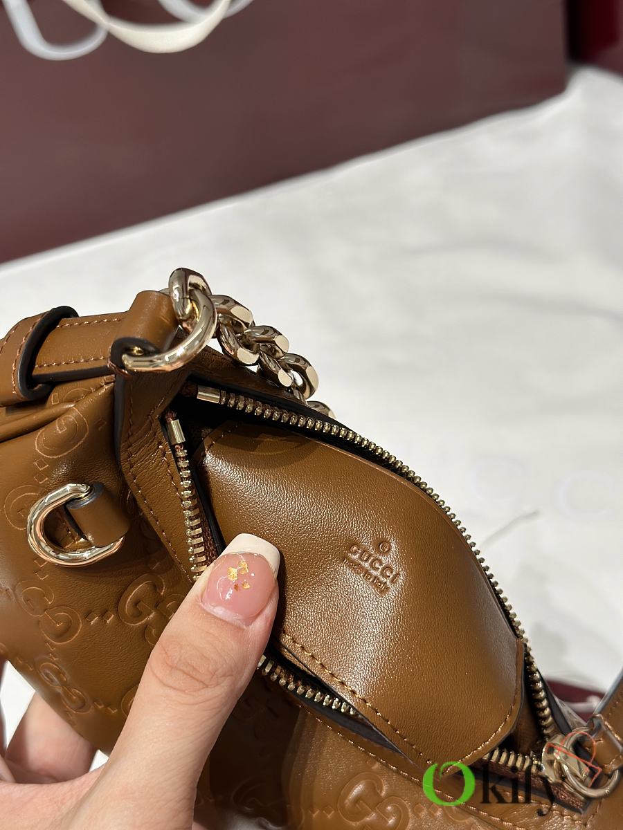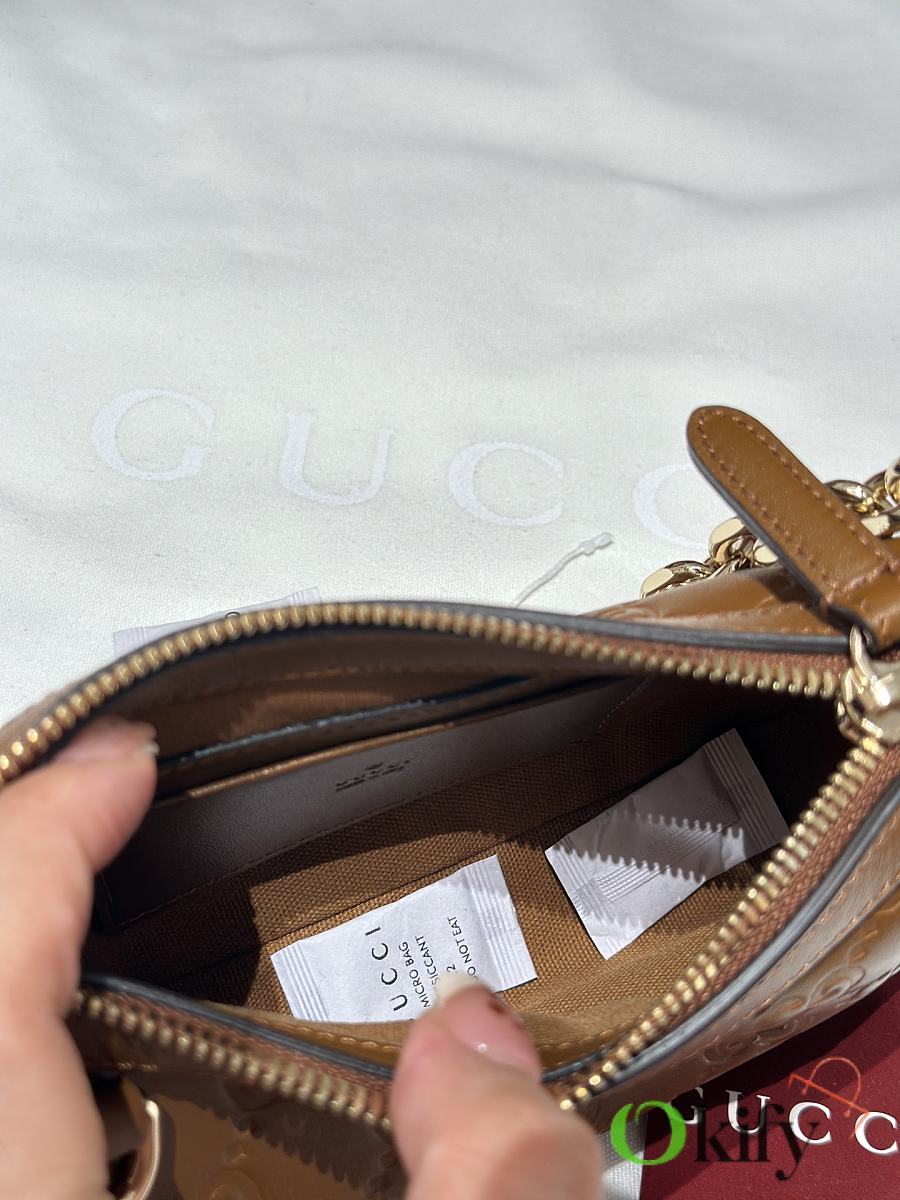 Cotton and linen lining. Bag shown is sold separately and does not come with bag charm. Interior: Card pocket Chain shoulder strap (23 cm drop) Zipper closure 19cm (bottom width) x 16.5cm (top width) 12cm (height) x 4cm (bottom depth) x 2.5cm (top depth) Can accommodate iPhone Pro Max/Plus, Airpods, small wallet and lipstick