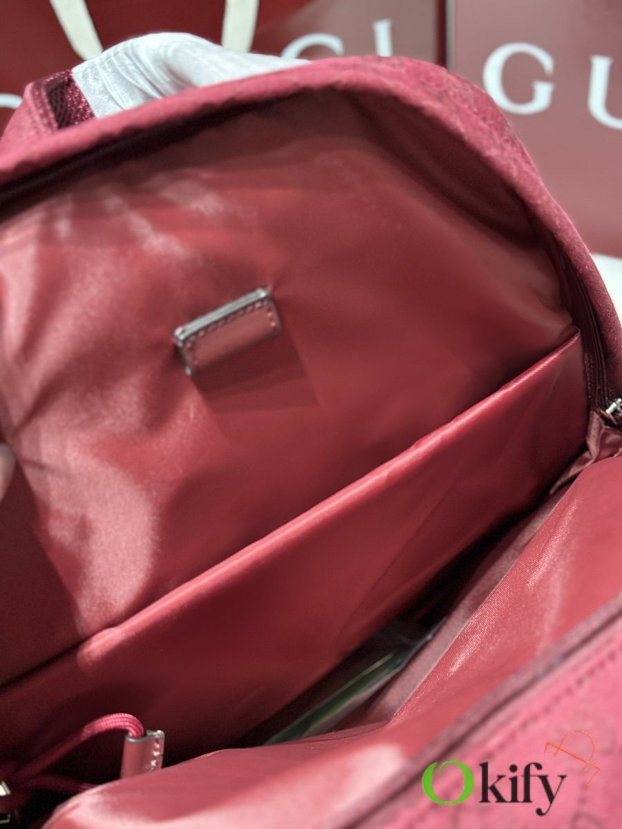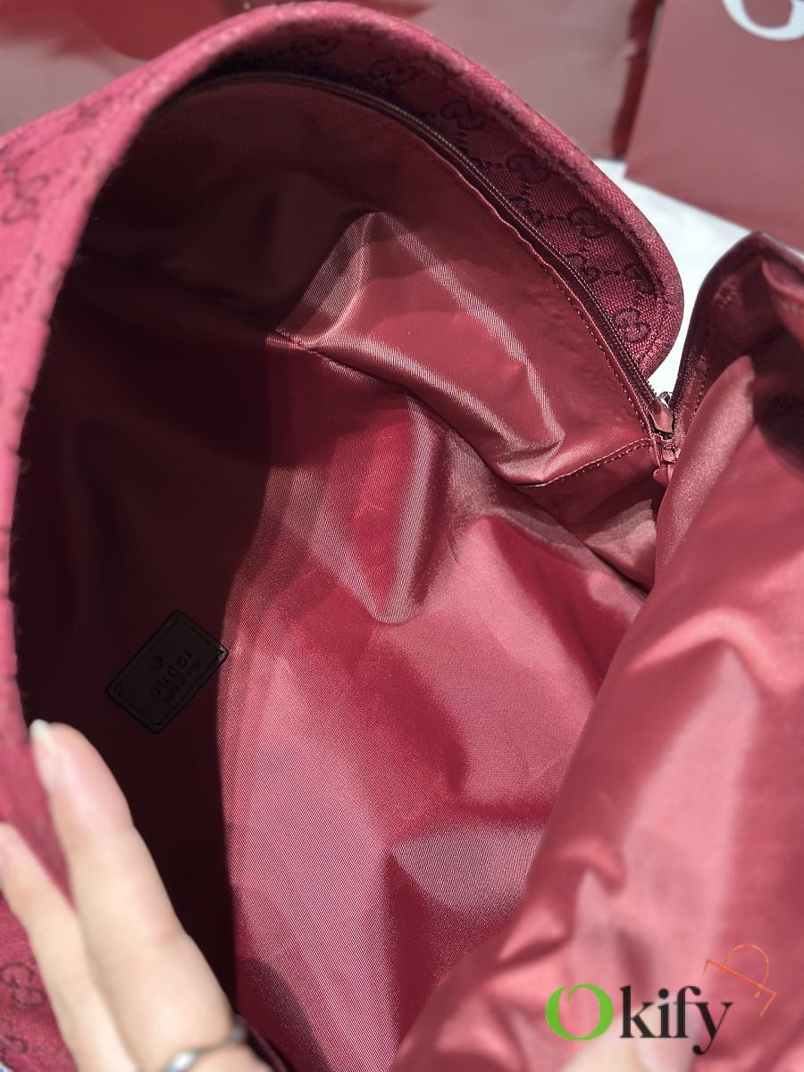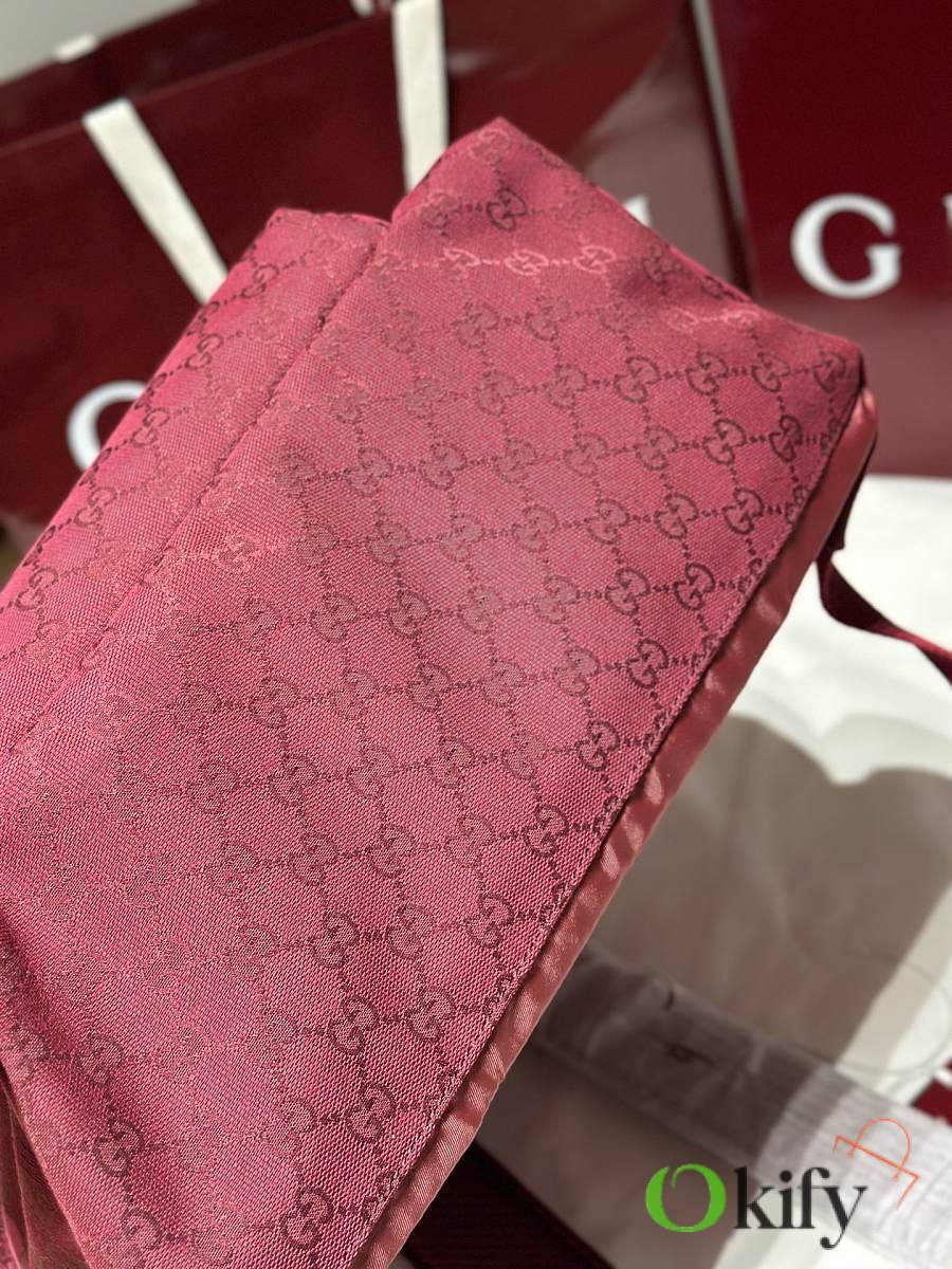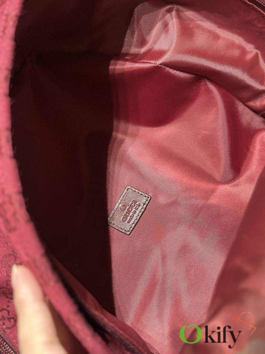 Crafted from classic GG canvas in beige and ebony, it's embellished with a high-frequency embossed logo, creating a subtle yet refined look. Other classic details include red and green webbing detailing on the zippered exterior pocket.