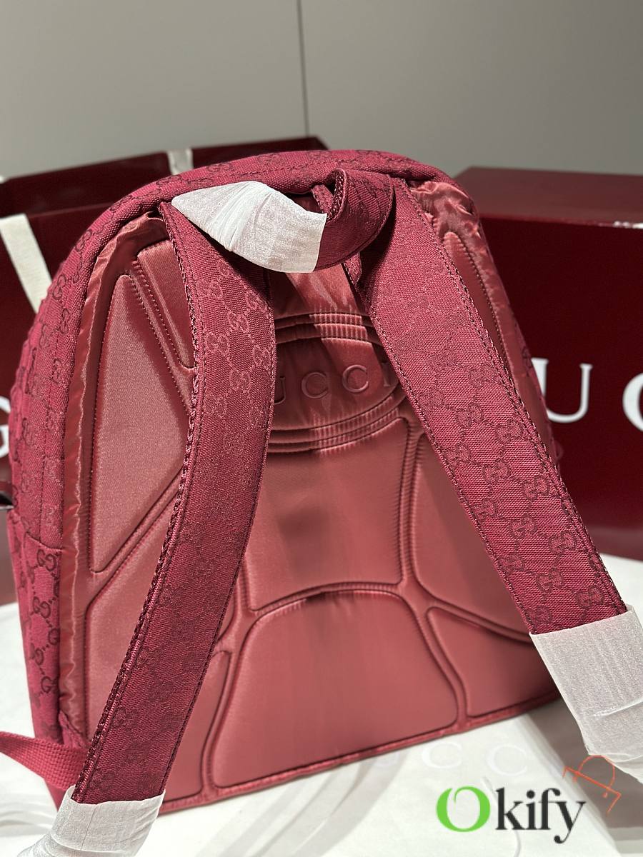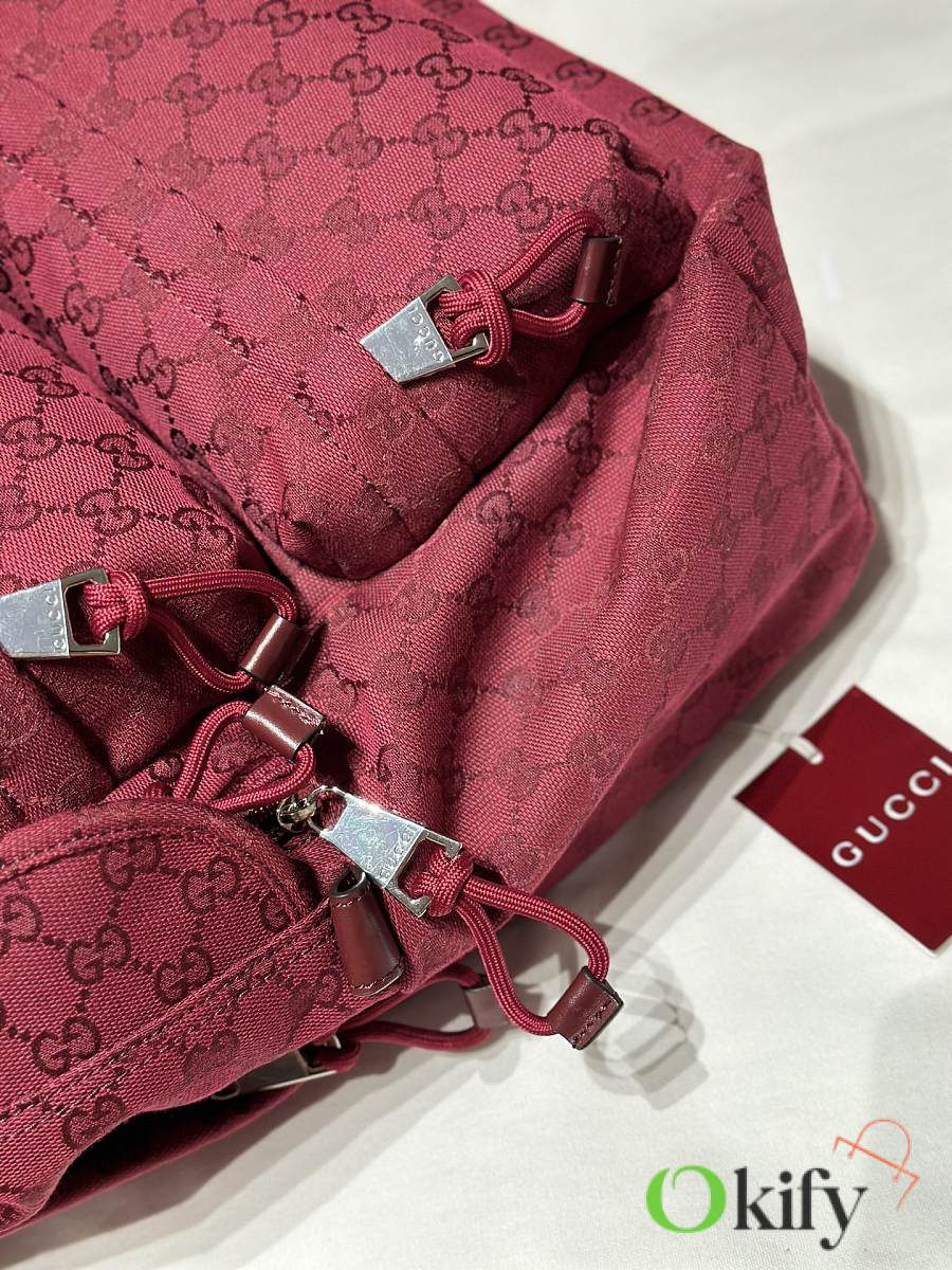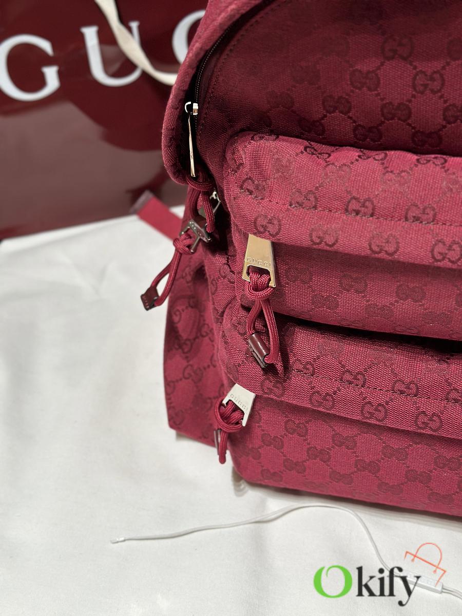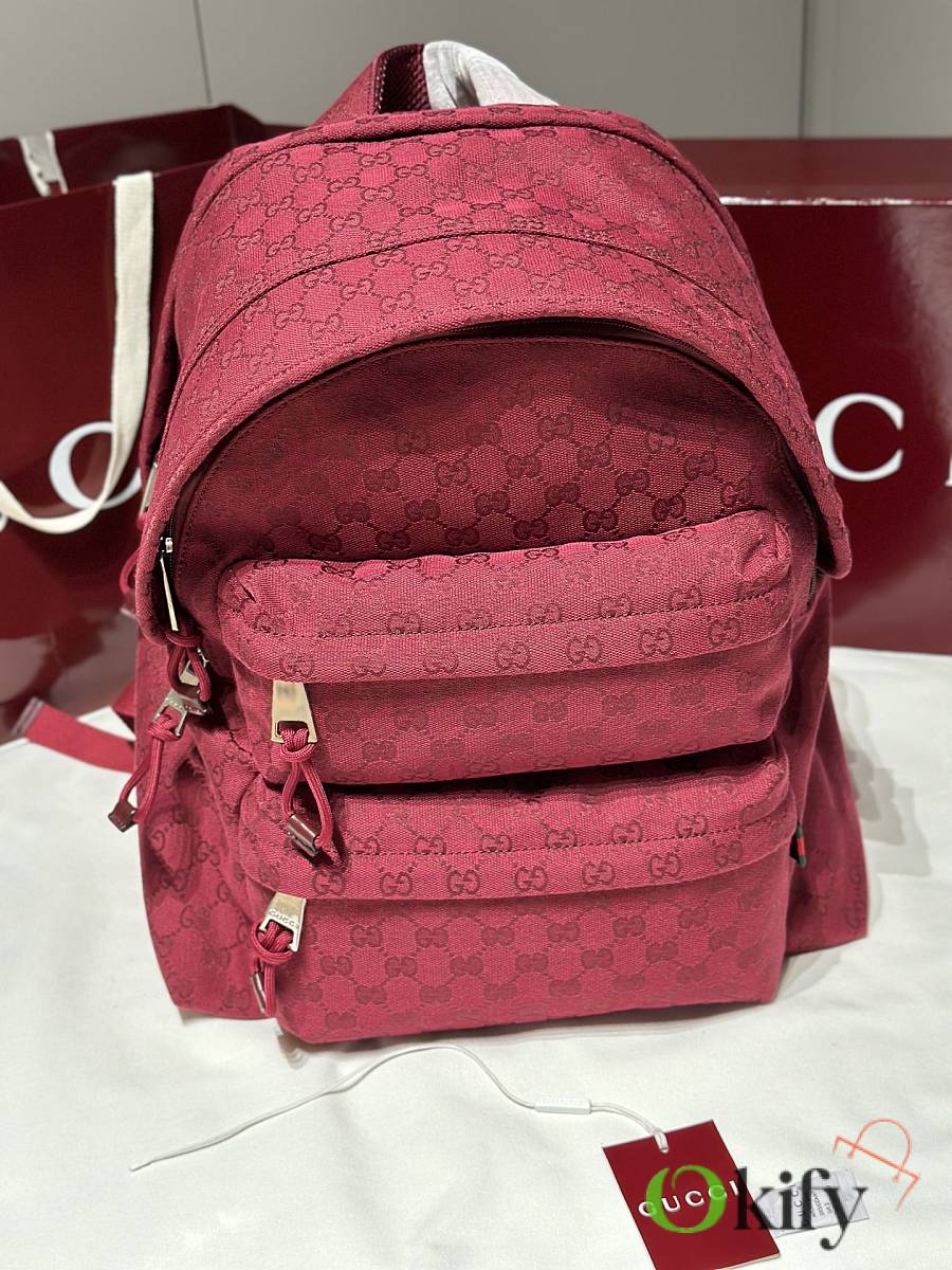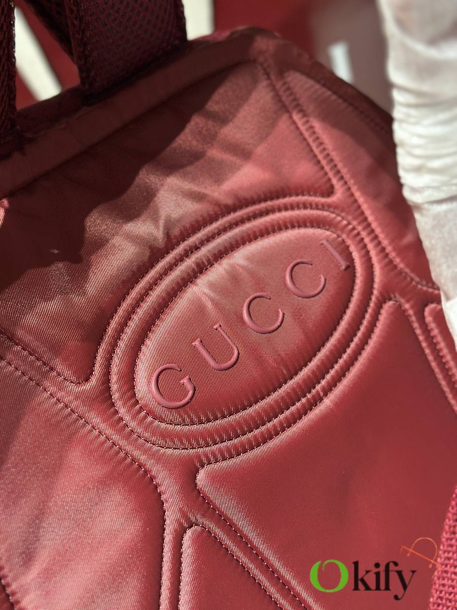 Crafted from classic GG canvas in beige and ebony, it's embellished with a high-frequency embossed logo, creating a subtle yet refined look. Other classic details include red and green webbing detailing on the zippered exterior pocket.
