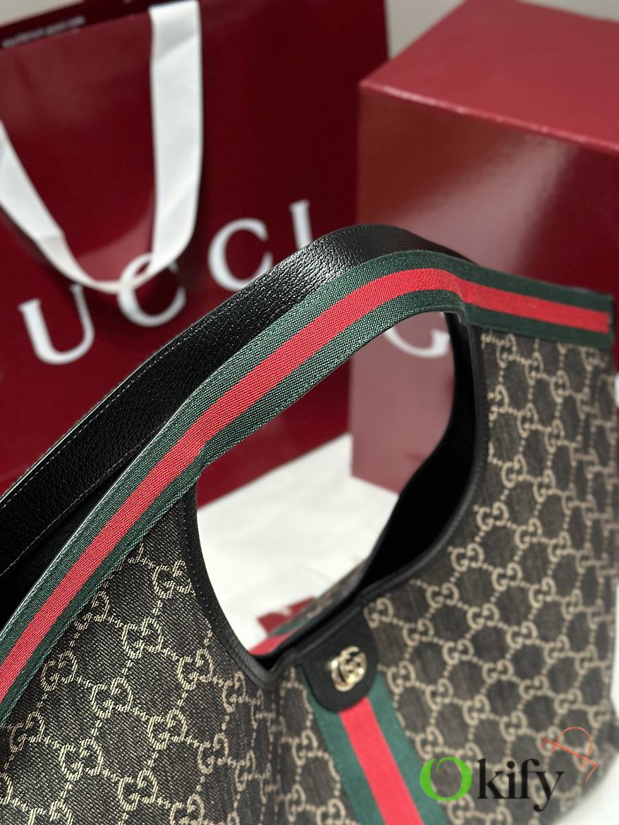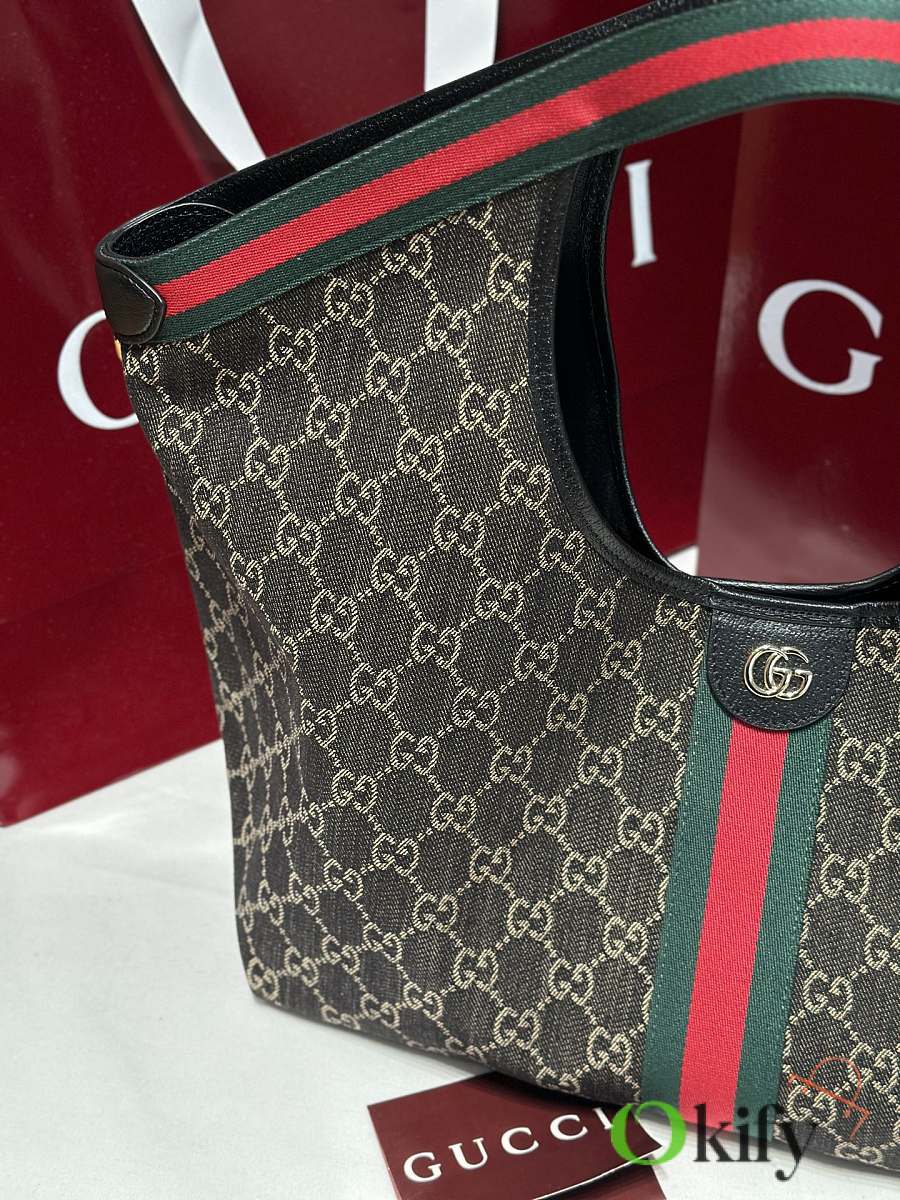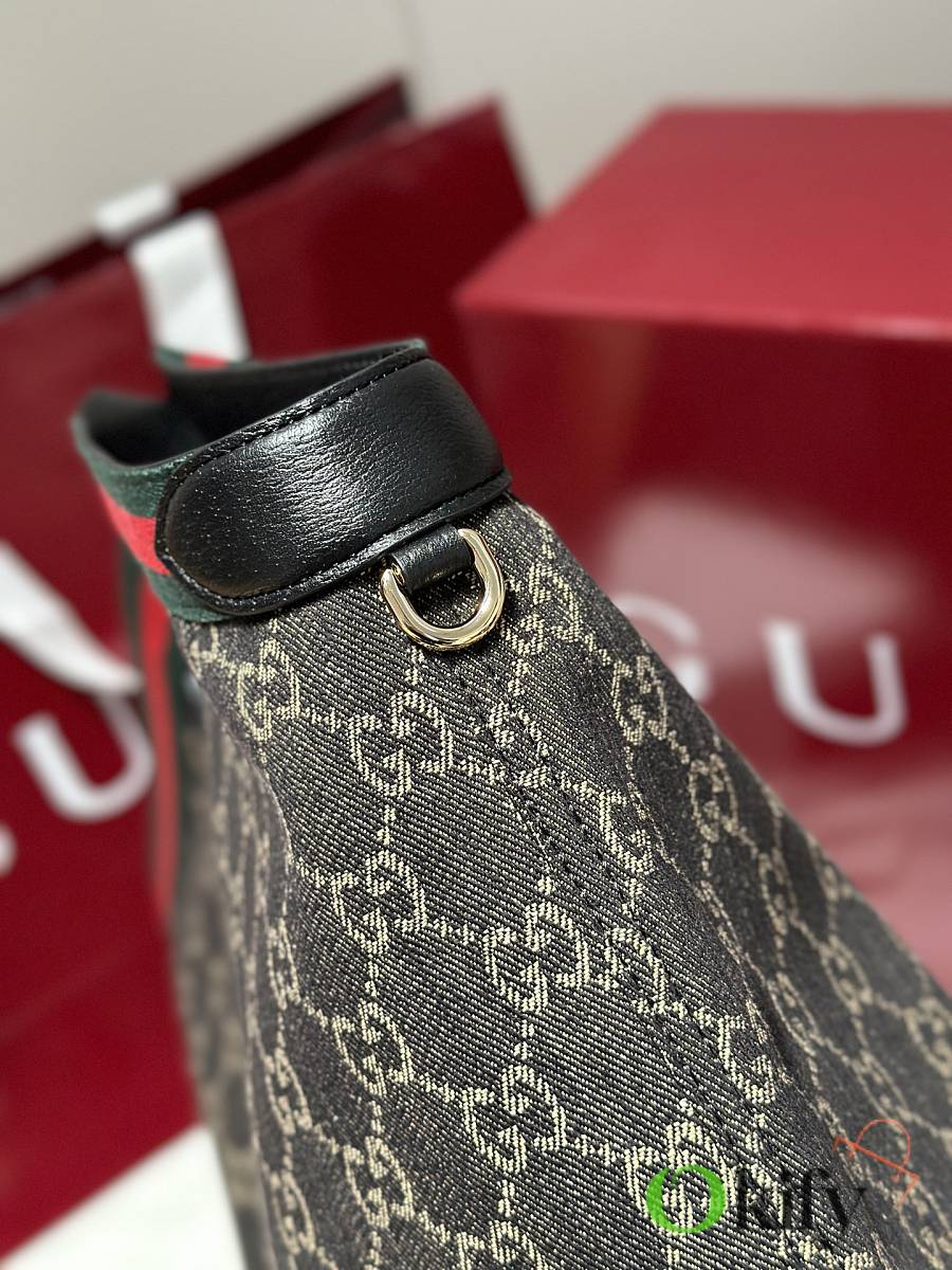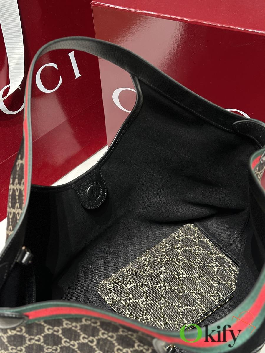 The Gucci Giglio collection made its debut at the Florence 2026 Cruise Fashion Show, paying homage to the brand's Italian roots and blending timeless heritage with innovative spirit. This large-capacity tote bag is crafted from GG denim, adorned with webbing trim, and comes with a detachable clutch. Available in blue and white GG denim. Features blue and red webbing trim. Light gold accessories Brown cotton lining Double G Comes with a detachable clutch bag Top handle: 18 cm high Magnetic snap closure