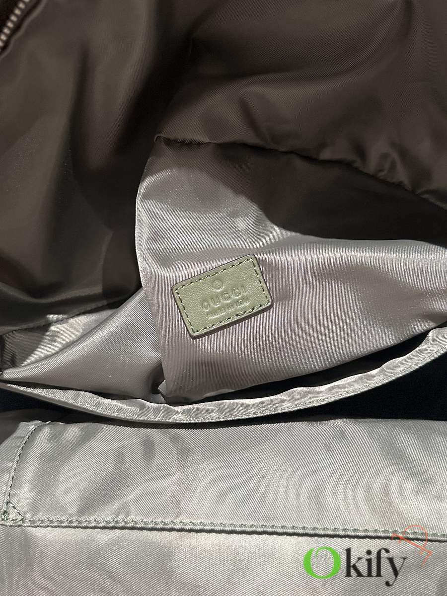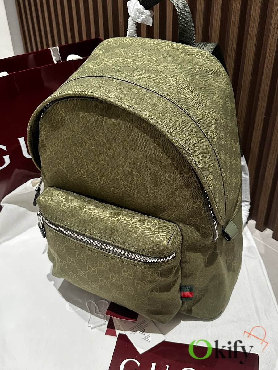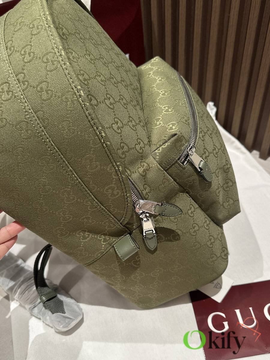 This men's handbag features a soft yet structured shape, a smooth feel, and easy opening and closing, showcasing exquisite craftsmanship and practical design. This backpack is expertly crafted from all-black GG canvas. The subtle, understated Gucci print and embossed logo on the base create a finishing touch. Black GG canvas Black leather trim Black cotton and linen-blend lining Gucci printed embossed logo Webbing handle details Interior: Padded laptop compartment and pen pocket Exterior: Zippered front pocket Handle (5 cm high) Zipper closure Model: 824624/64 Dimensions: 36cm (W) x 42cm (H) x 21cm (D)