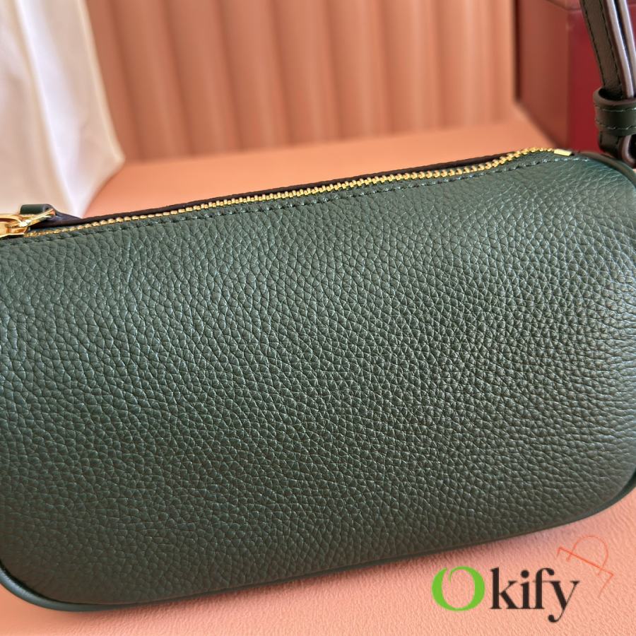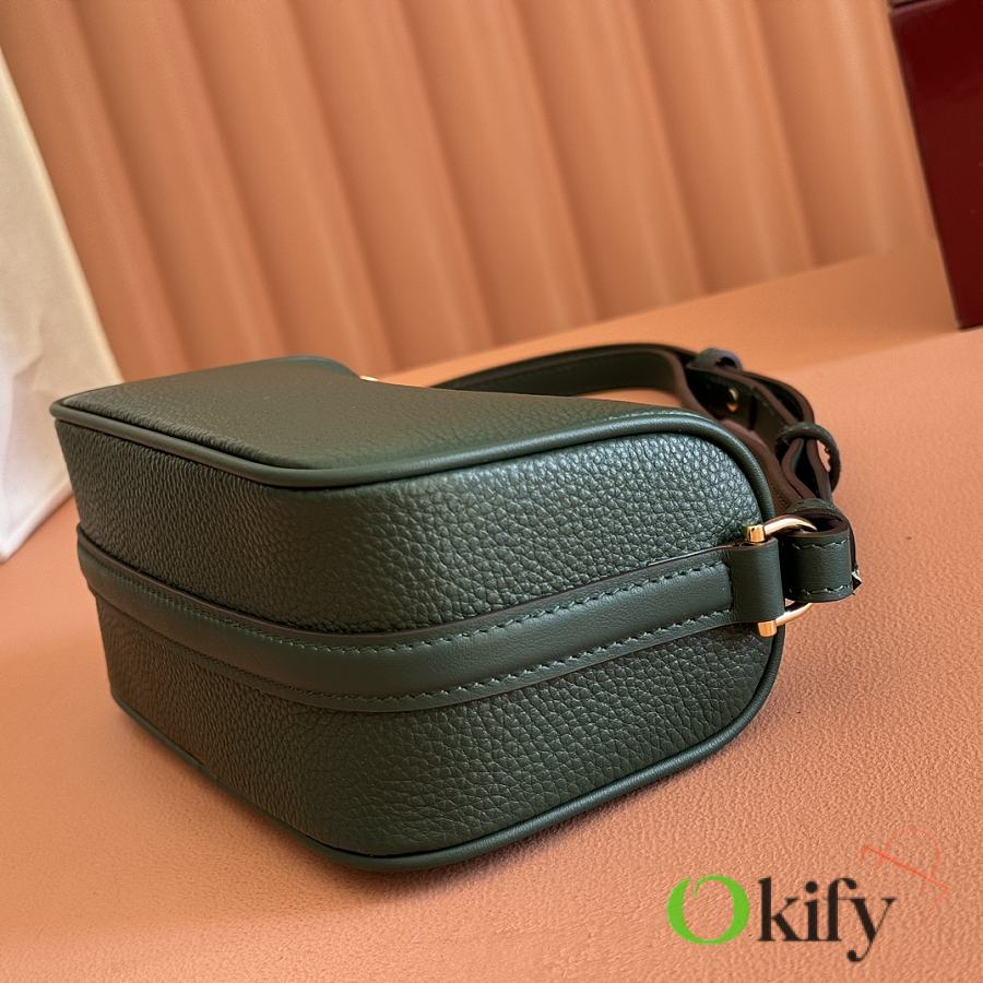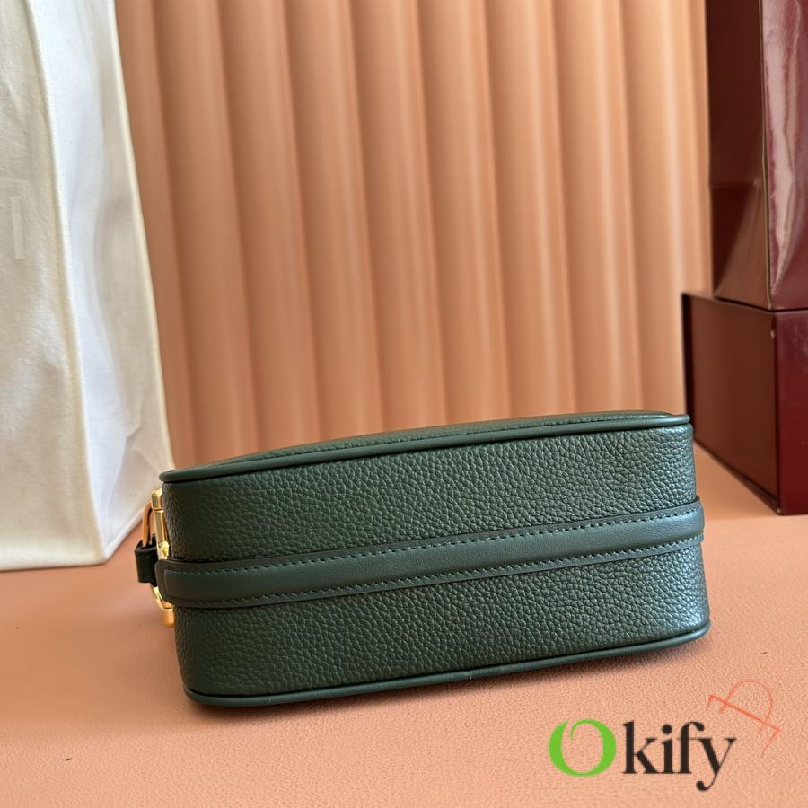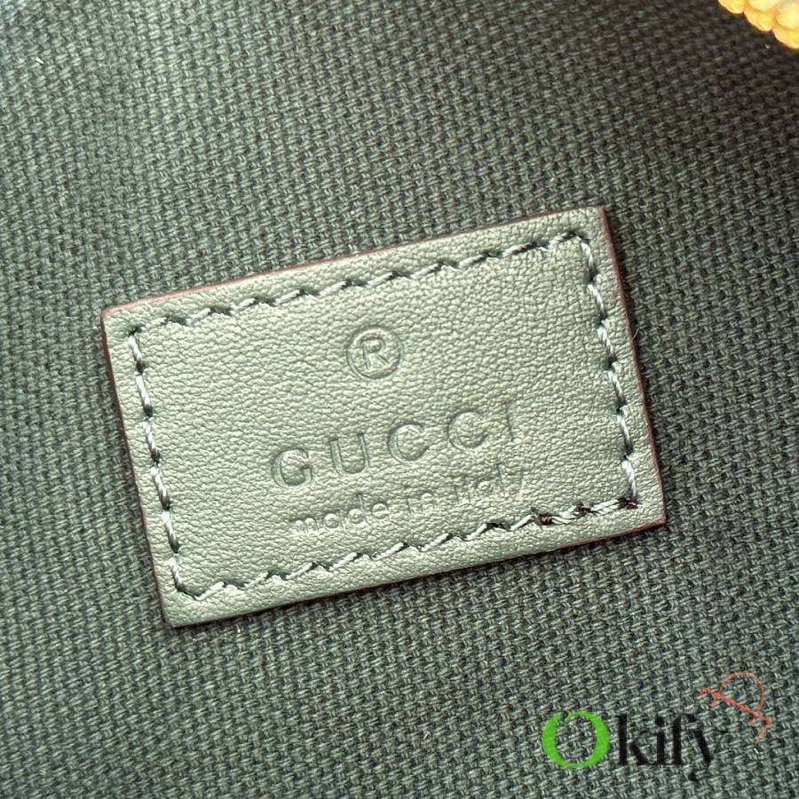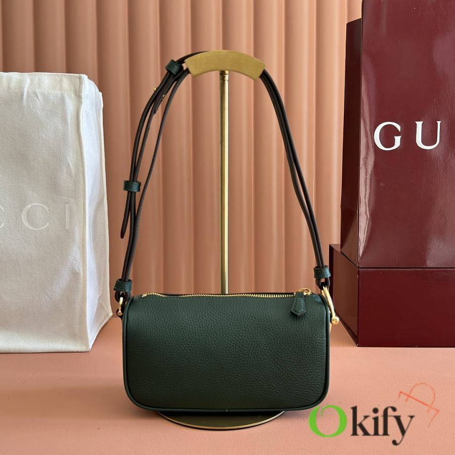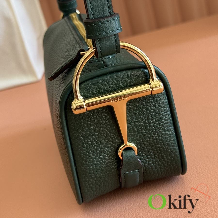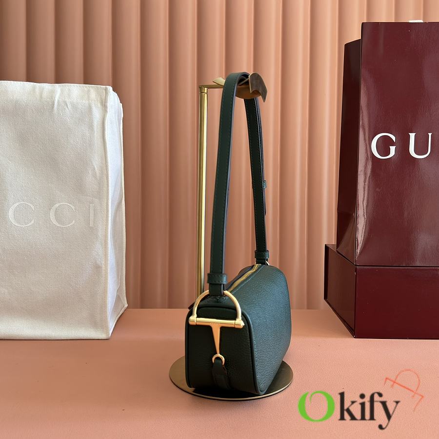 The brand reinterprets iconic elements from a contemporary perspective, presenting a refreshed Gucci horsebit design. Crafted from supple cowhide leather, this classic accessory is infused with new style. This mini handbag is meticulously crafted from grained soft leather and features a horsebit detail on the side. Green grained soft leather Light gold-tone hardware Tonal cotton-linen blend lining Horsebit Cowhide shoulder strap (23cm high) Zipper closure Model: 860784. Dimensions: 19cm (W) x 19.5cm (H) x 9cm (D) Weight: Approx. 272g Color: Brown/Full leather