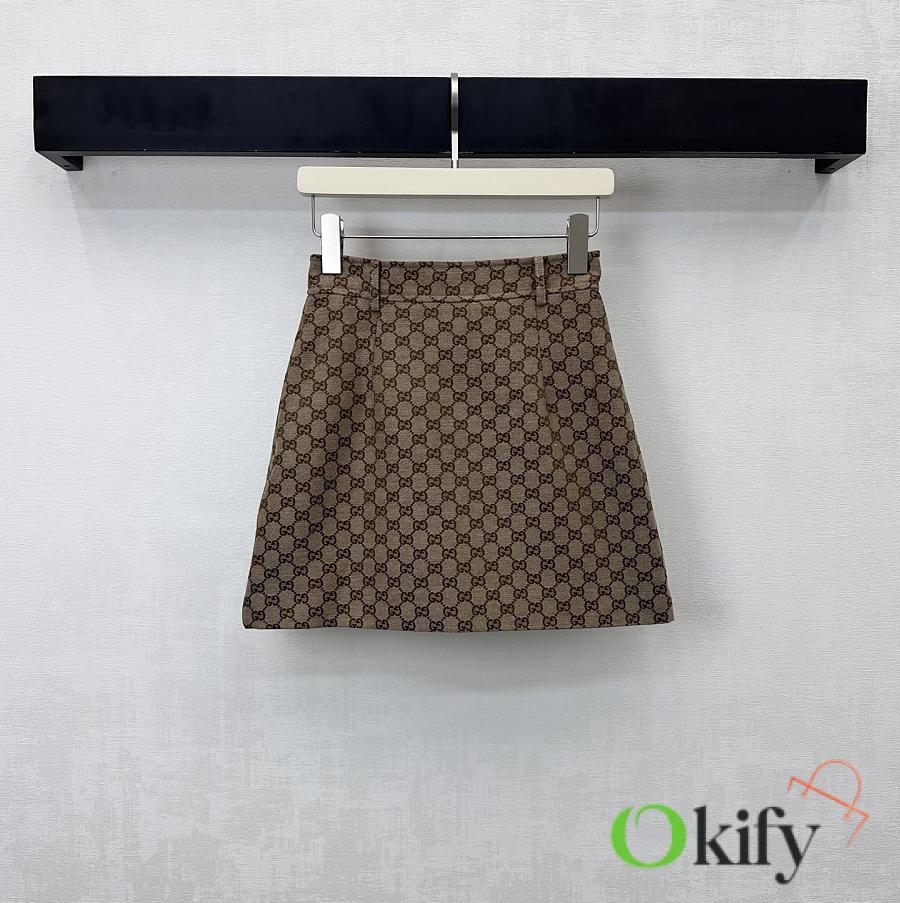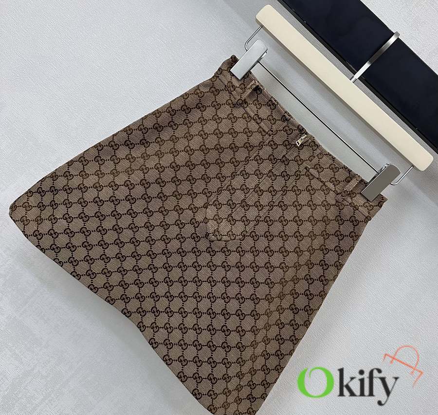 Gucci 2026 Early Spring New High-Version Jacquard High-Waisted Mini Skirt. Original custom-made imported jacquard material with superior texture and smooth drape. The iconic double G jacquard pattern throughout showcases the brand's style. The half-zip adjustment and A-line skirt design add a sense of layering. 1:1 custom-made fabric and accessories.