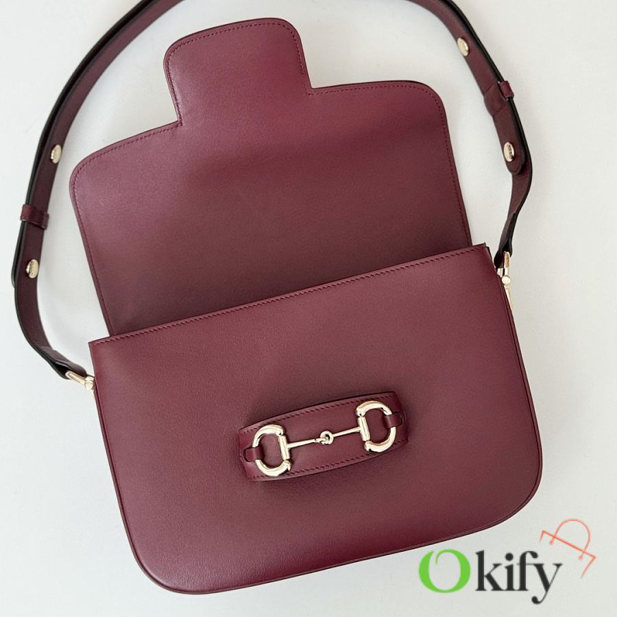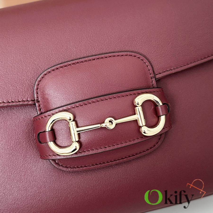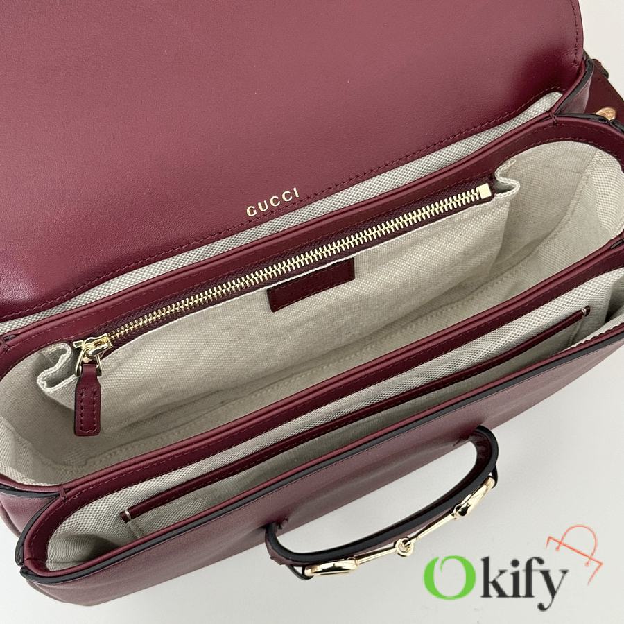 This small shoulder bag is crafted from new GG canvas, featuring a unique heat-embossed process that creates a beautiful pattern and a soft, refined feel. It's made of Gucci Rosso Ancora leather, adorned with a horsebit detail on the front and half-horsebit details on both sides. The interior includes three flaps, one zip pocket, and an adjustable leather shoulder strap. Dimensions: 25.9 x 17.5 x 9.9 cm