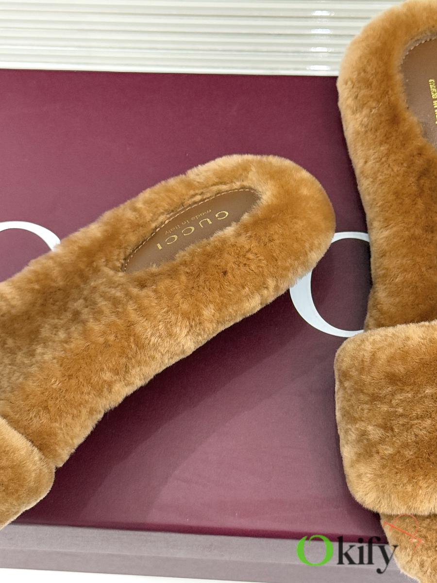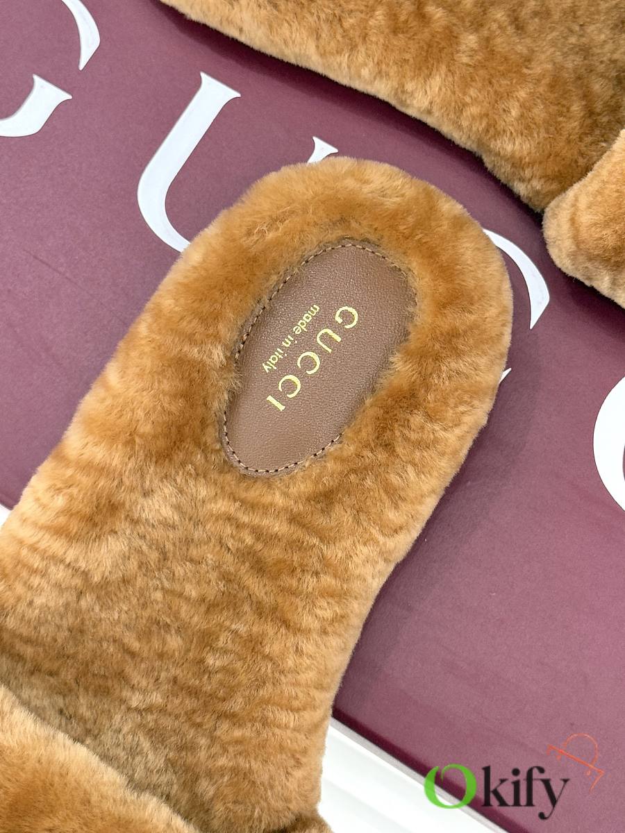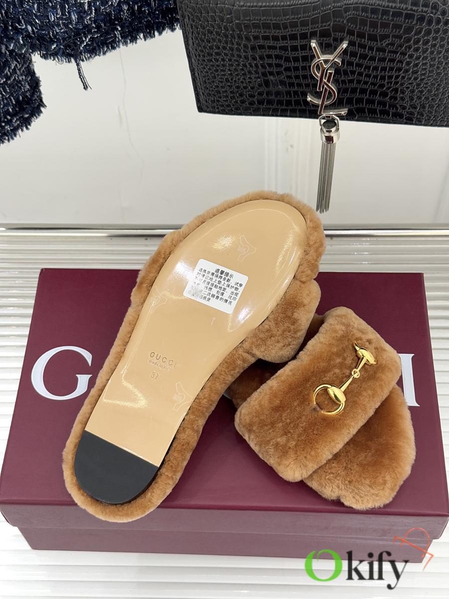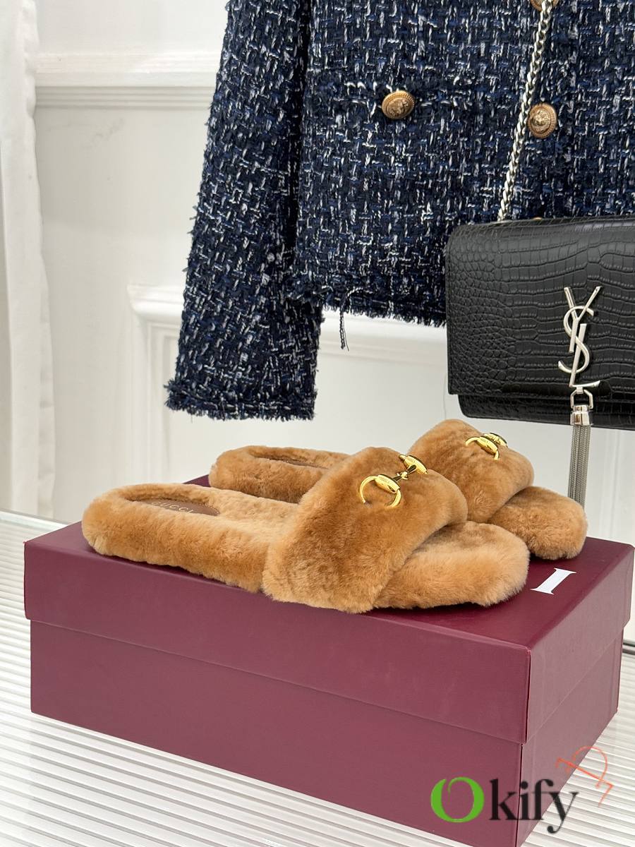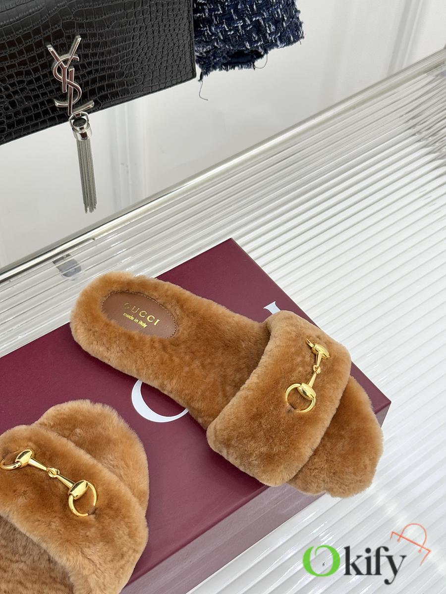 Okify Gucci Horsebit Women Wool Slippers Brown