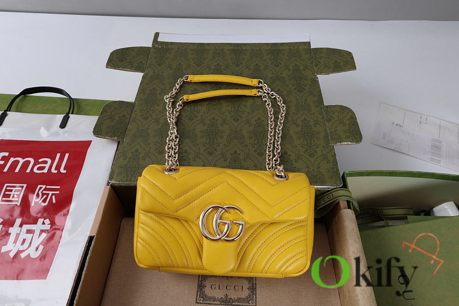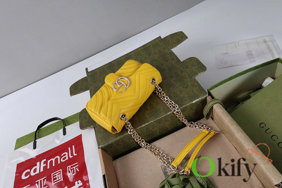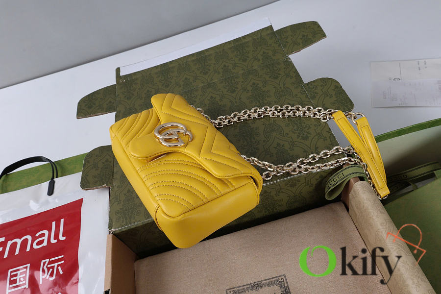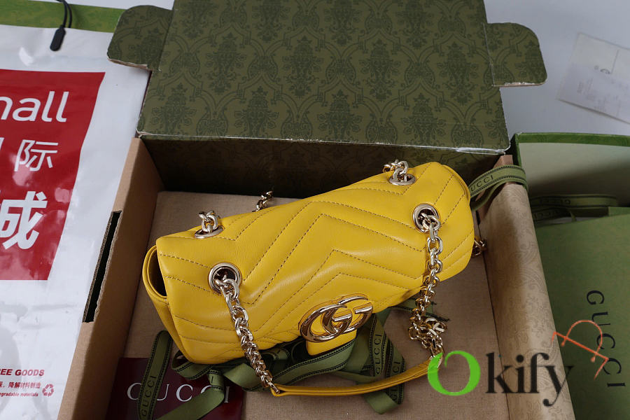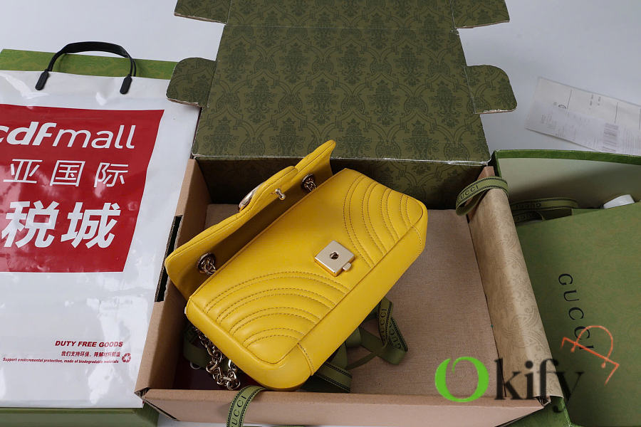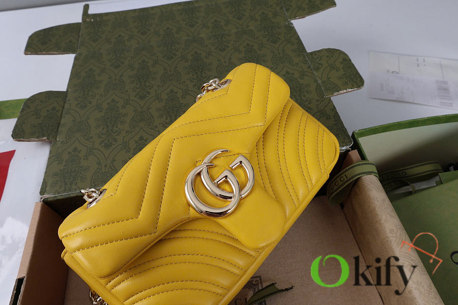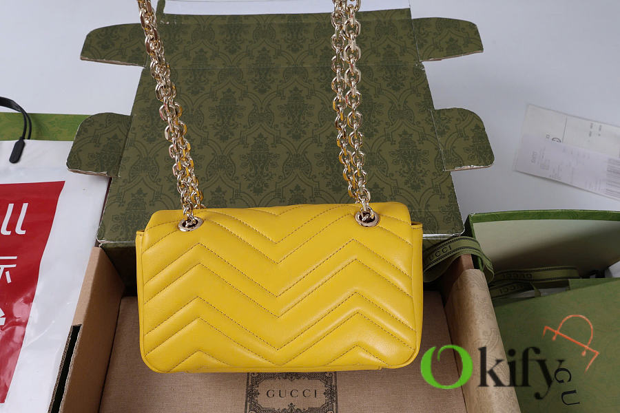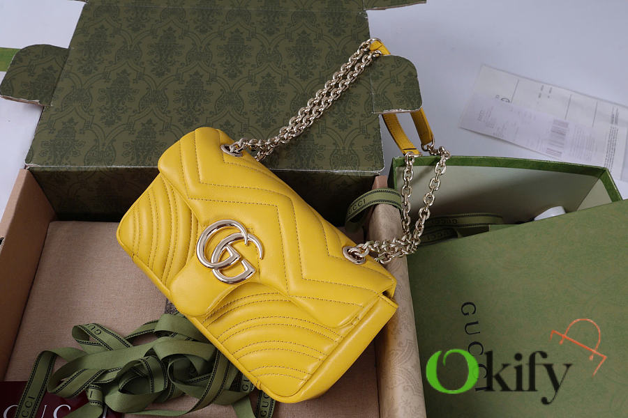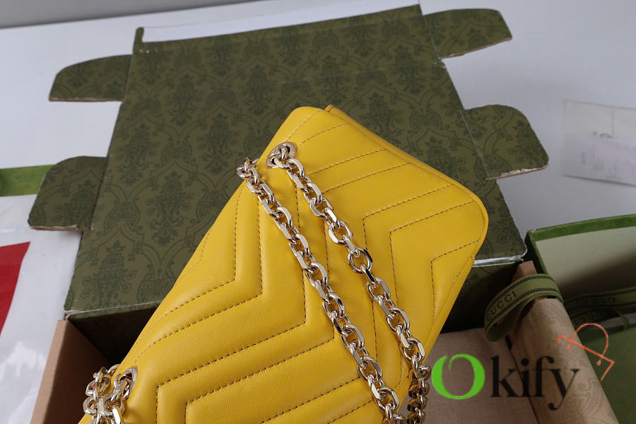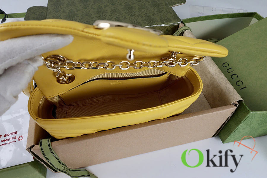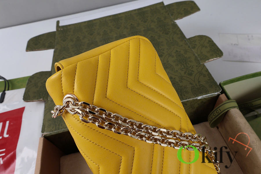 The Marmont series meticulously craftsmanship, incorporating stylish hardware and a faceted chain strap. The soft leather creates a gently sculpted shape. A clean, minimalist back pocket enhances the practicality of the medium and large sizes. Features white V-shaped Matelassé lambskin leather, light gold-toned hardware, and a dark gray viscose lining.