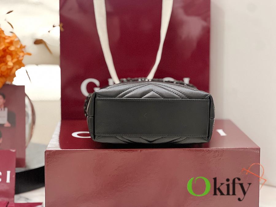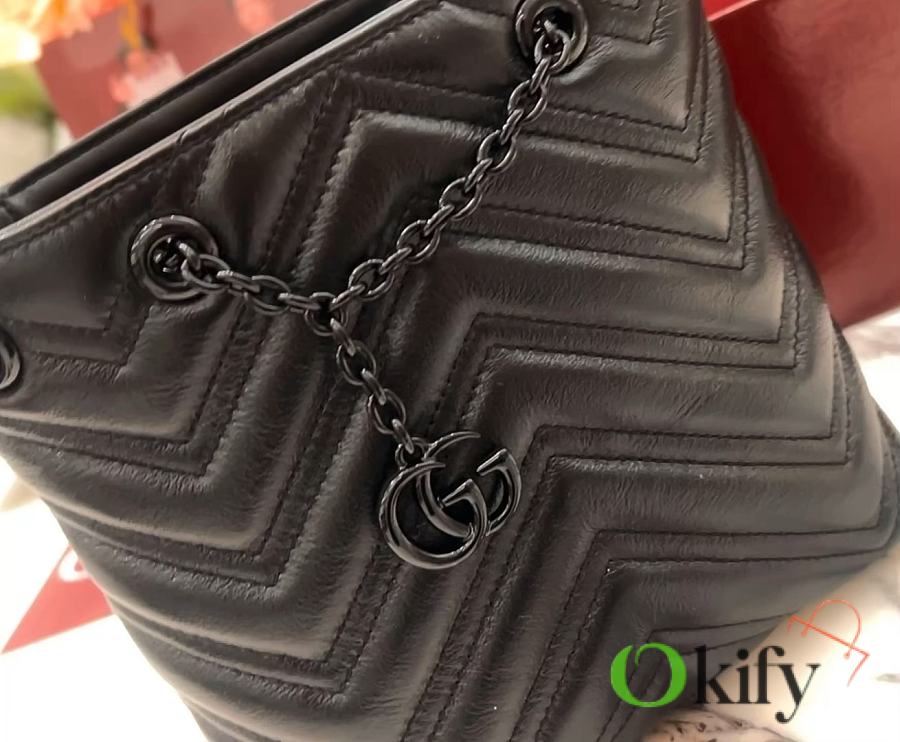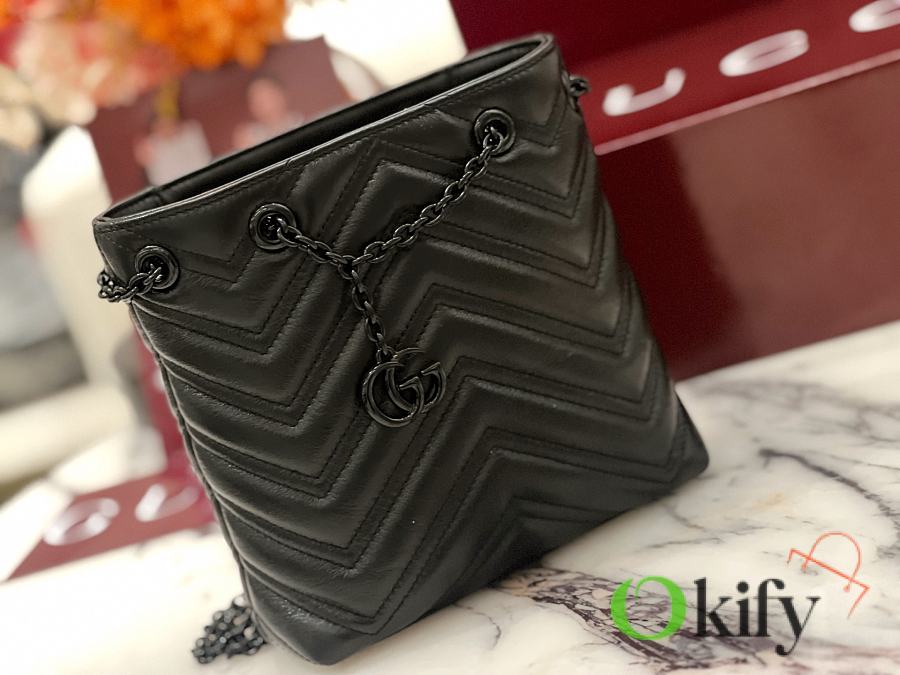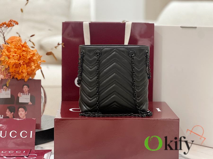 GG Marmont Slim Bucket Bag The brand's iconic GG Marmont collection features a slim bucket bag crafted from supple calfskin, achieving a distinctive silhouette. Double-G hardware paired with tonal enamel finishing completes the overall design. Model: 856404