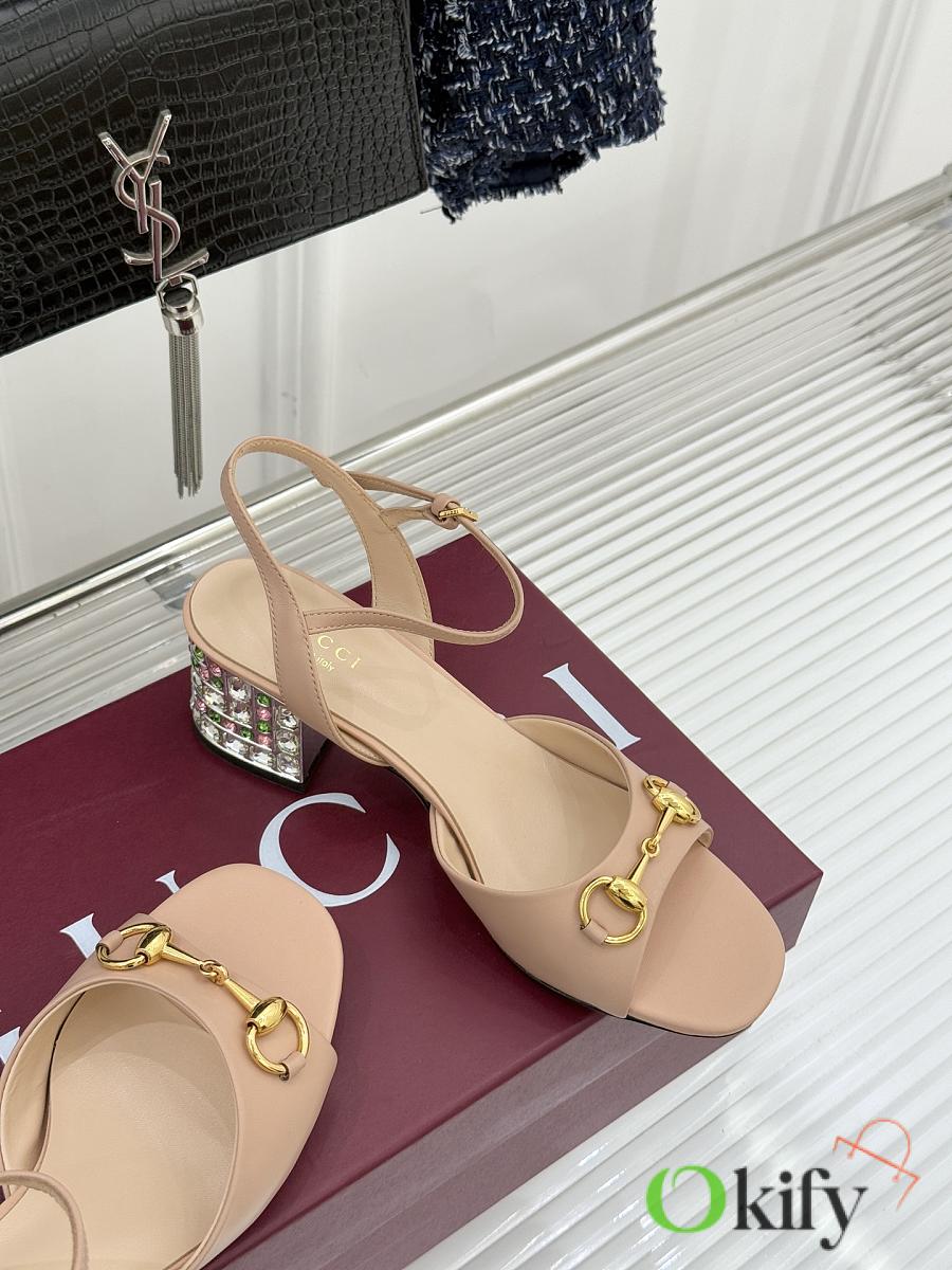 Gucci classic horsebit buckle rhinestone chunky heel sandals