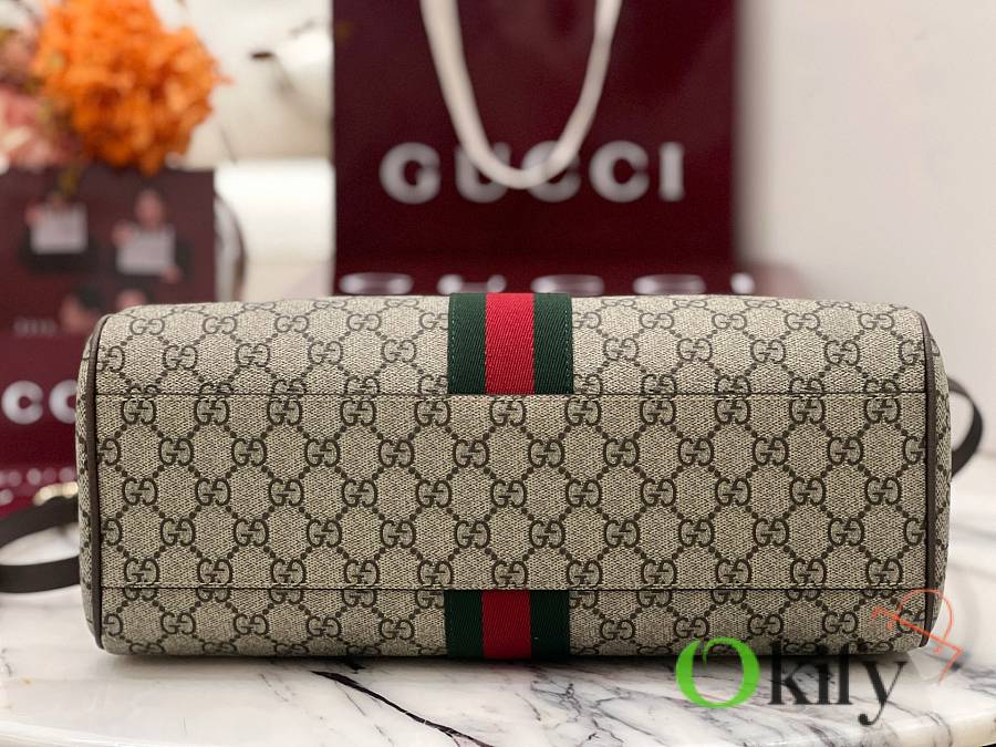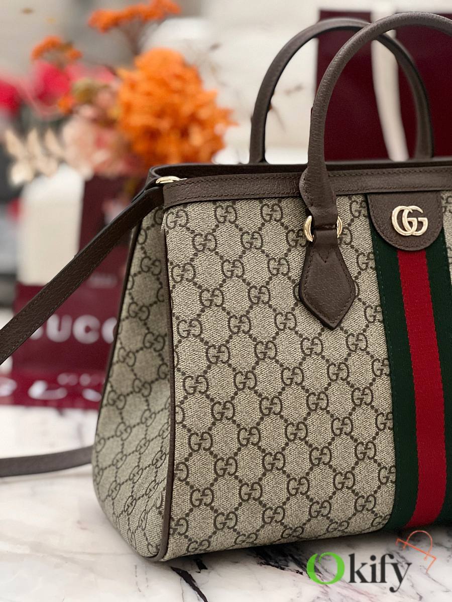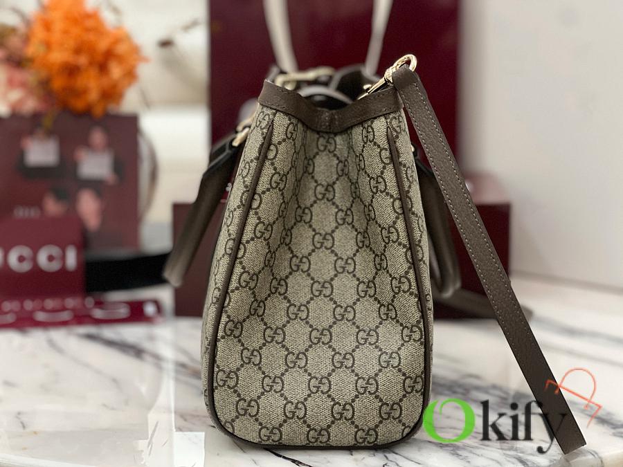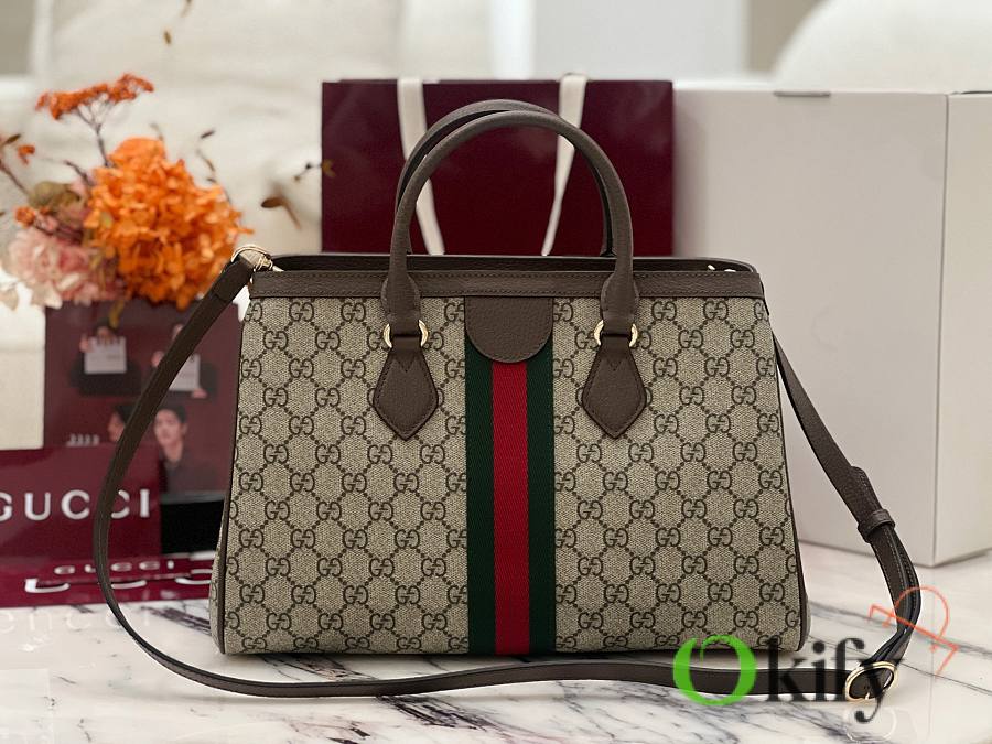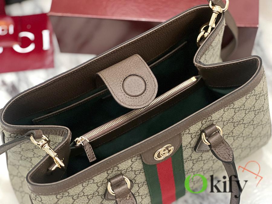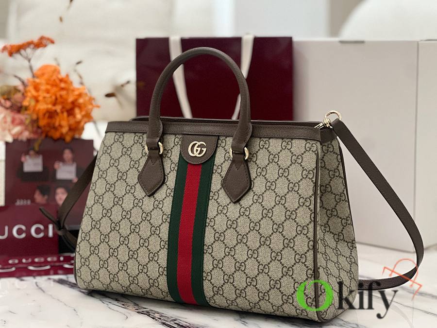 The Ophidia tote collection presents a striking new silhouette and functionality, crafted with signature beige and brown color schemes to create a refreshed shopping bag piece with a soft texture.