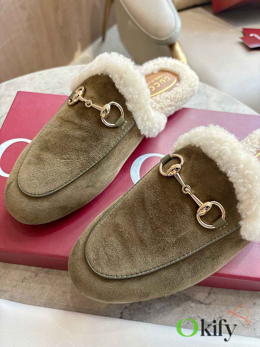 Okify Gucci Prince Town Dark Green Horsebit Mule Loafers
