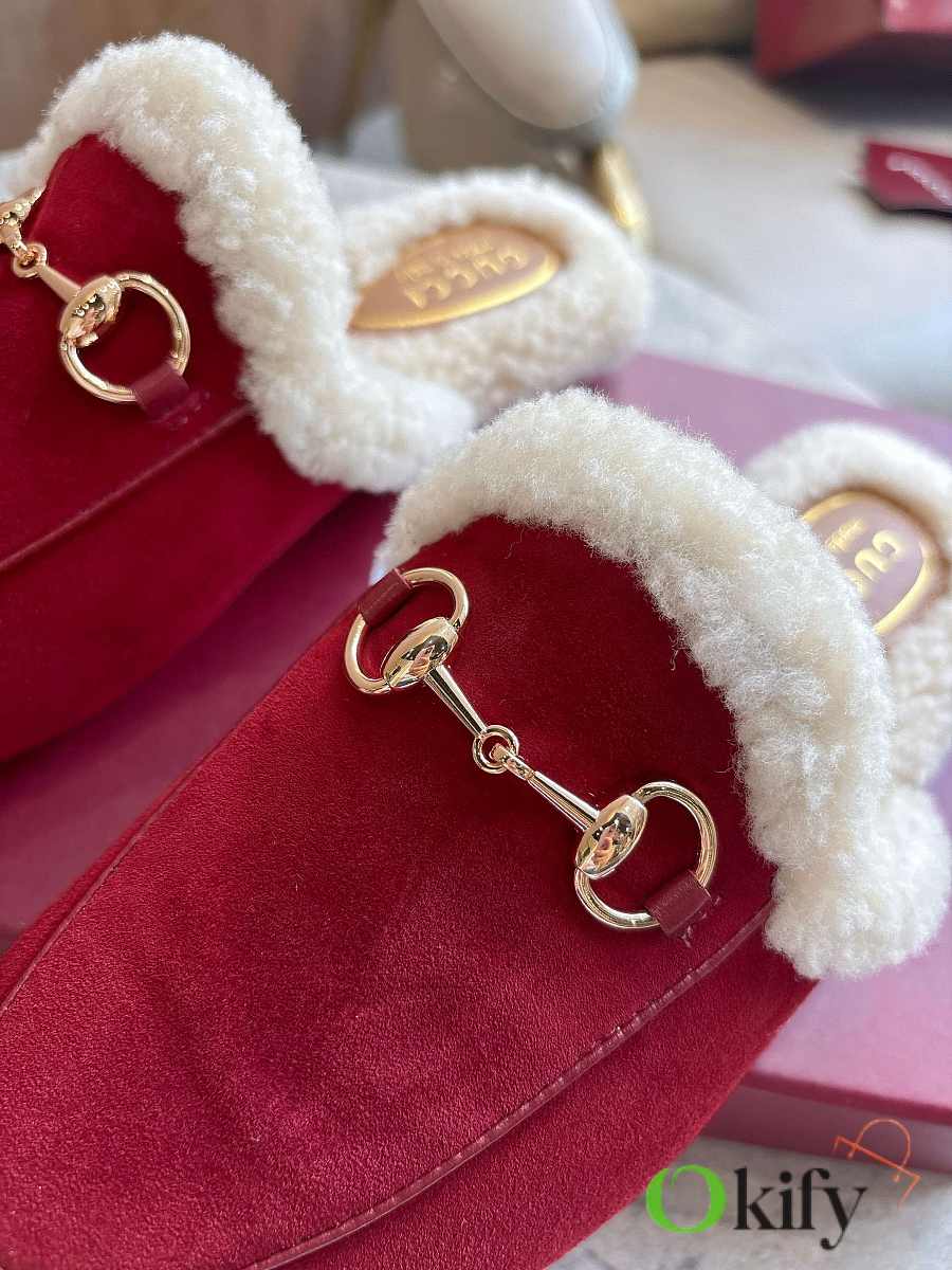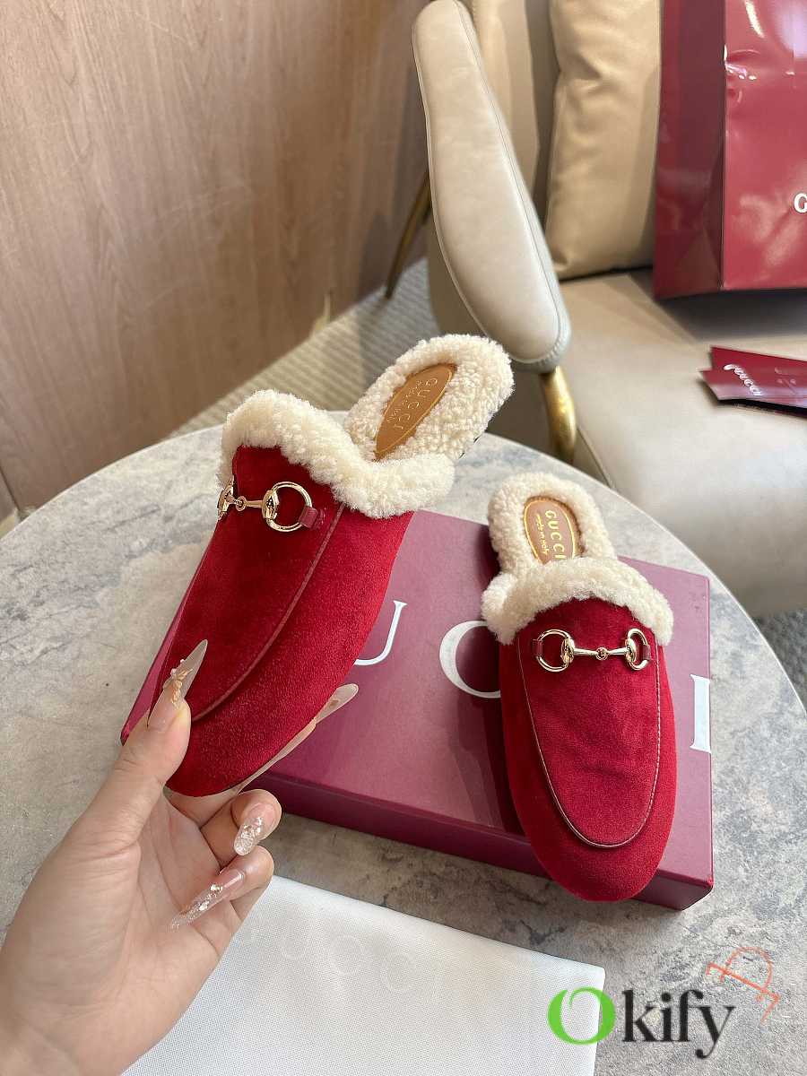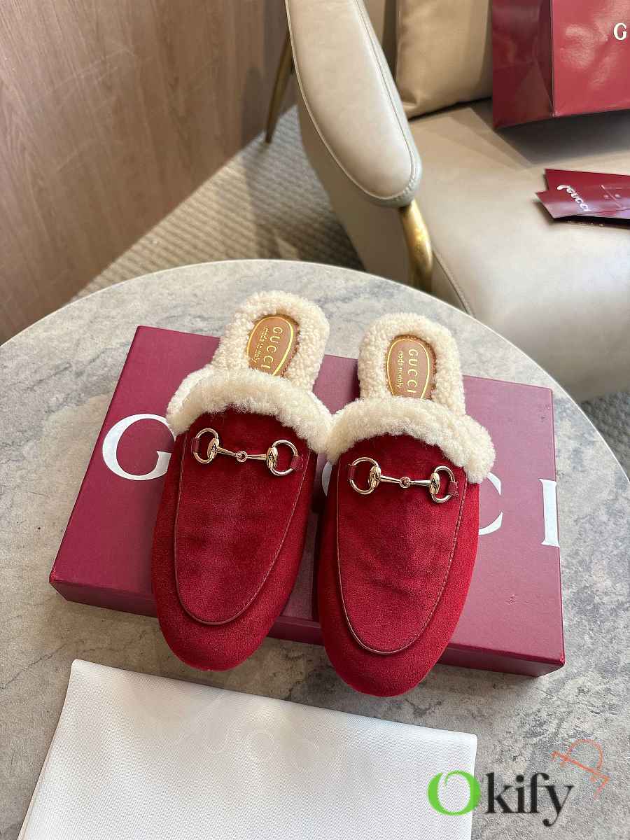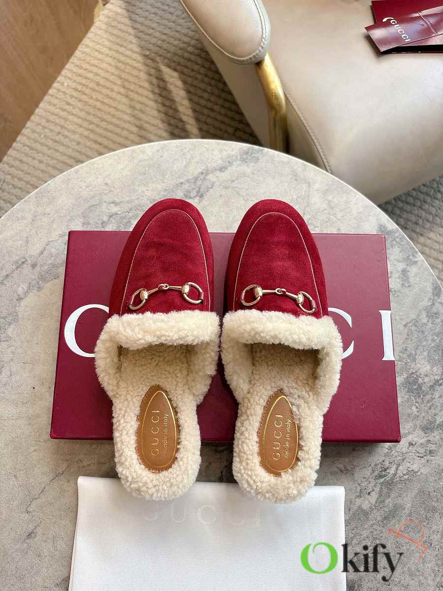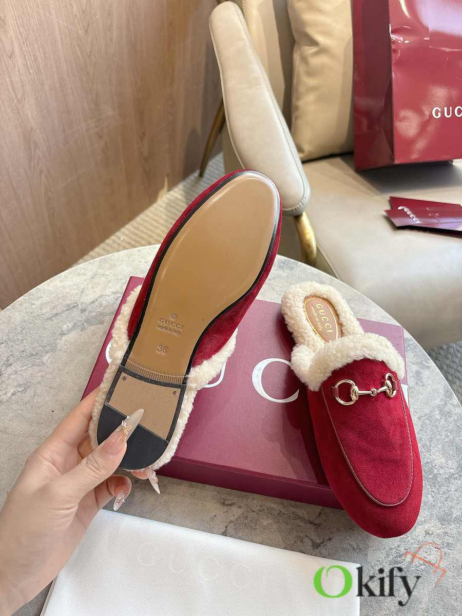 Gucci's iconic Princetown slipper is known for its elegant silhouette, refined materials, and classic horsebit. This model is defined by its smooth suede and merino wool lining.