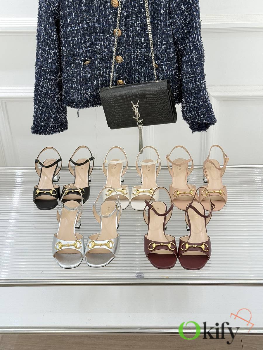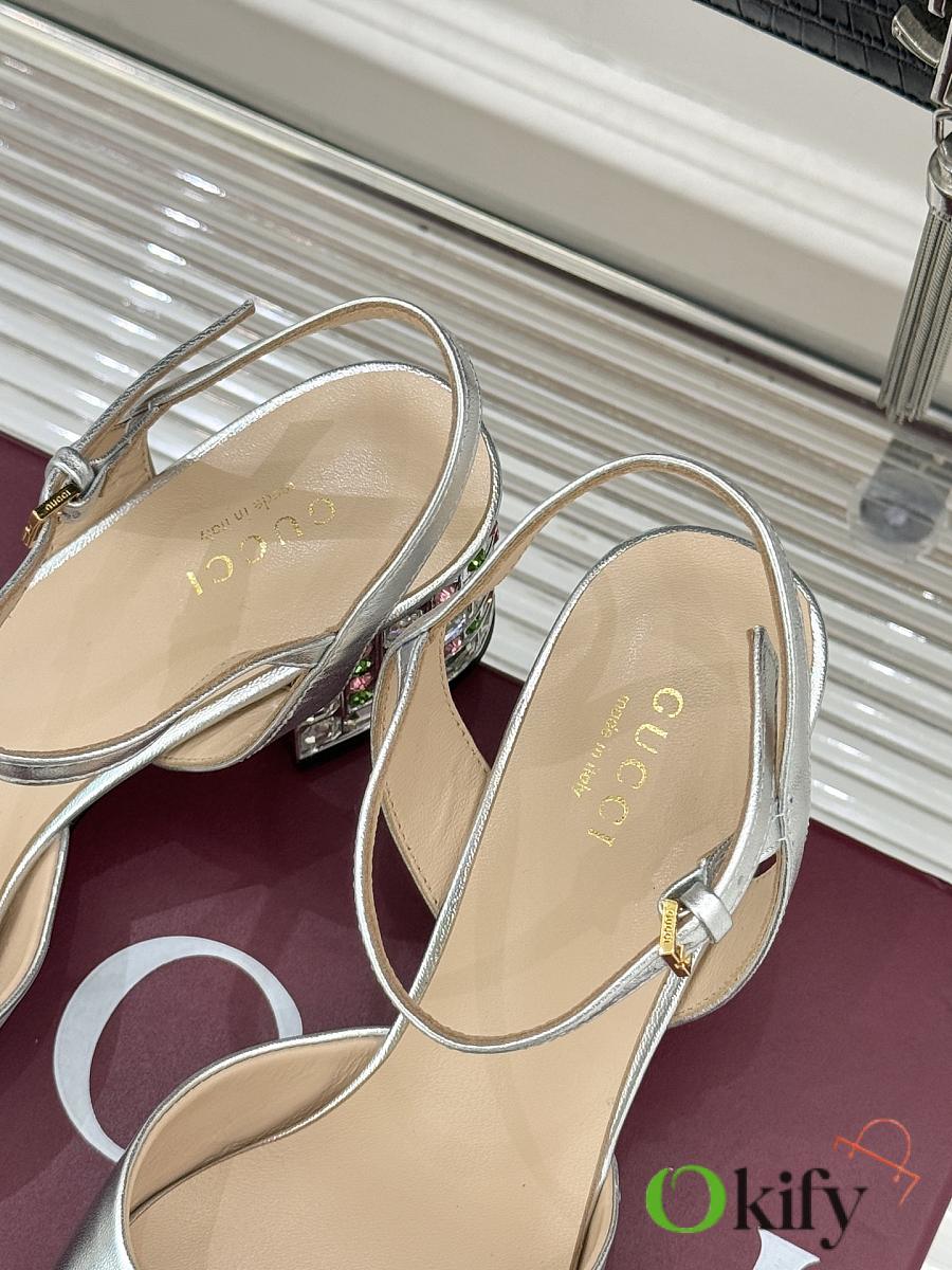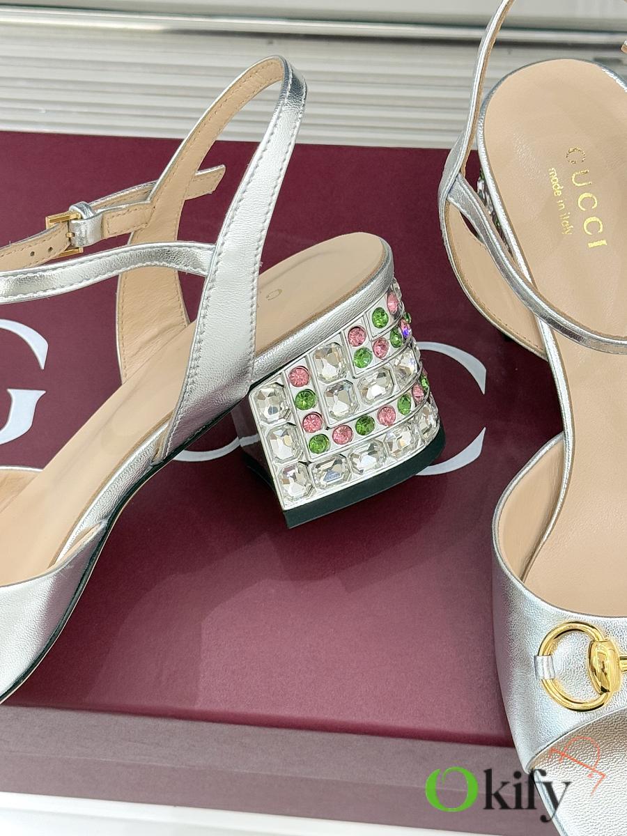 Okify Gucci Silver Horsbit Crystal Block Heel Sandals 5.5cm
