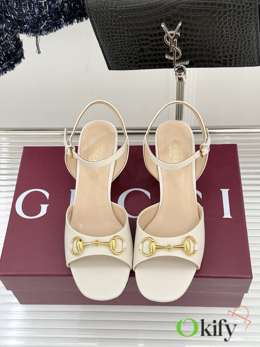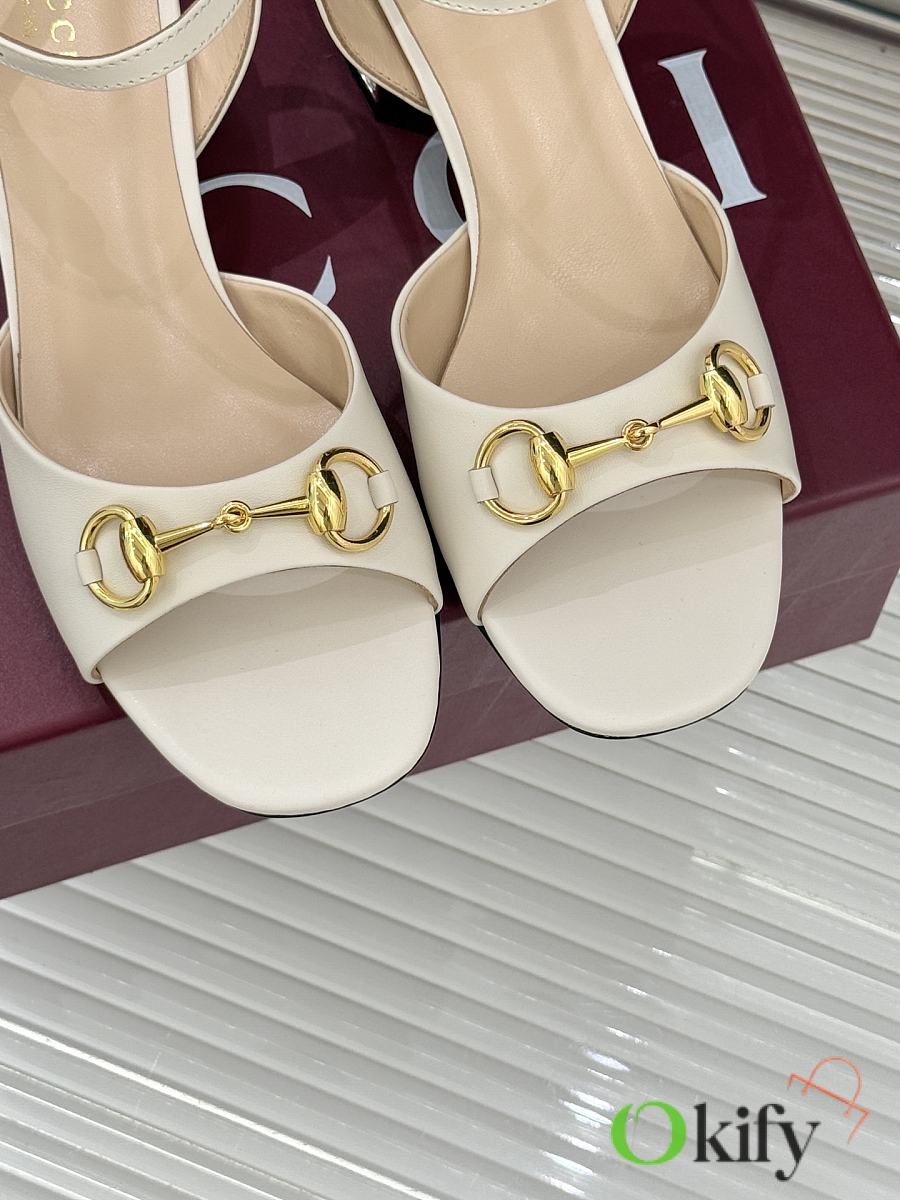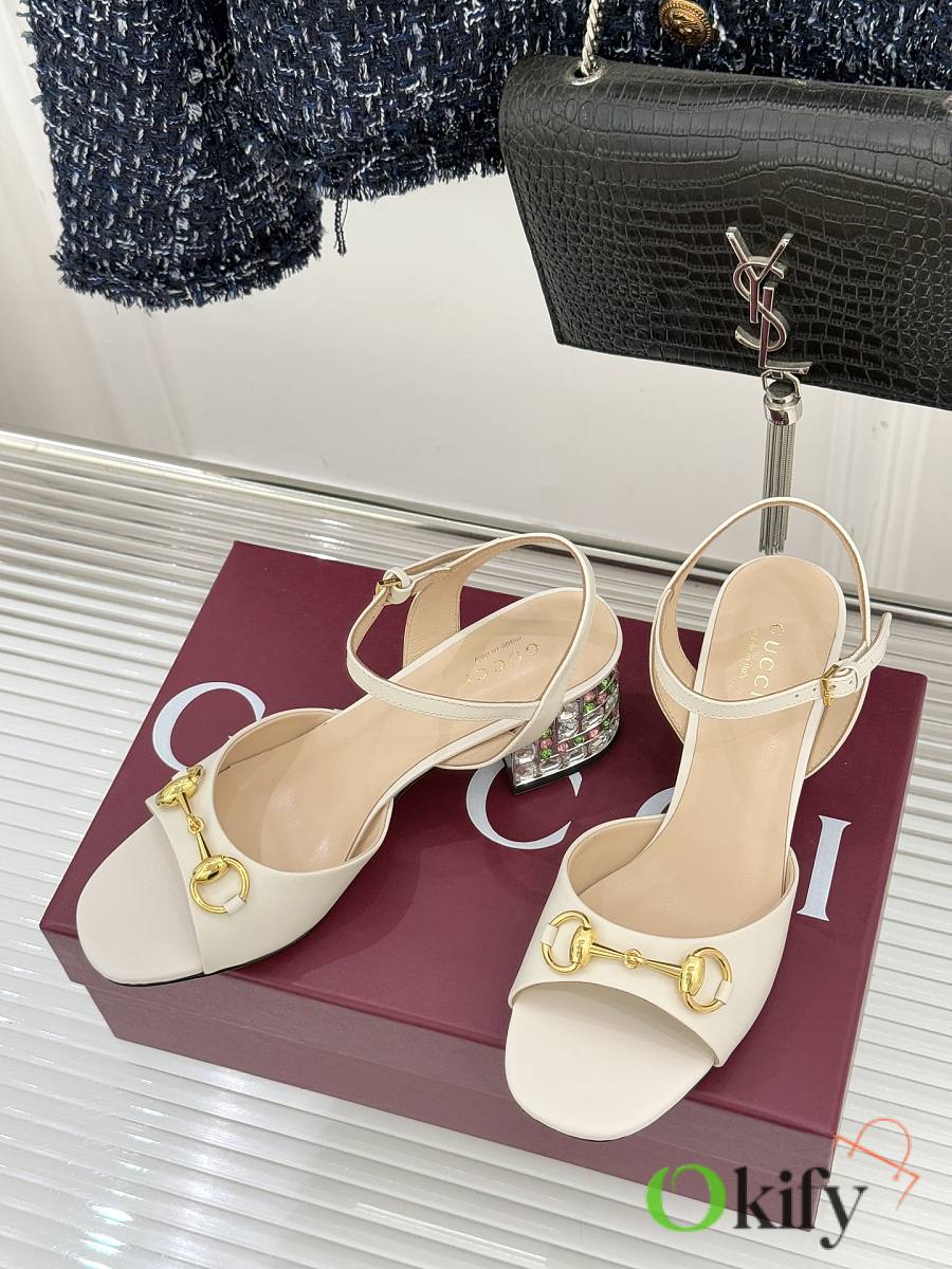 Okify Gucci White Horsbit Crystal Block Heel Sandals 5.5cm
