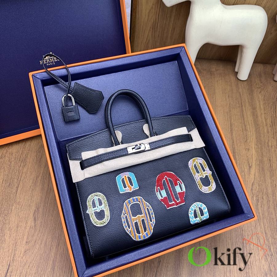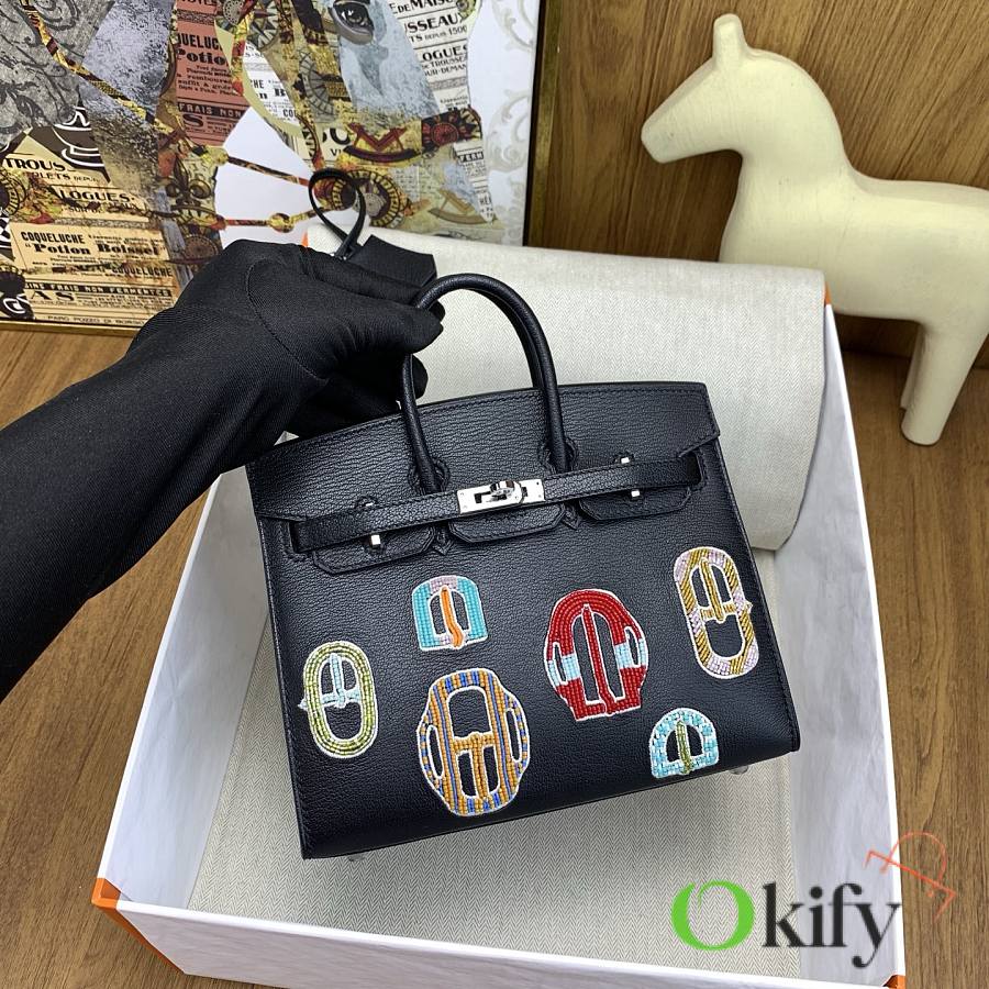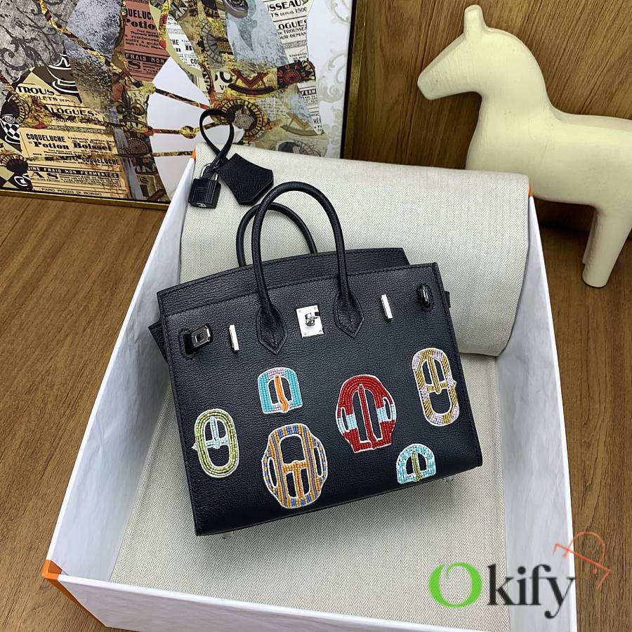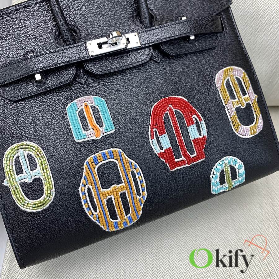 Okify Hermes Birkin 20 Bag Black Badge Beaded Embroidery 27100