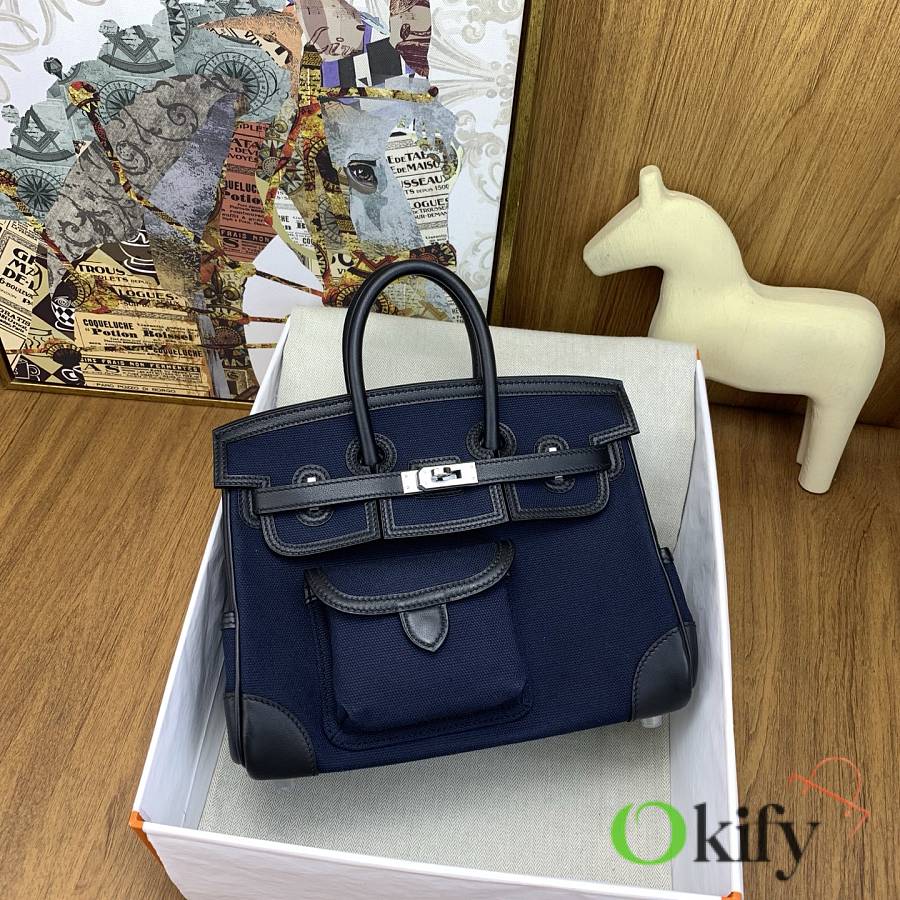 Okify Hermes Birkin Cargo Bag 25cm In Dark Blue And Black