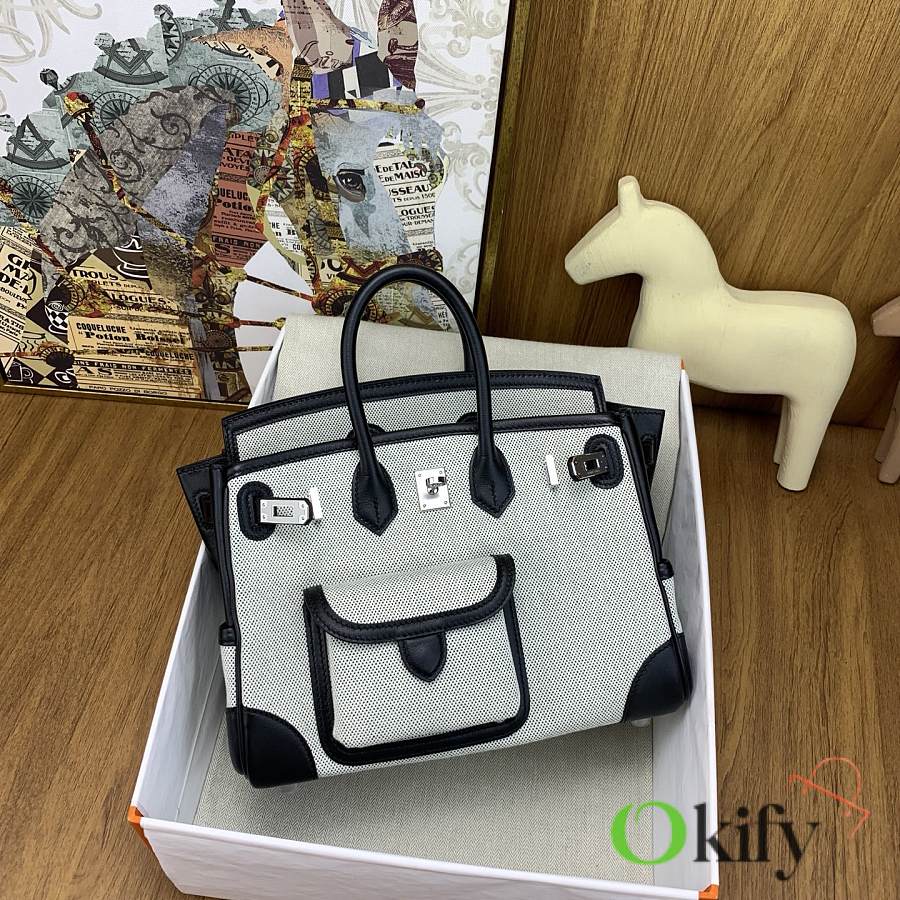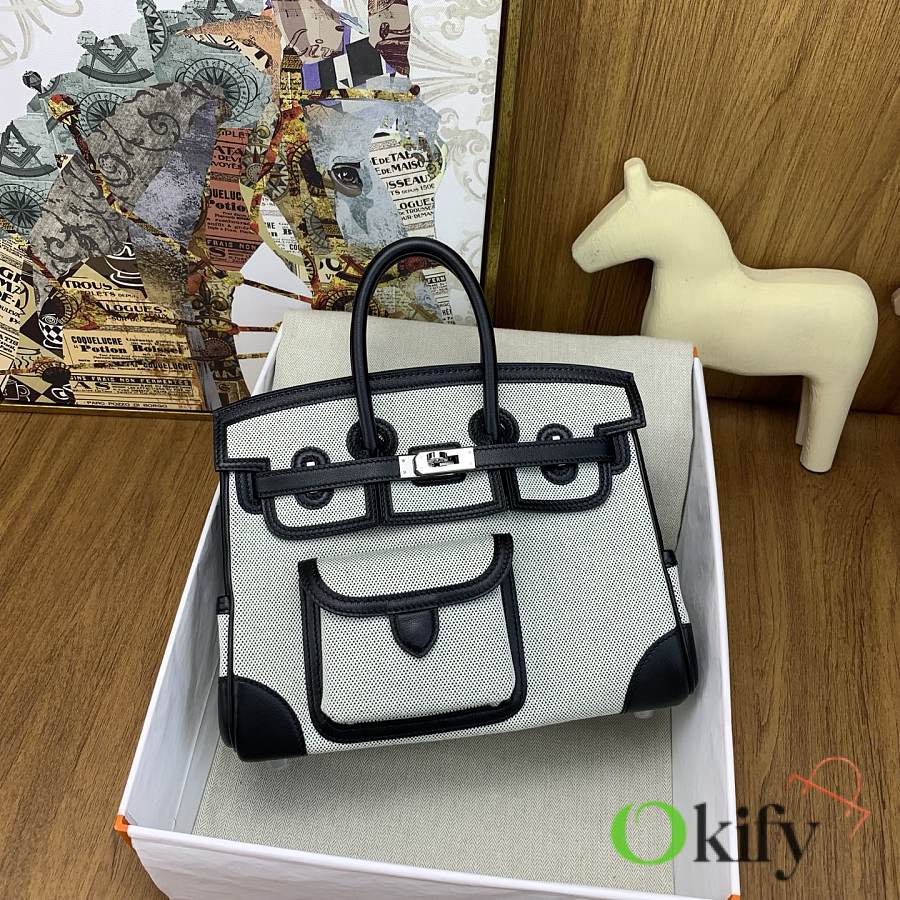 Birkin cargo bag 25cm mousse grey canvas with 4C bark silver buckle - Cargo25 The unique design with many pockets is full of workwear style - casual and relaxed, with a sense of laziness - one of the series that advanced players love - the complex design makes it both beautiful and practical - the appearance is simply amazing - the absolute first choice in the bag cabinet