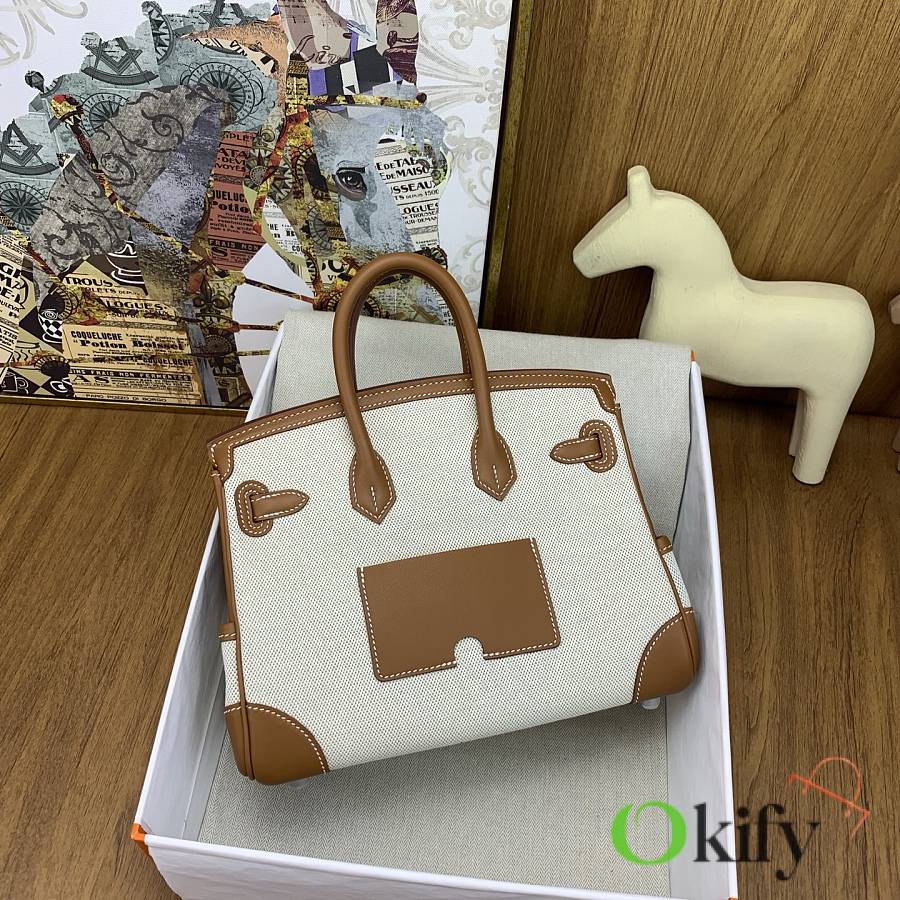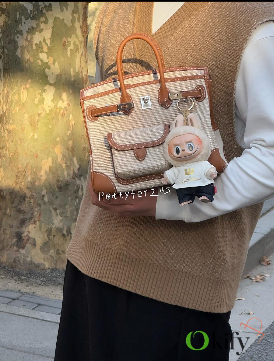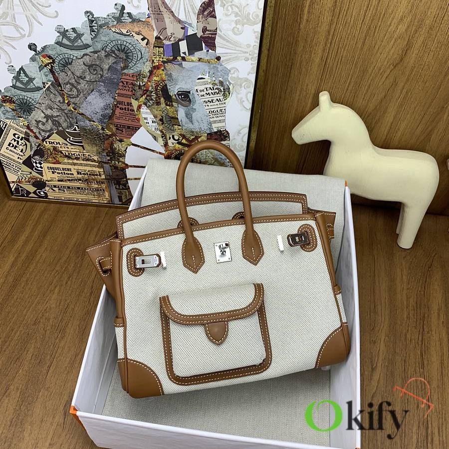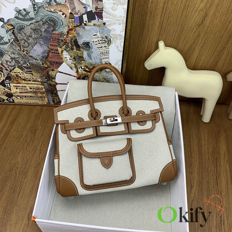 Birkin cargo bag 25cm mousse grey canvas with 4C bark silver buckle - Cargo25 The unique design with many pockets is full of workwear style - casual and relaxed, with a sense of laziness - one of the series that advanced players love - the complex design makes it both beautiful and practical - the appearance is simply amazing - the absolute first choice in the bag cabinet