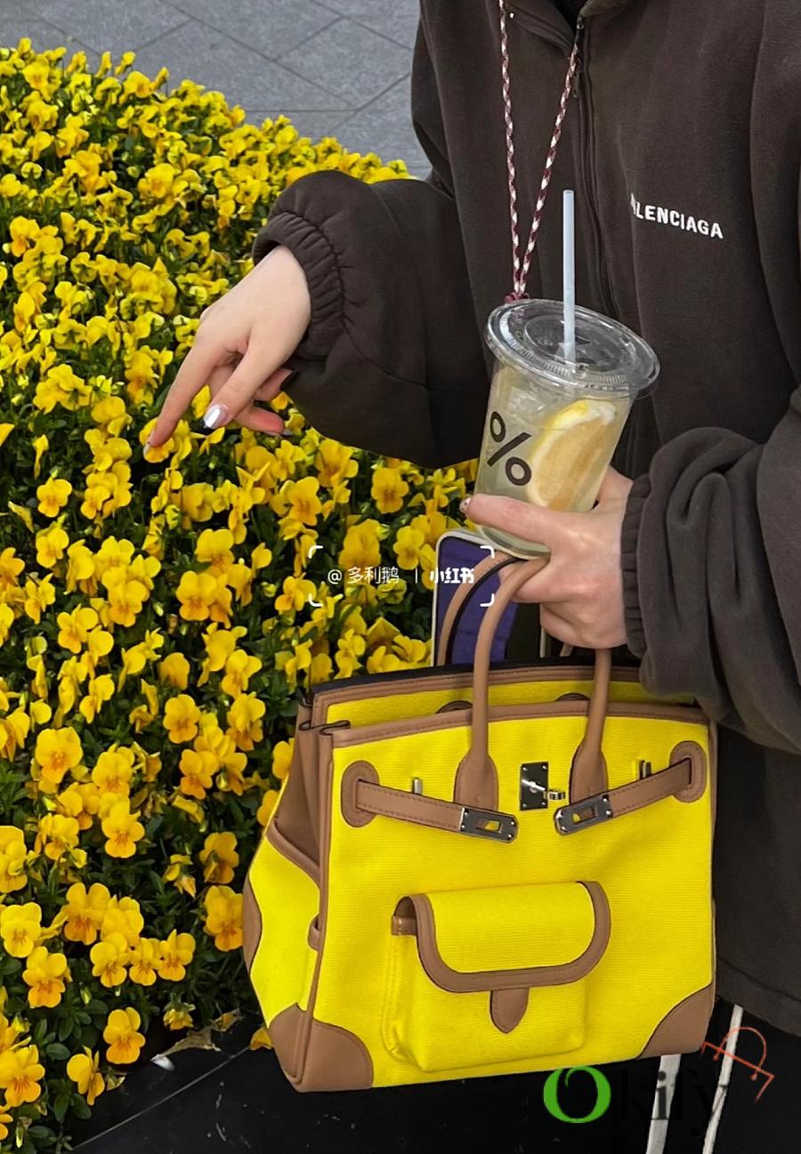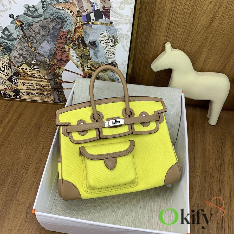 Okify Hermes Birkin Cargo Bag 25cm In Yellow And Brown