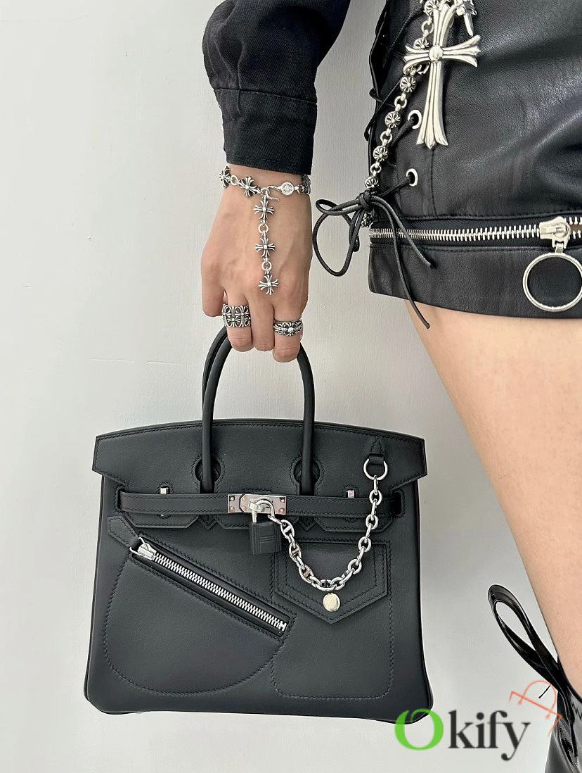 The coolest Birkin Rock I've ever seen. I won't let you fashion-conscious people miss this elegant and rebellious Birkin Rock bag. As its name suggests, it might be the most rebellious Birkin you've ever seen. The stylish design, inspired by motorcycle jackets, relocates the storage pockets that were once hidden inside the bag to the outside. The chain clasp adds a touch of casual flair. This bag is not only stylish but also incredibly practical.
