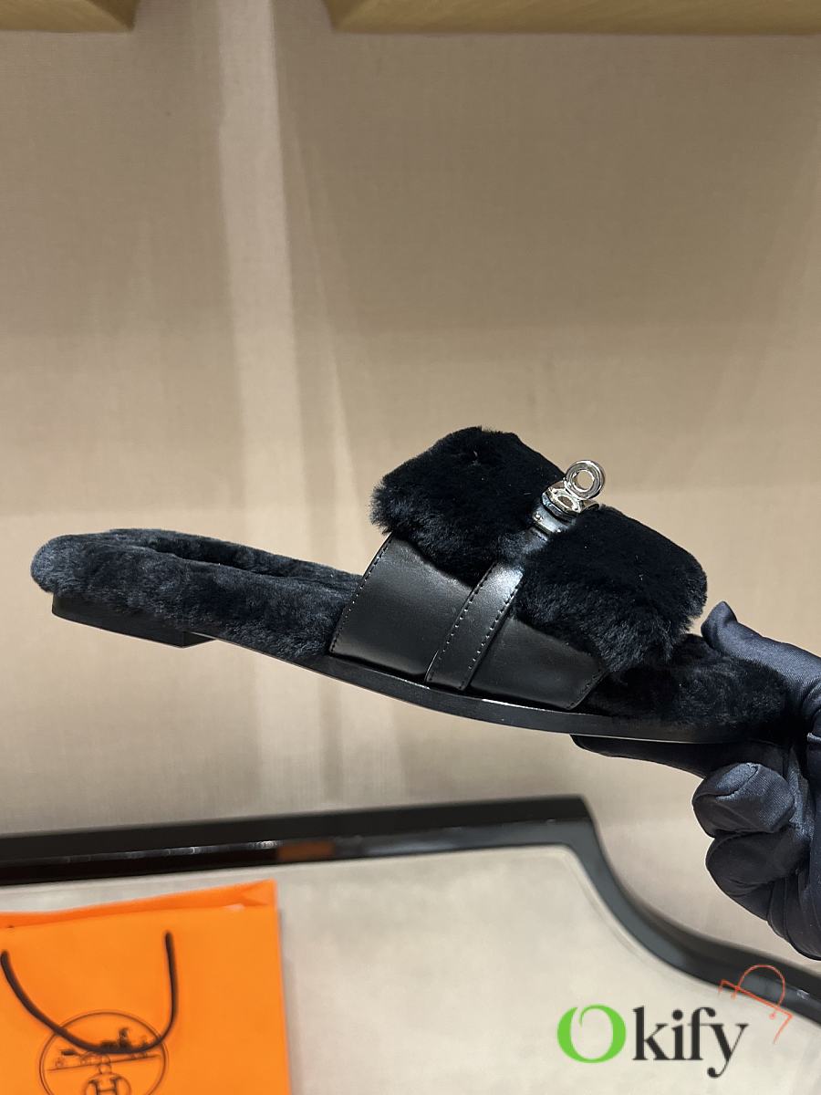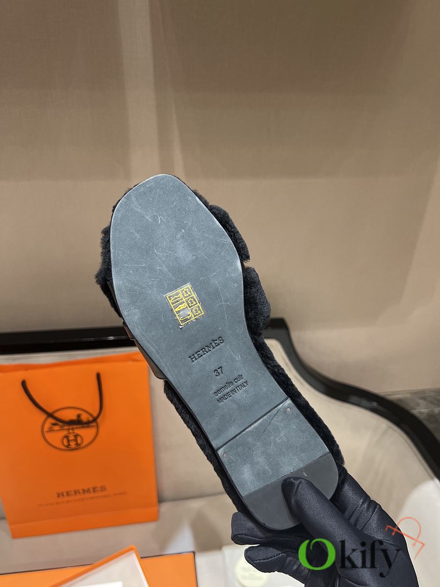 Okify MiuMiu Thick Heel Flip Flops Sandals in black EU34-41