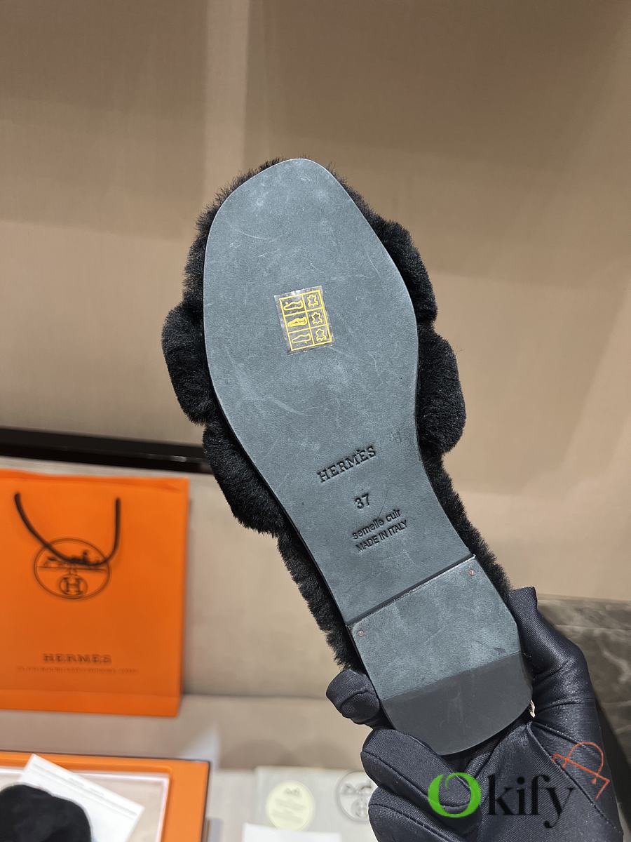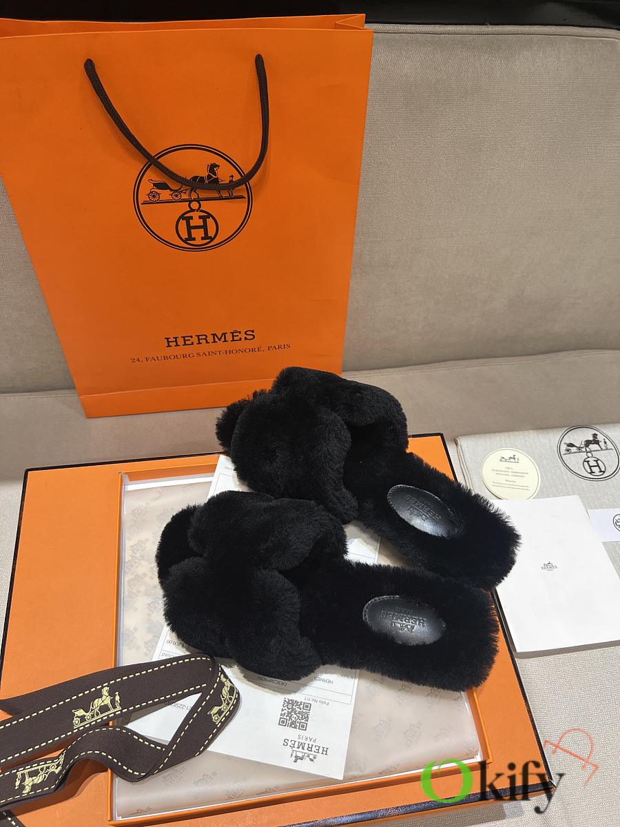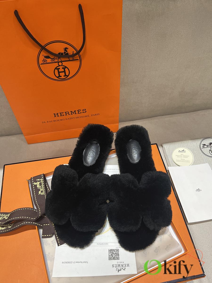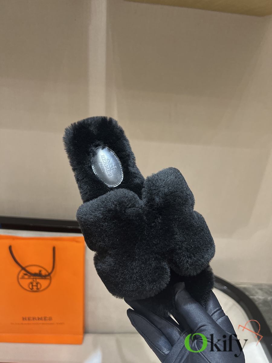 Okify Hermes Black Wool Slides 26537