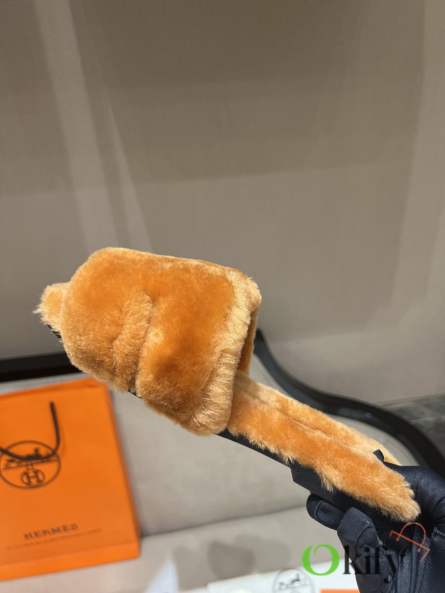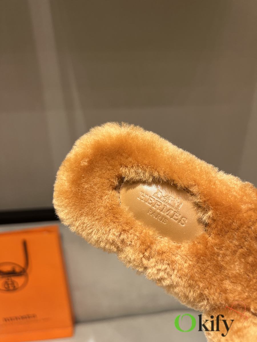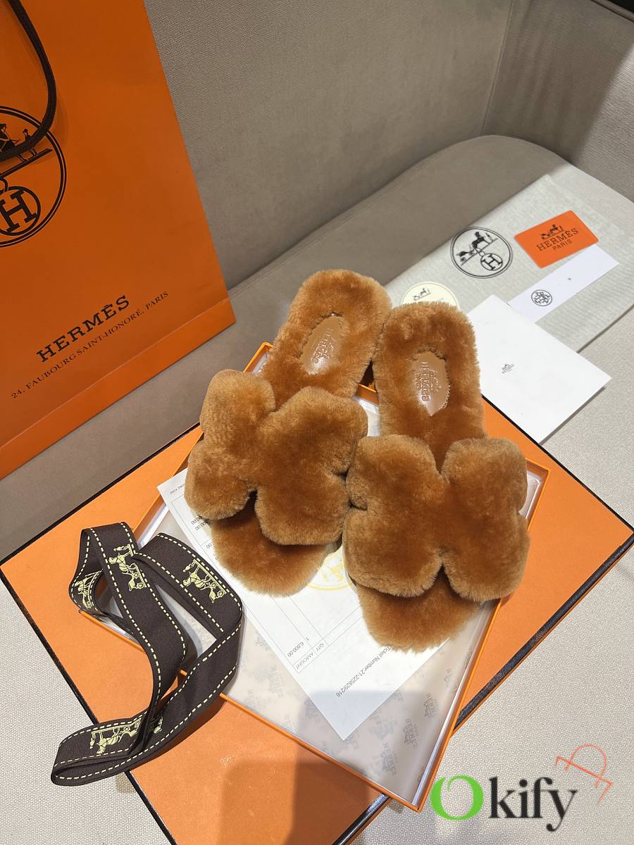 Okify Hermes Brown Wool Slides 26538