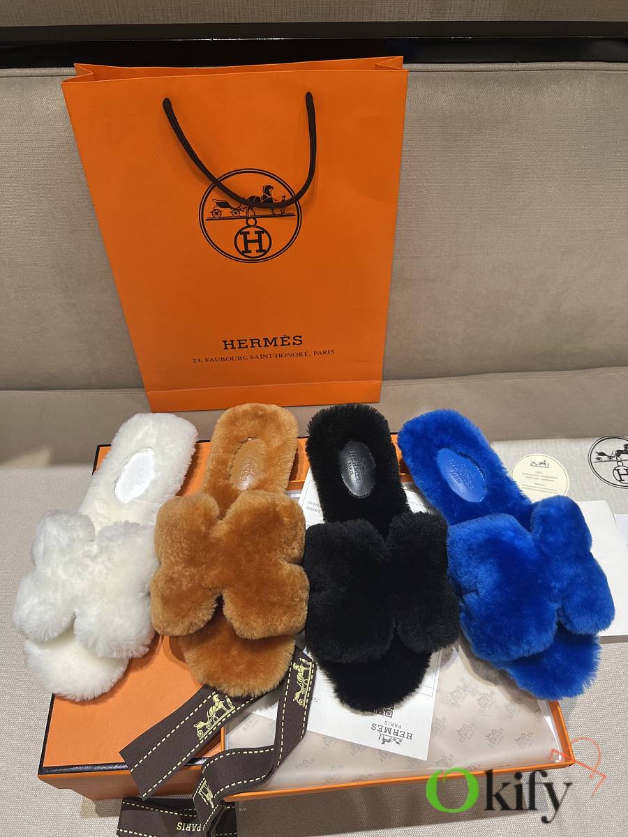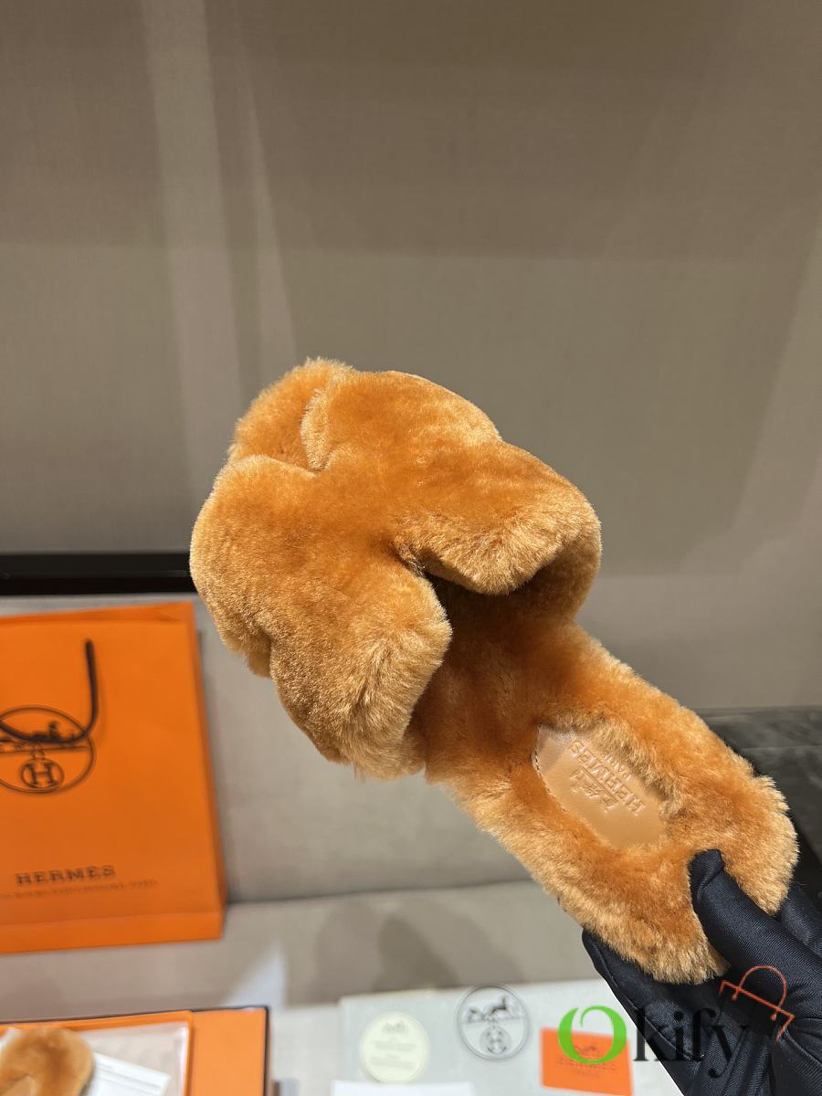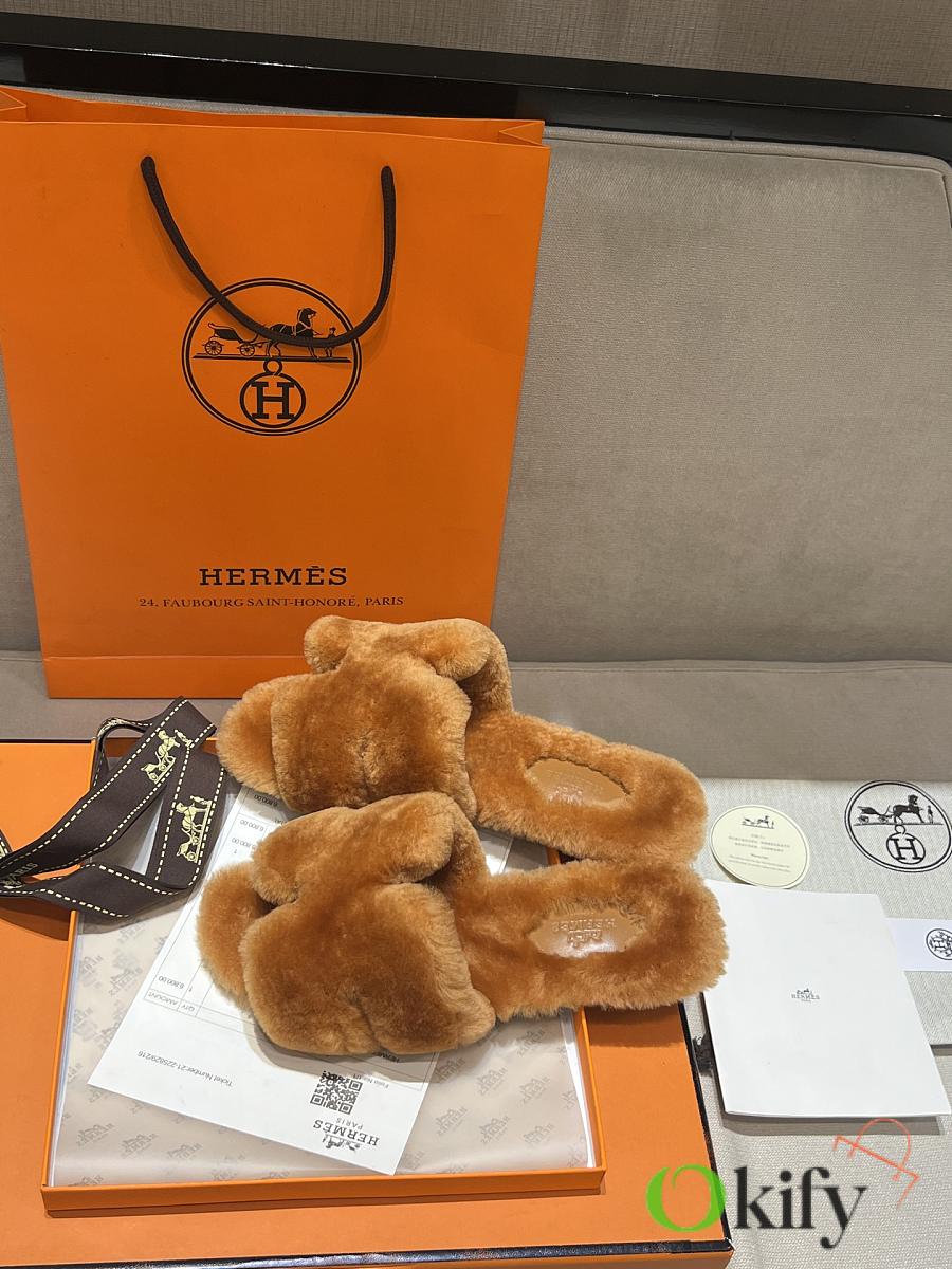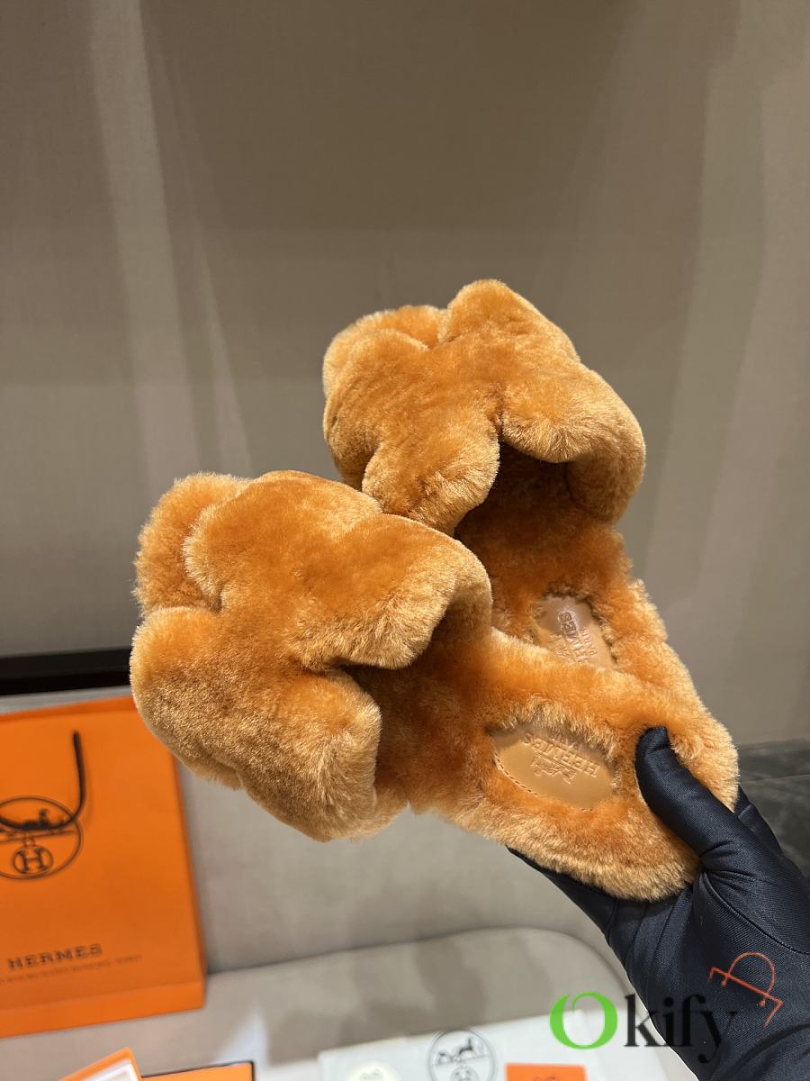 Okify Hermes Brown Wool Slides 26538