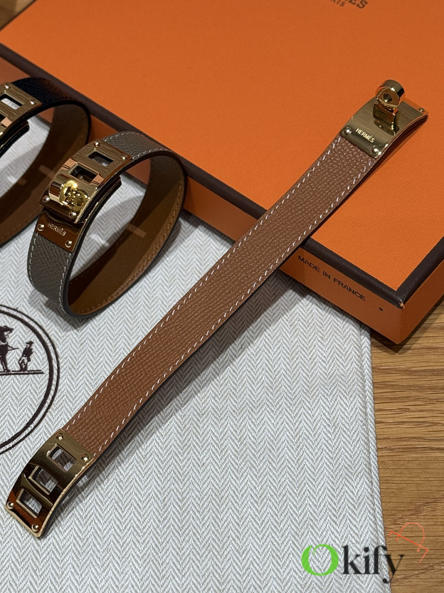 Okify Hermes Collier de Chien Barenia Brown Bracelet