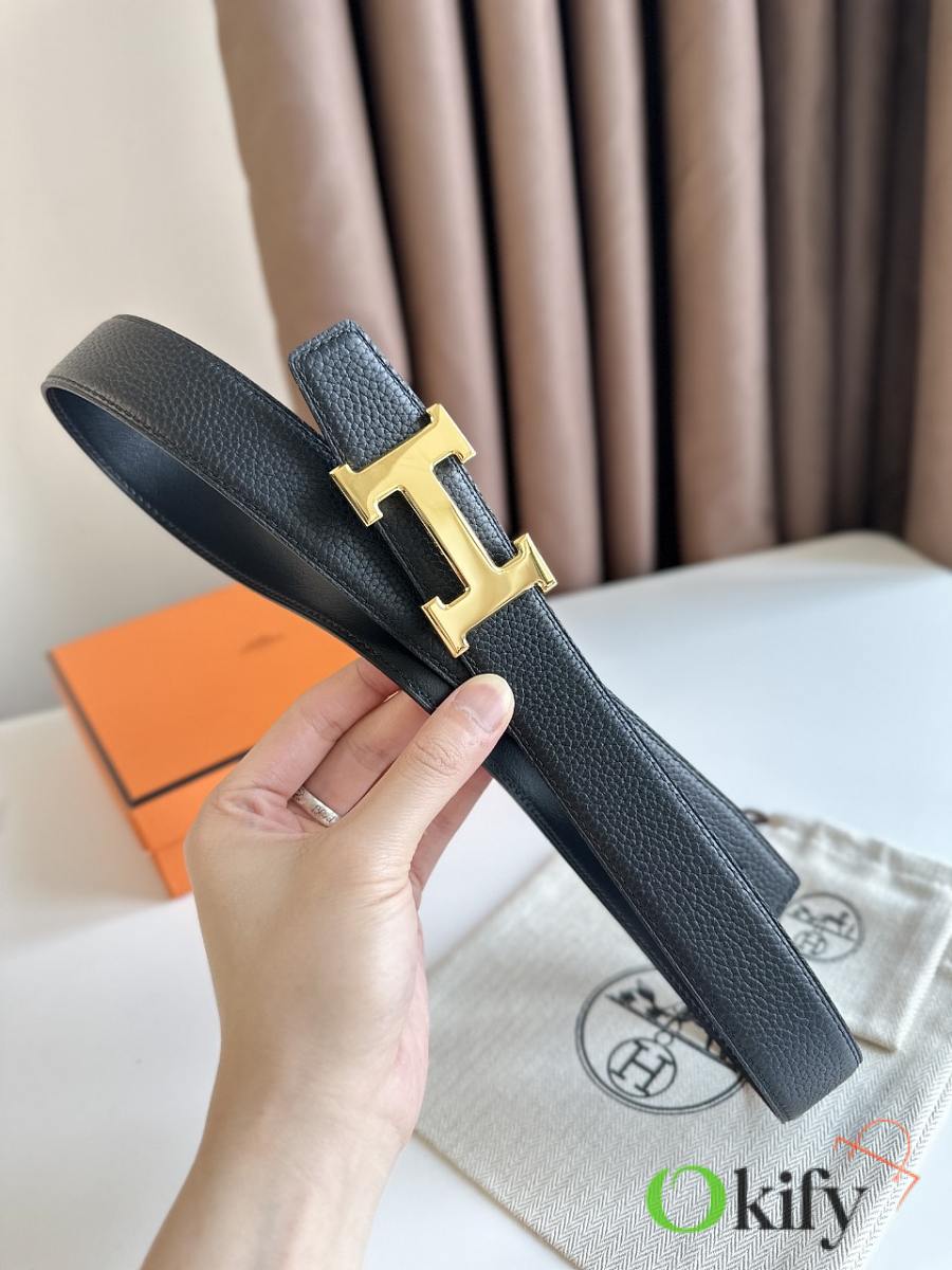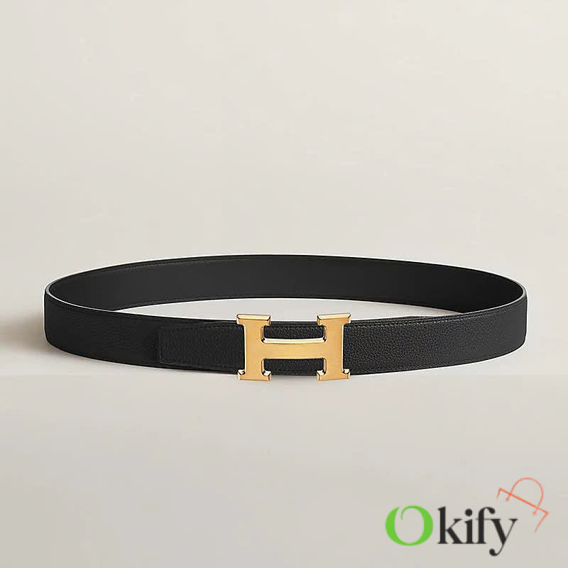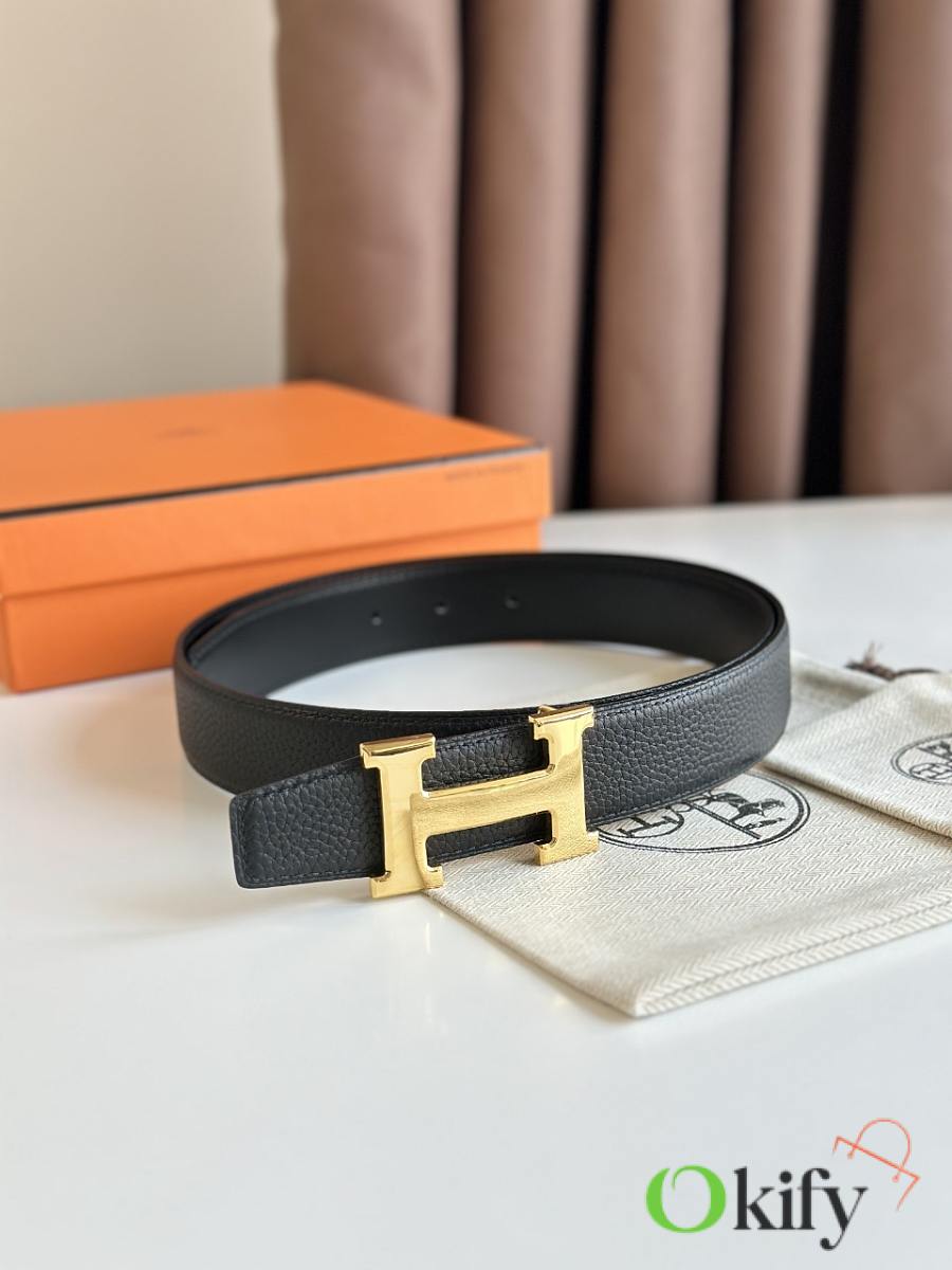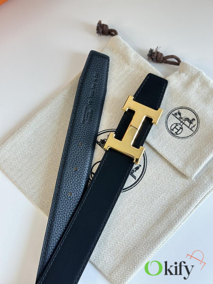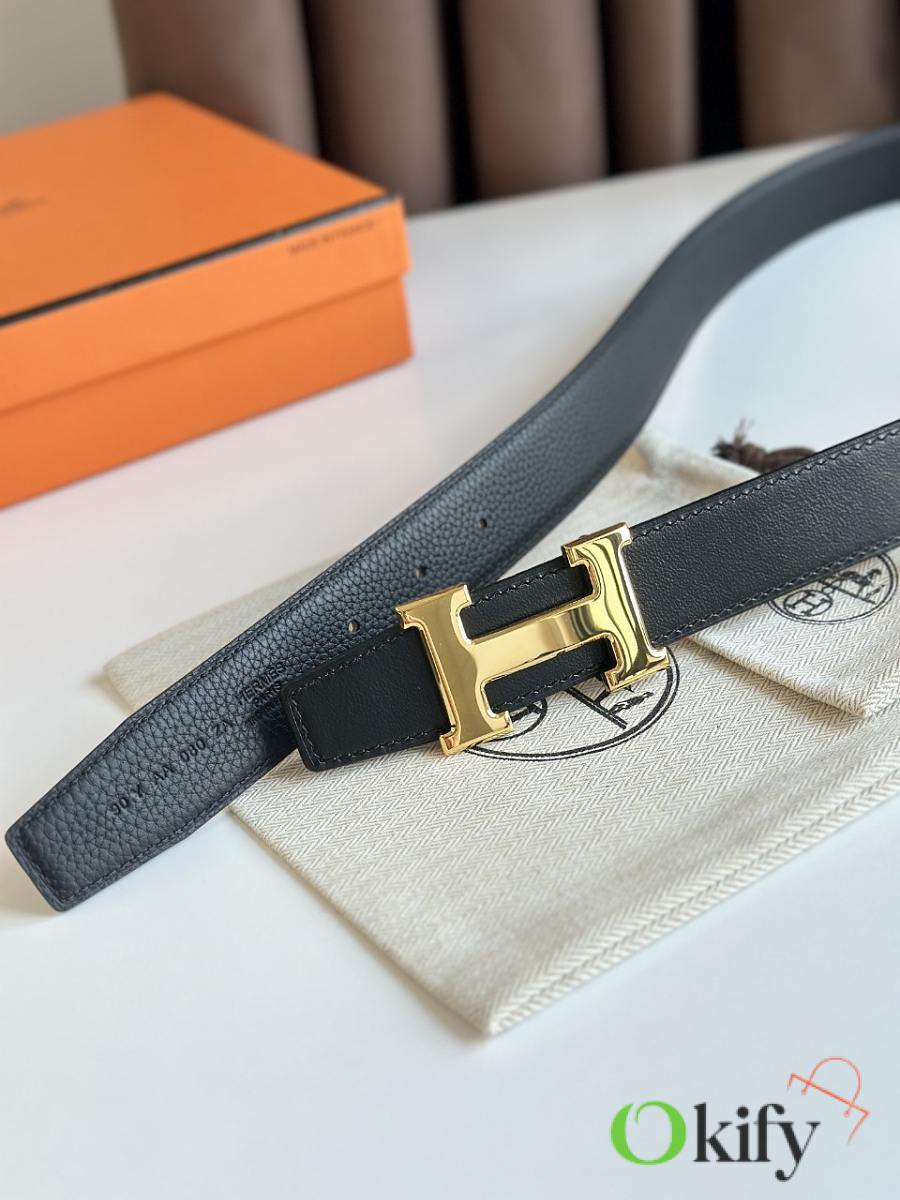 Okify Hermes Gold H Buckle Reversible Belt In Black 3,2cm