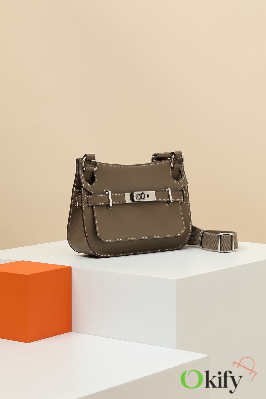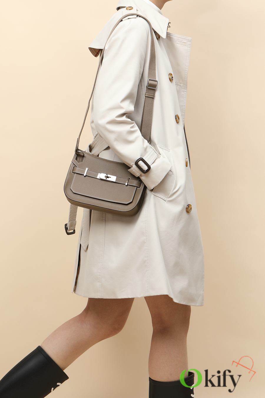 Model: JPS23 Code: JPS2303480 Color: Jujube brown Dimensions: 23 cm (L) x 17 cm (D) x 5 cm SWIFT calfskin and canvas shoulder bag There is a compartment inside the handbag Equipped with adjustable Wooly canvas shoulder strap You can wear it on one shoulder, under the arm, or diagonally.