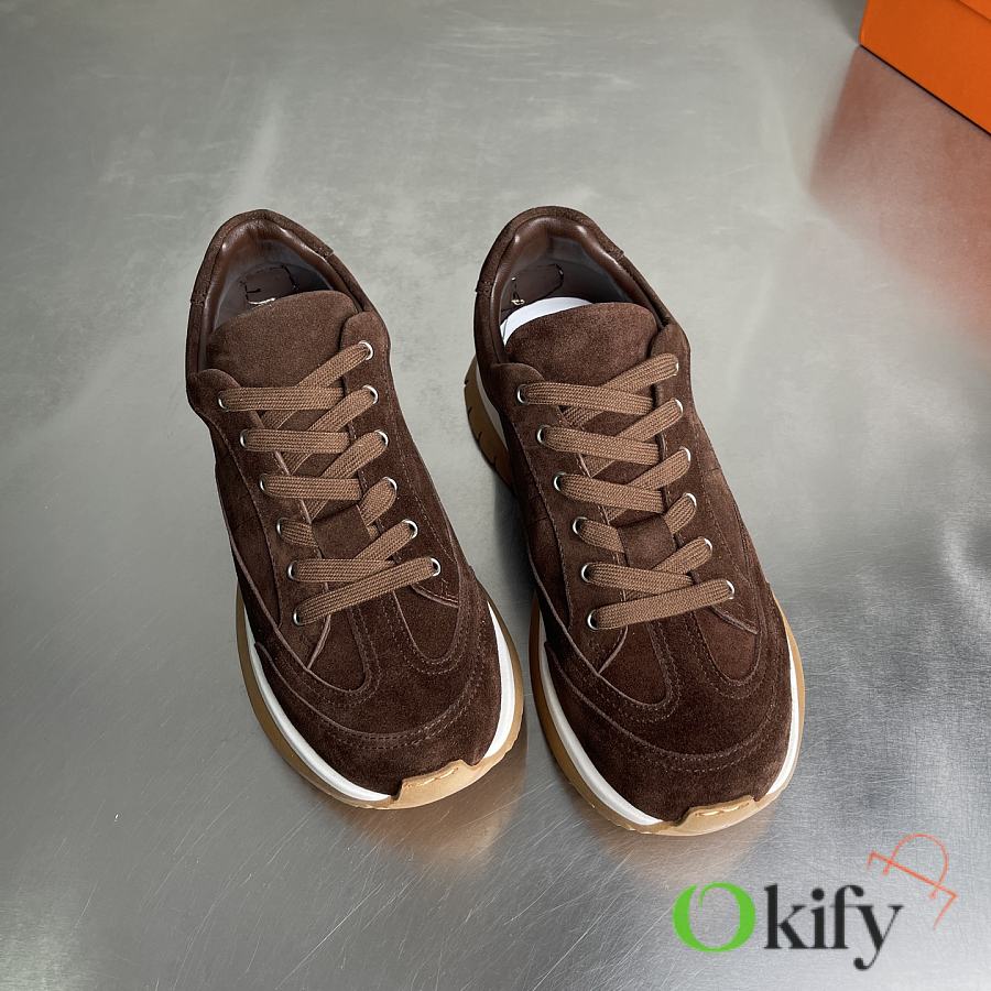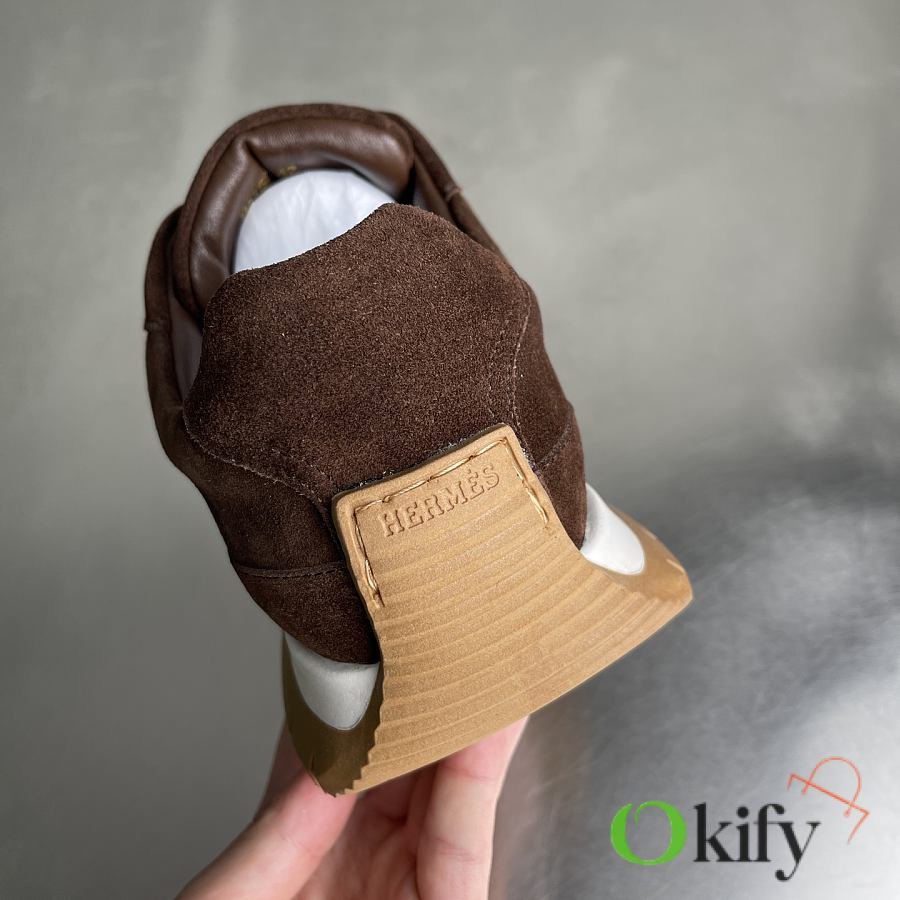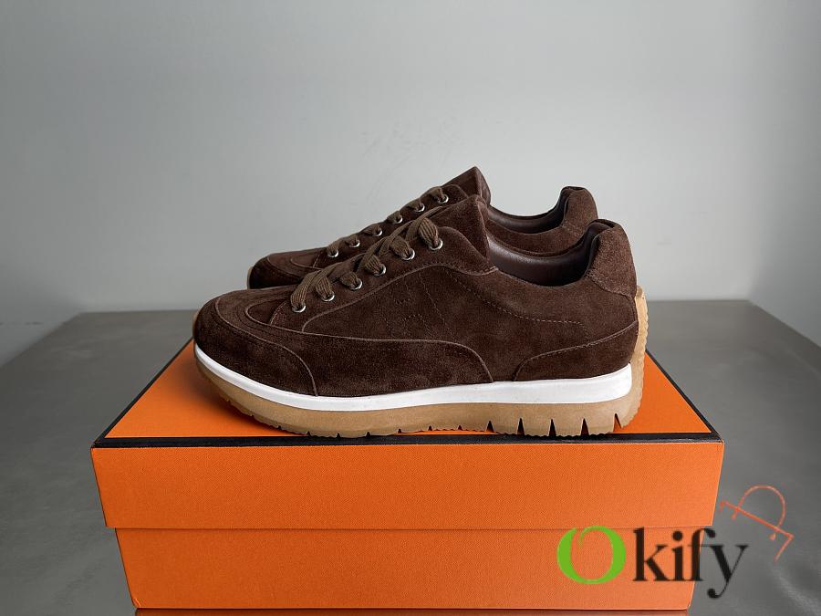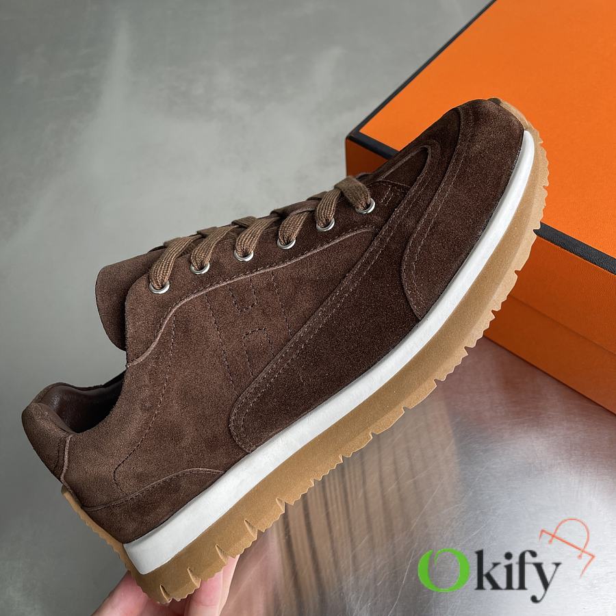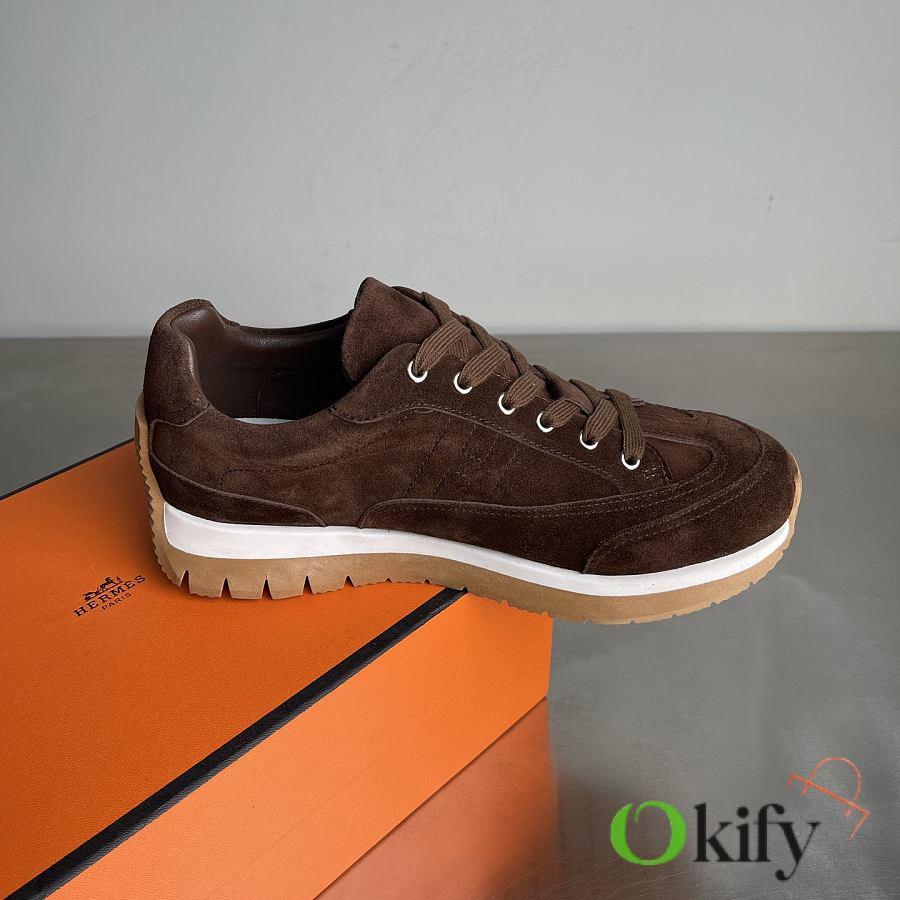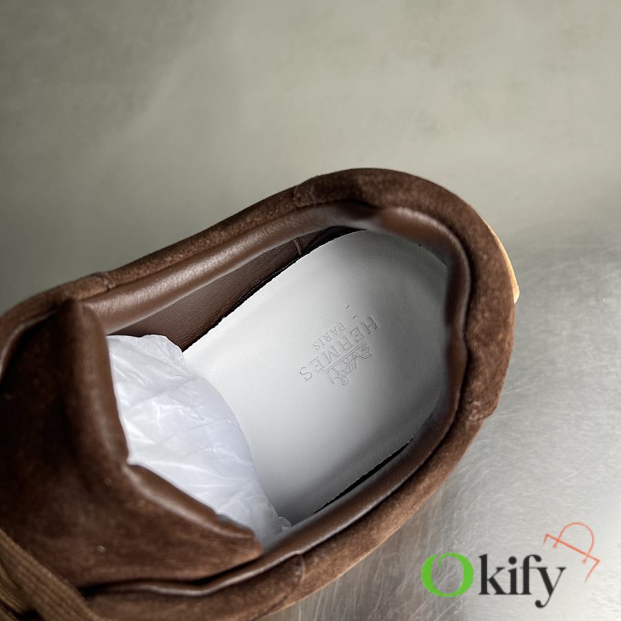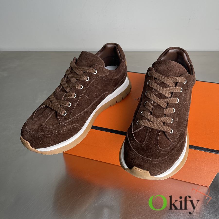 Okify Hermes Libera Dark Brown Suede Men Sneakers