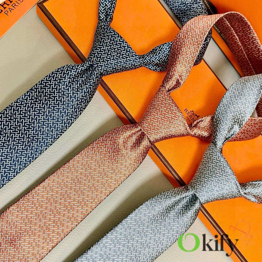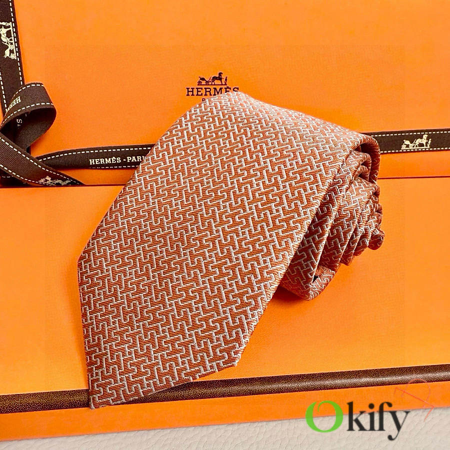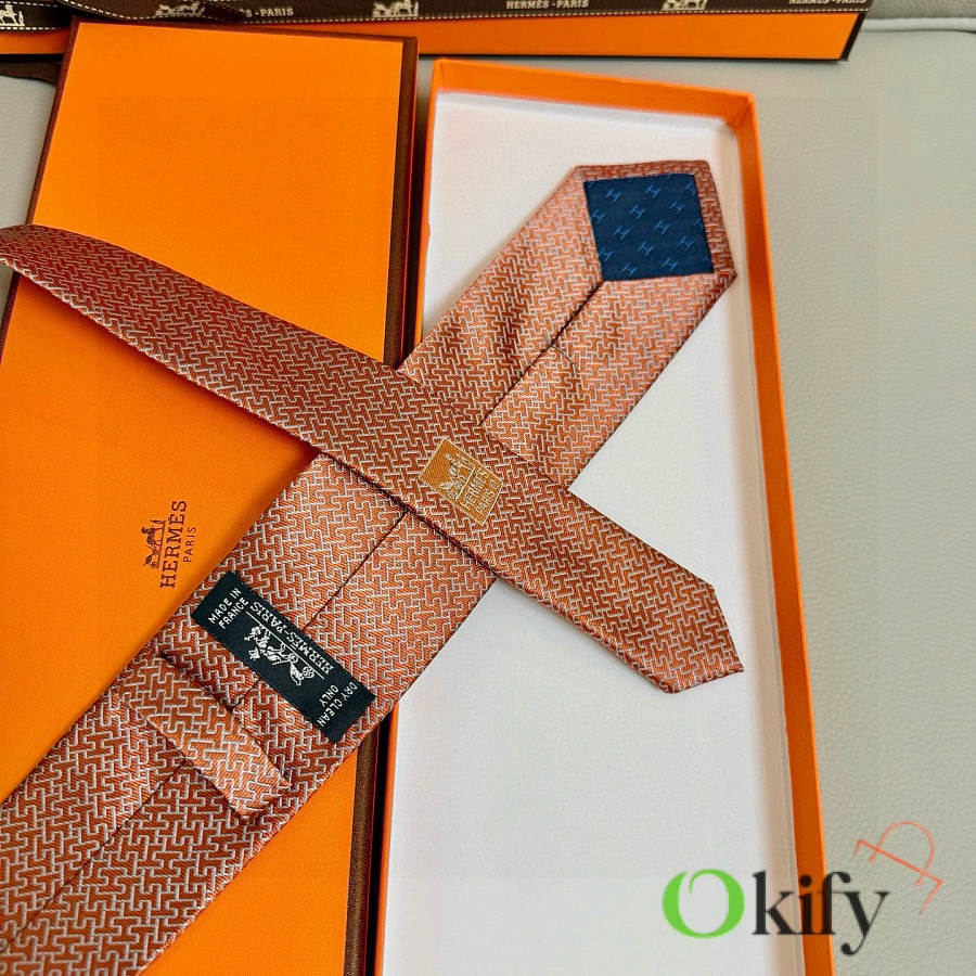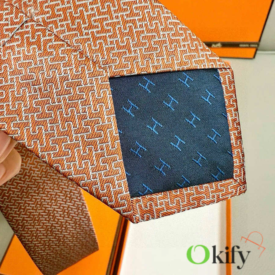 Okify Hermes Orange Twill Silk Tie