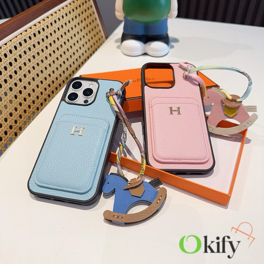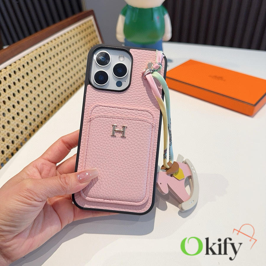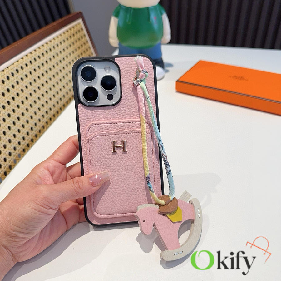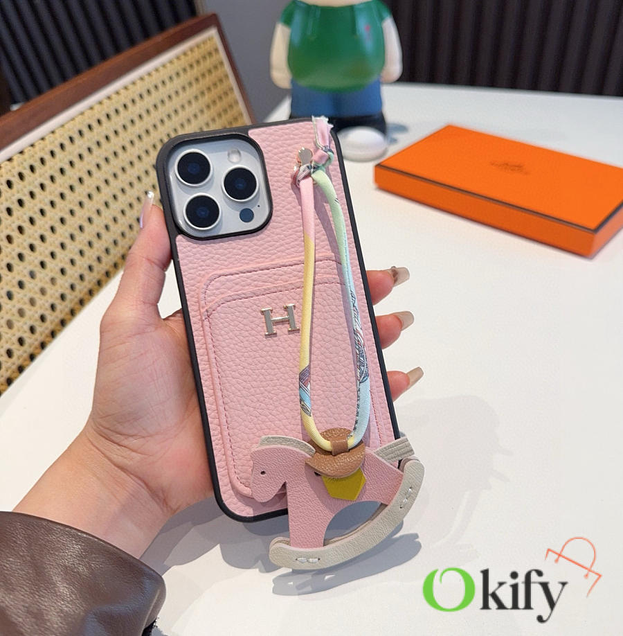 Okify Hermes Pink Phone Case With Horse Charm