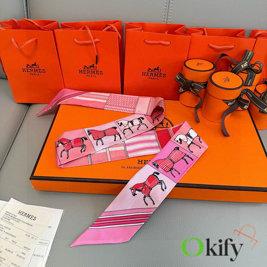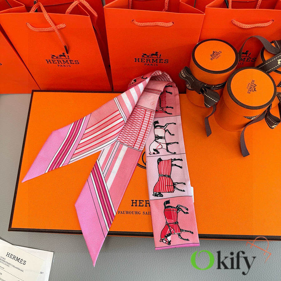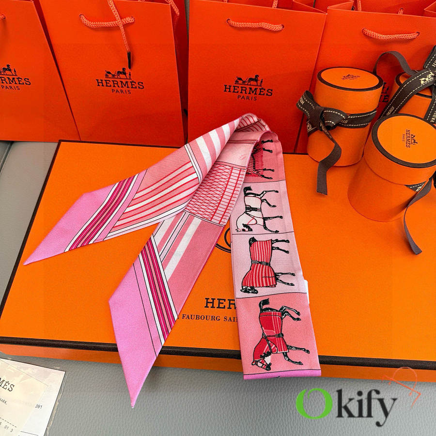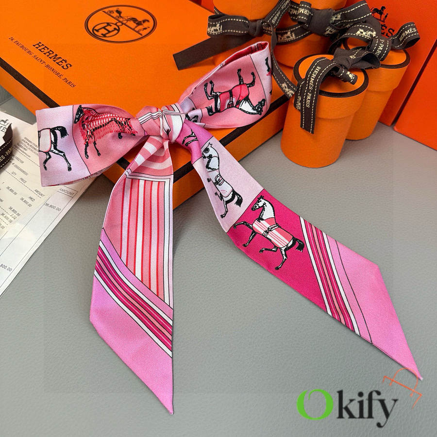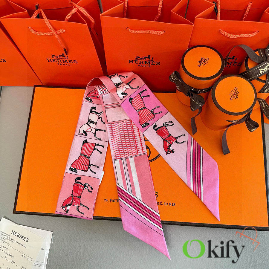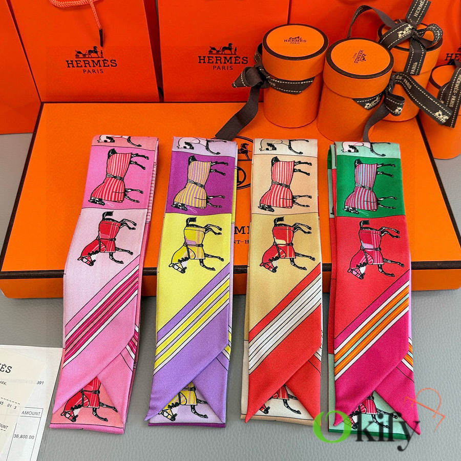 The texture is excellent. The double-sided silk twill fabric has a very clear pattern and print .Ribbon has many uses. It is definitely a highlight when paired with a bag in autumn and winter. It can also be paired with a shirt as a scarf. It also looks great as a wrist scarf. Wrapped around the waist as a belt, it is very fashionable for street style!!! It is fashionable and unique. It is also a favorite outfit of many celebrities and influencers as a headband in winter.
