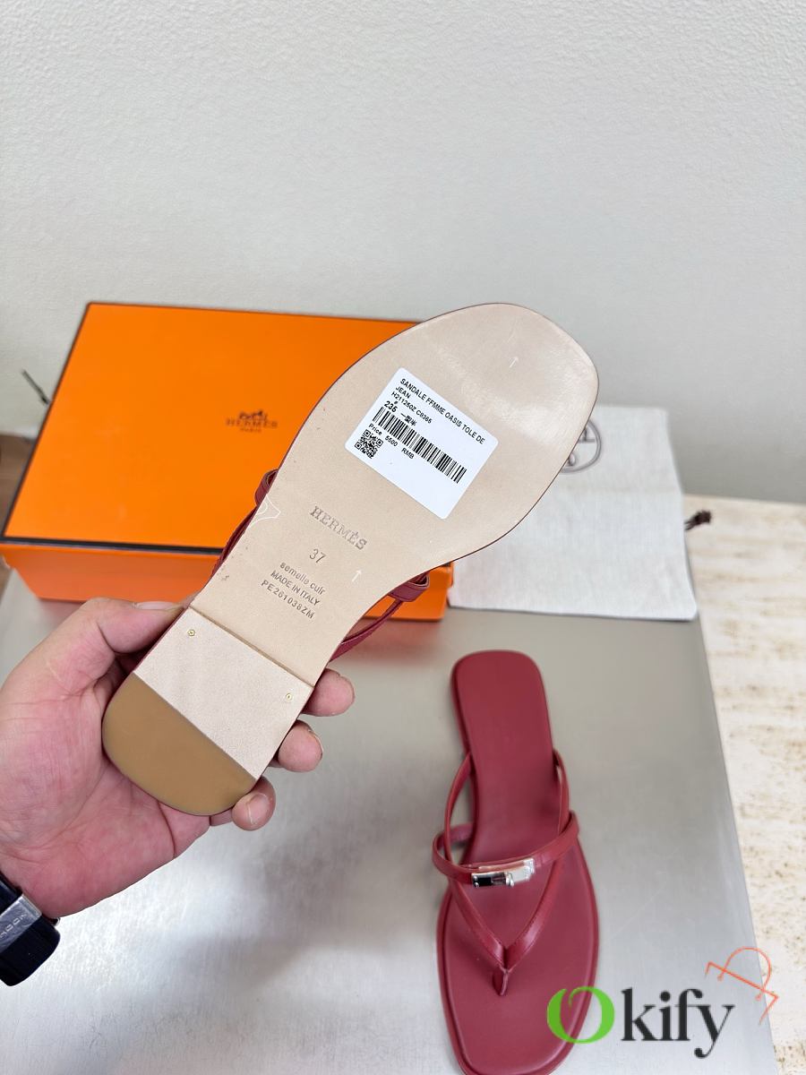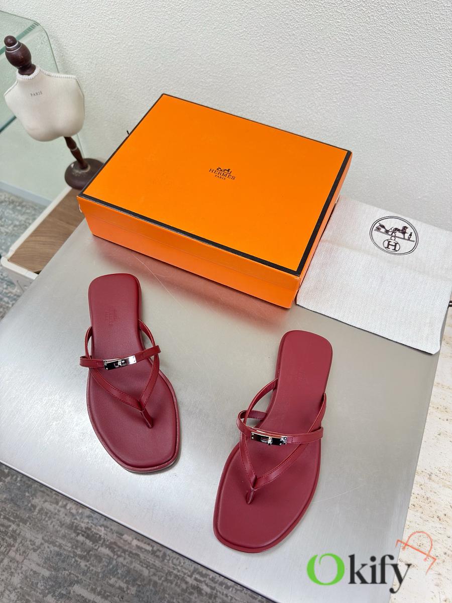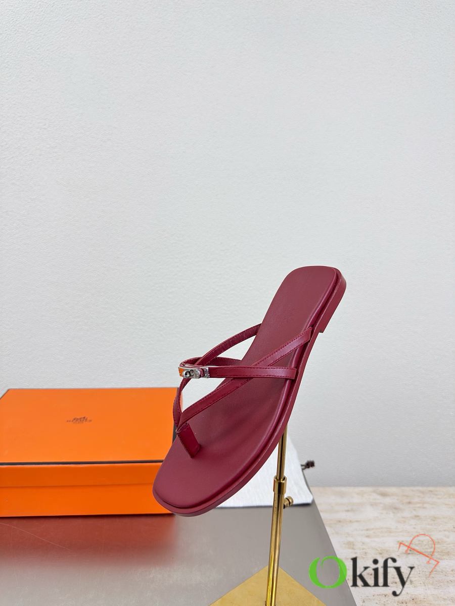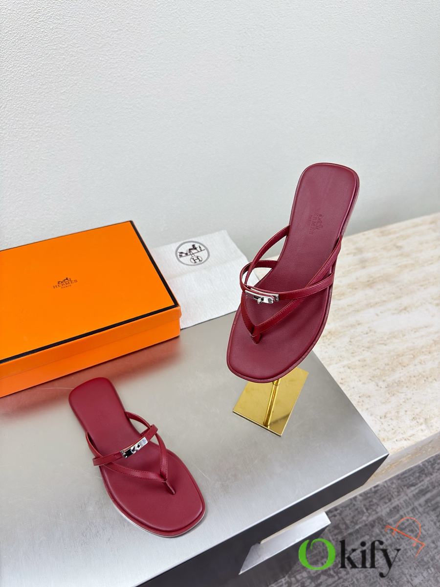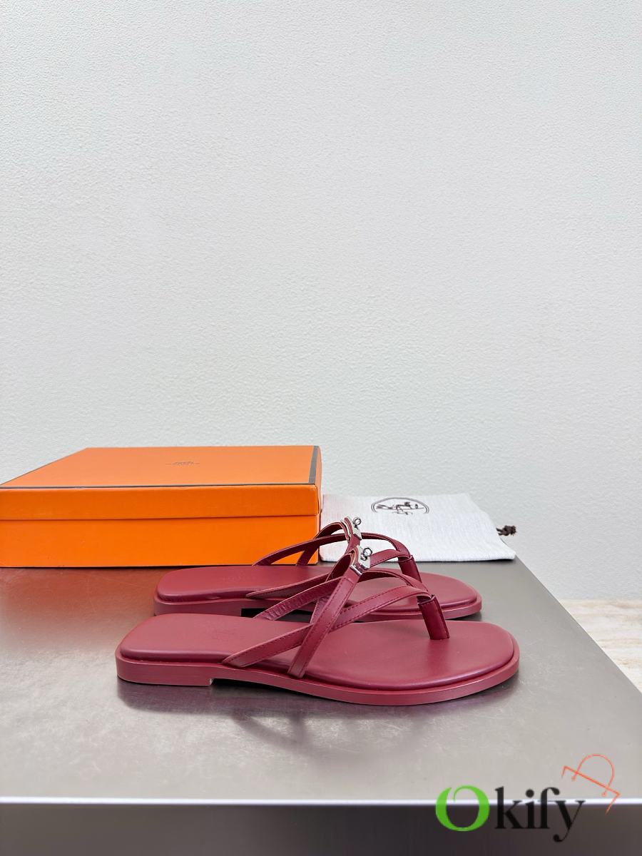 Okify Hermes Red Burgundy Flip Flop Women Slides