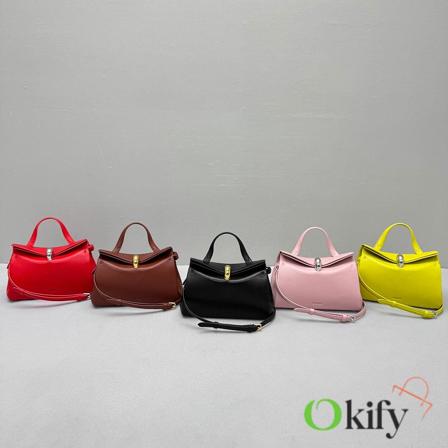 Made of textured cowhide leather with a metal buckle, this piece is simple yet distinctive. Its compact trapezoidal design makes it easy to carry by hand or over the shoulder, perfect for everyday commutes or casual outings. Despite its small interior space, it's incredibly practical, easily accommodating a phone, cardholder, and keys. Combining style and function, it's a classic and popular design from Jac! Model Number: 2099  Dimensions: Bottom length 23cm, side height 16cm, bottom width 7cm